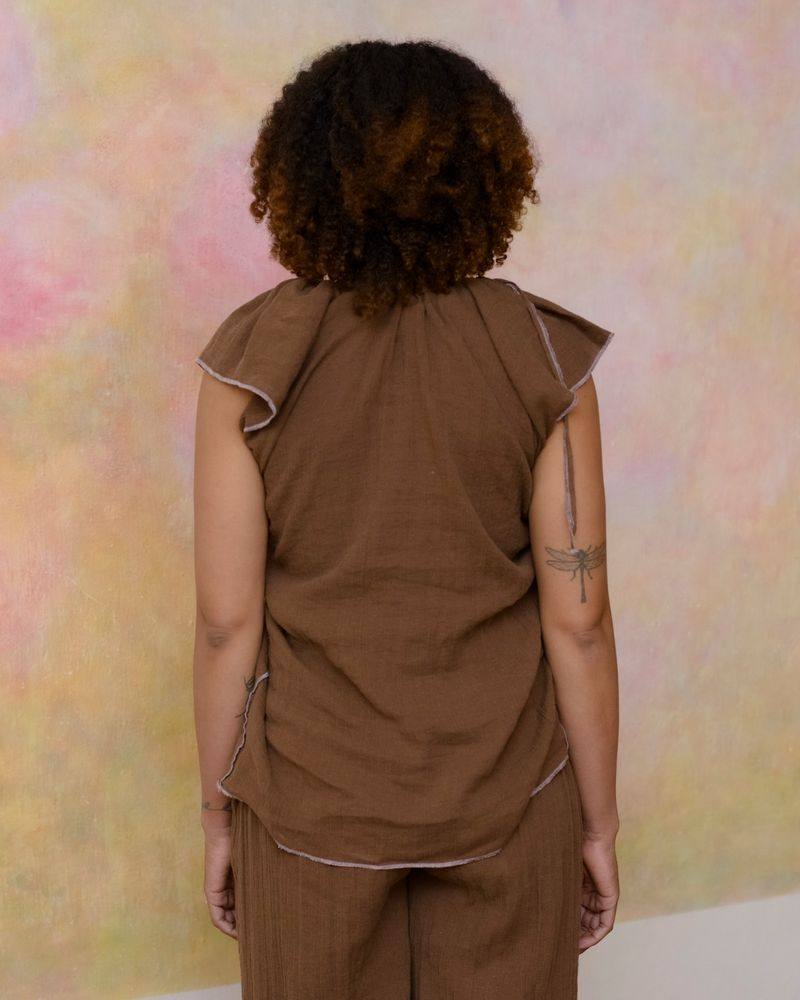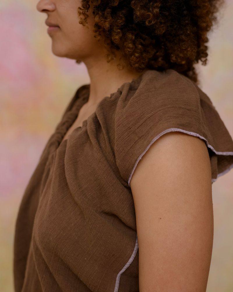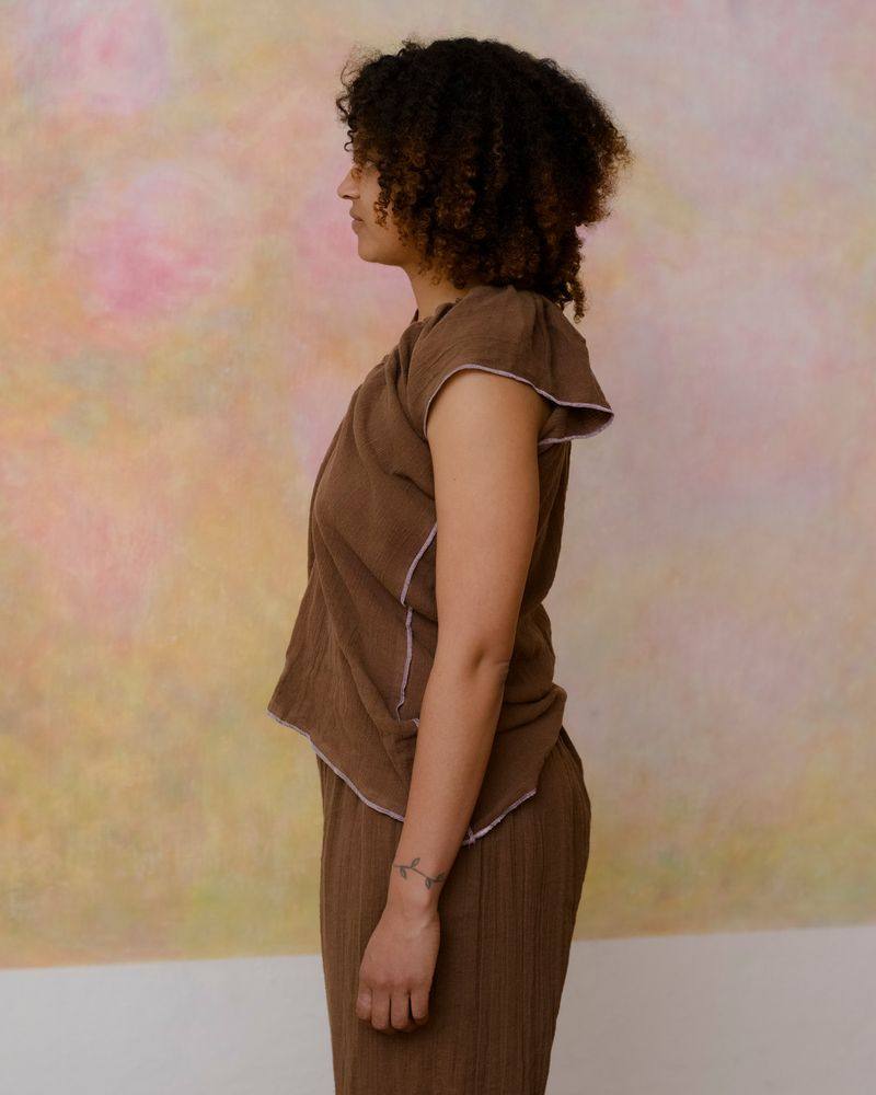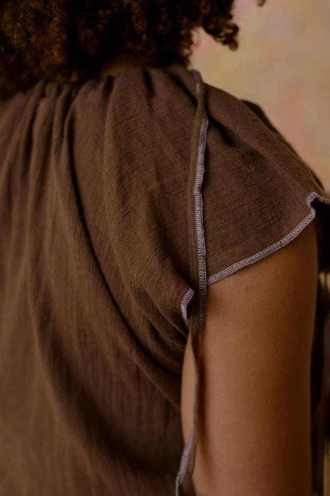 BASERANGE Linen Cotton V-Neck Top, France, BAS-TSMA-CL-SP26-LB (LOAM BROWN)