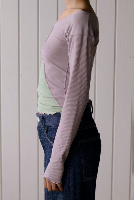 BASERANGE SP26 Color Block Ribbed Long Sleeve T-Shirt BAS-TTPLS-CR-SP26-VPG (VERBE PRUPLE/GREEN)