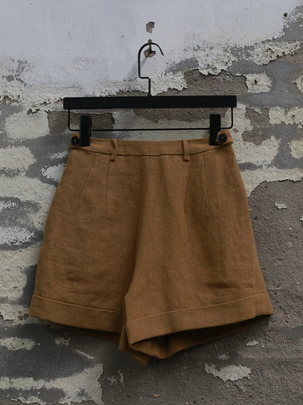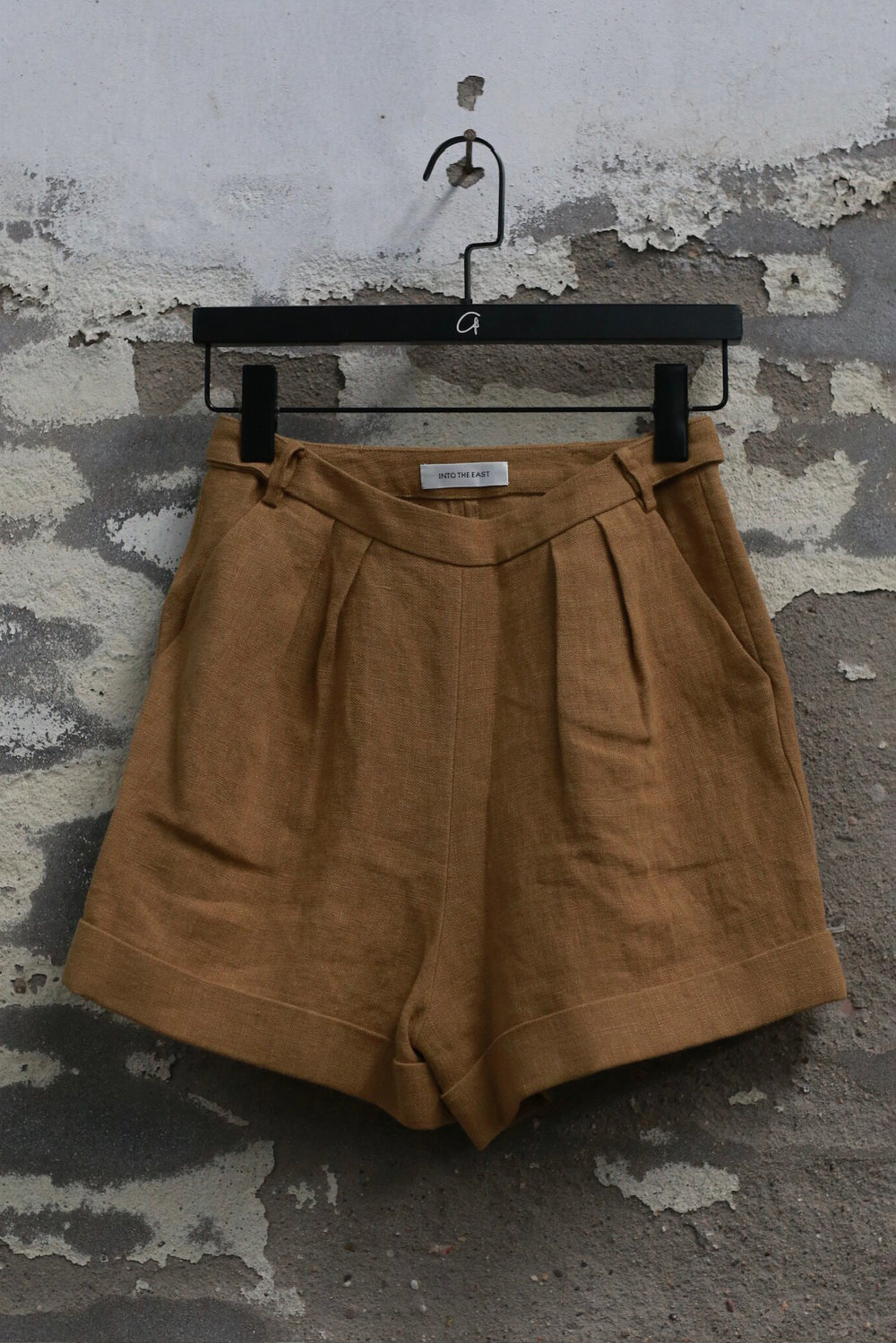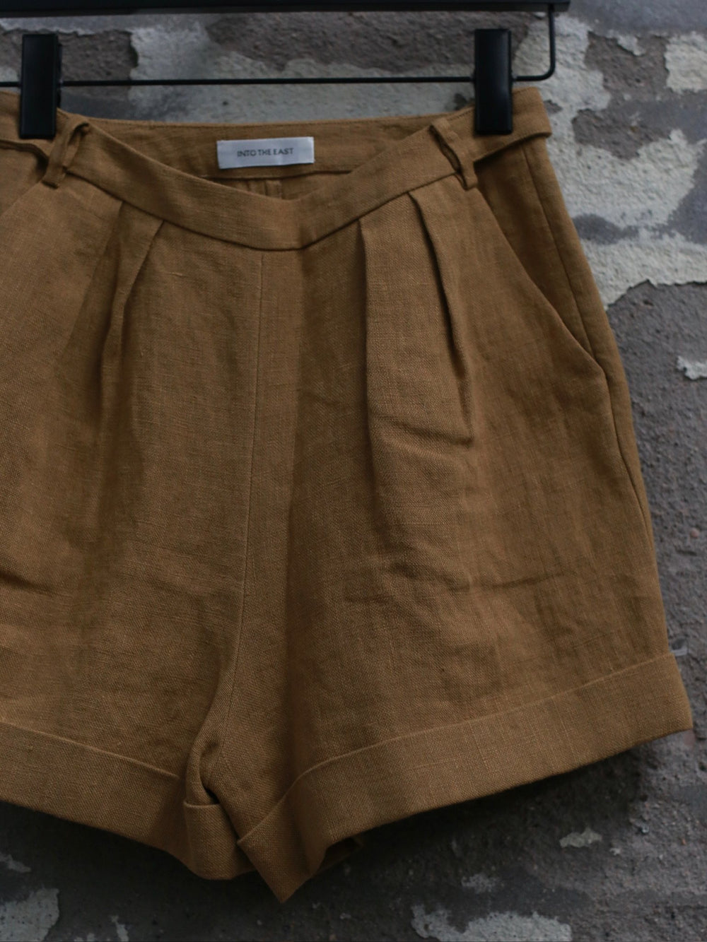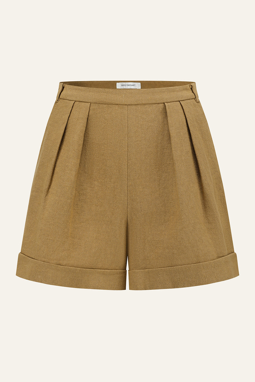 INTO THE EAST Spring/Summer 2026: Acanthus Oil Paint Deep V Camisole Top / Apricot Yellow Linen Rolled-Up Shorts ITE-E1JBSSPT20016YE-XH Apricot Yellow (E1JBSSTP21007)