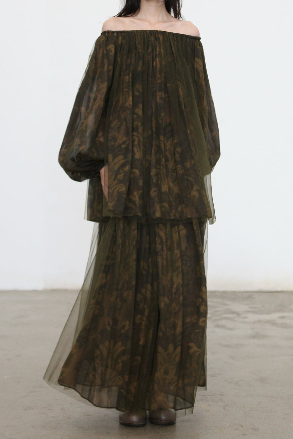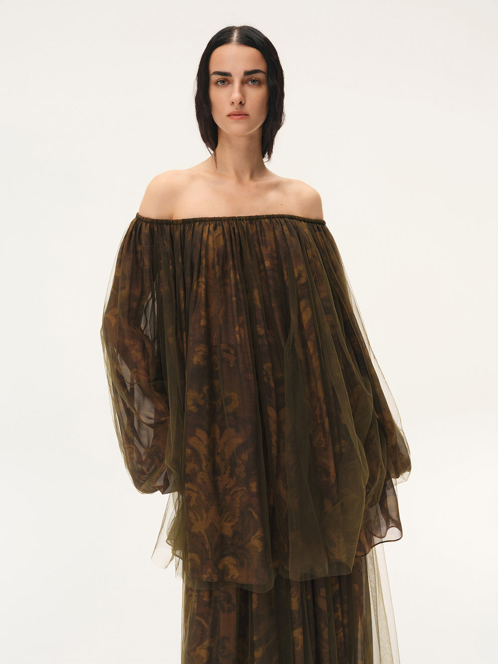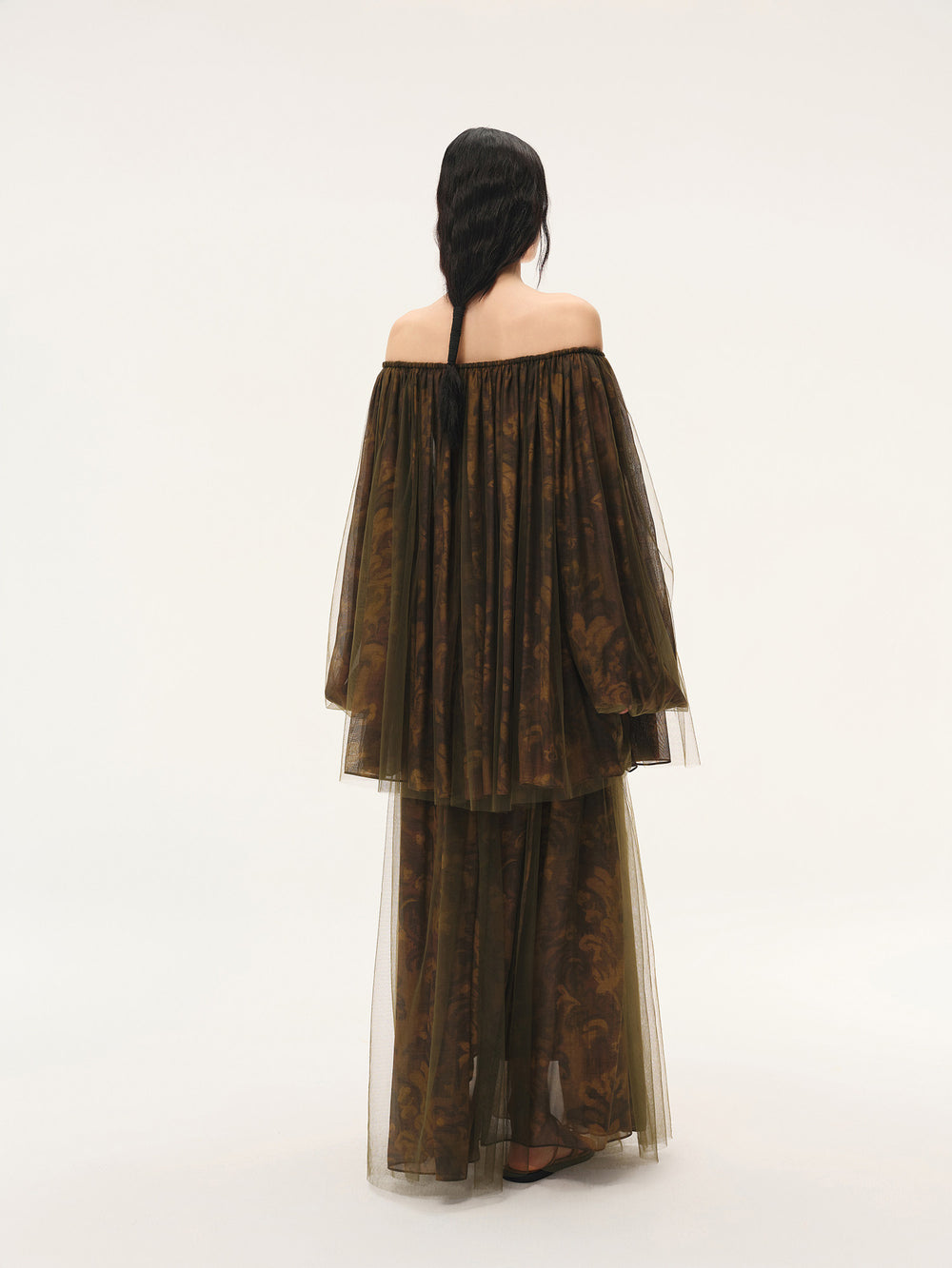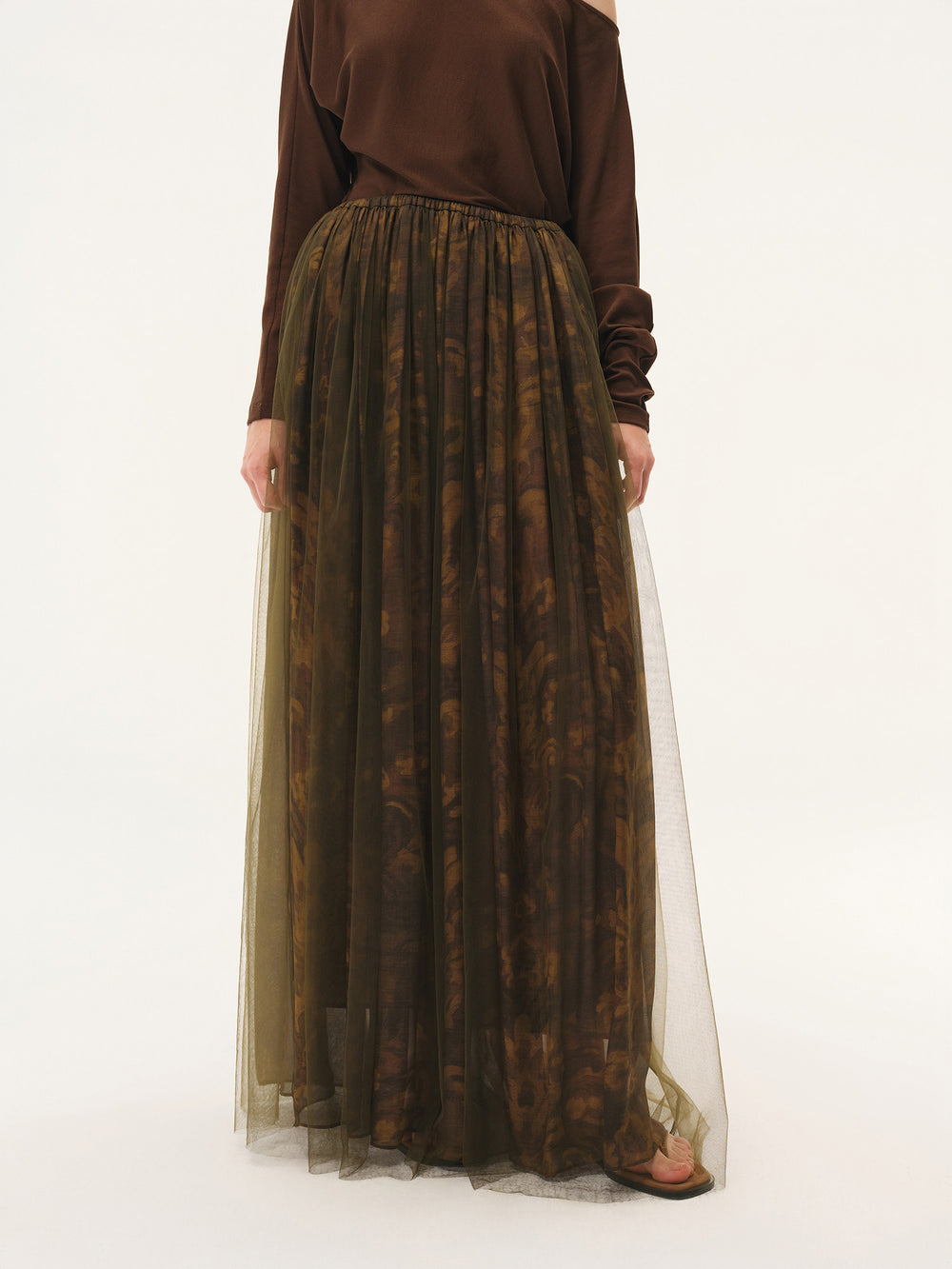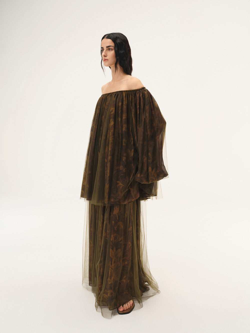 INTO THE EAST Spring/Summer 2026: Acanthus Oil Painted Tulle Top/Skirt ITE-E1JBSSSK21002BR-CZ Skirt (E1JBSSTP21001)