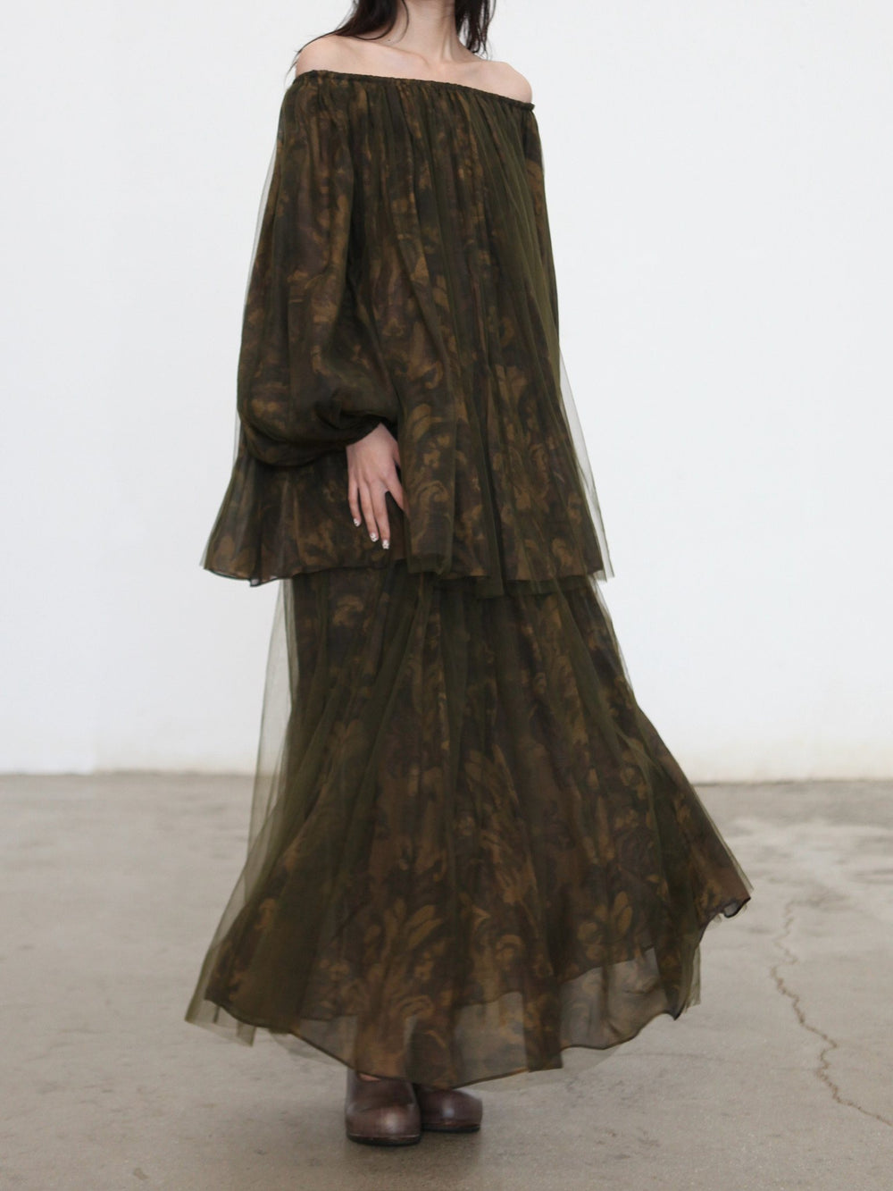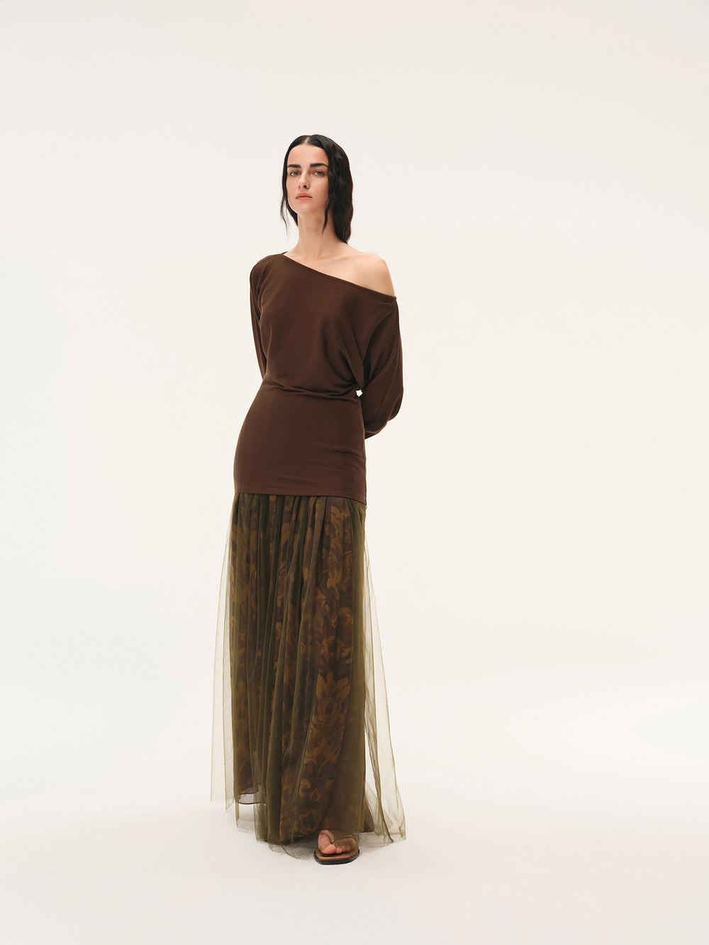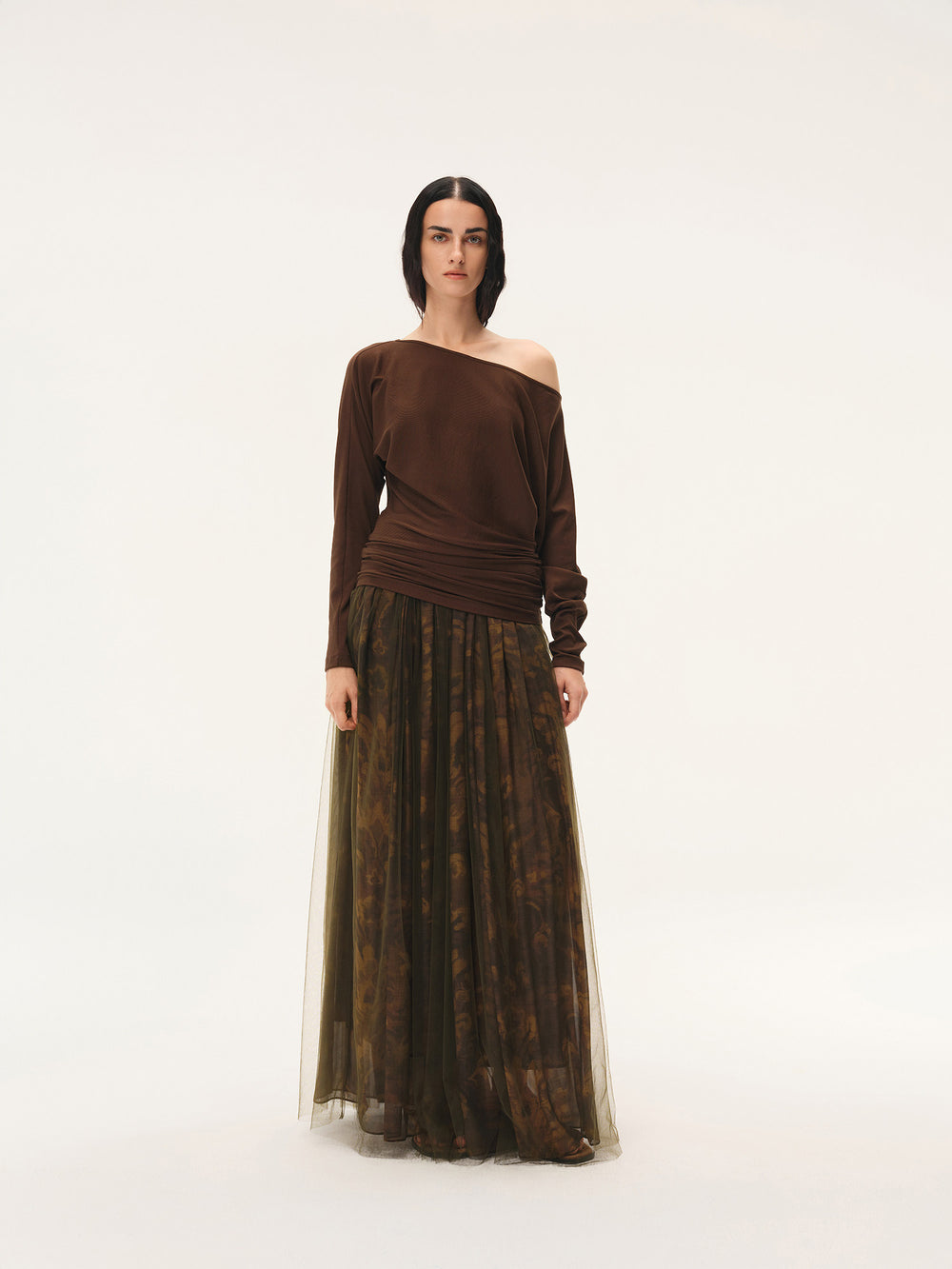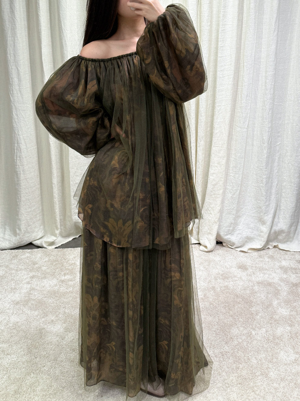 INTO THE EAST Spring/Summer 2026: Acanthus Oil Painted Tulle Top/Skirt ITE-E1JBSSSK21002BR-CZ Skirt (E1JBSSTP21001)