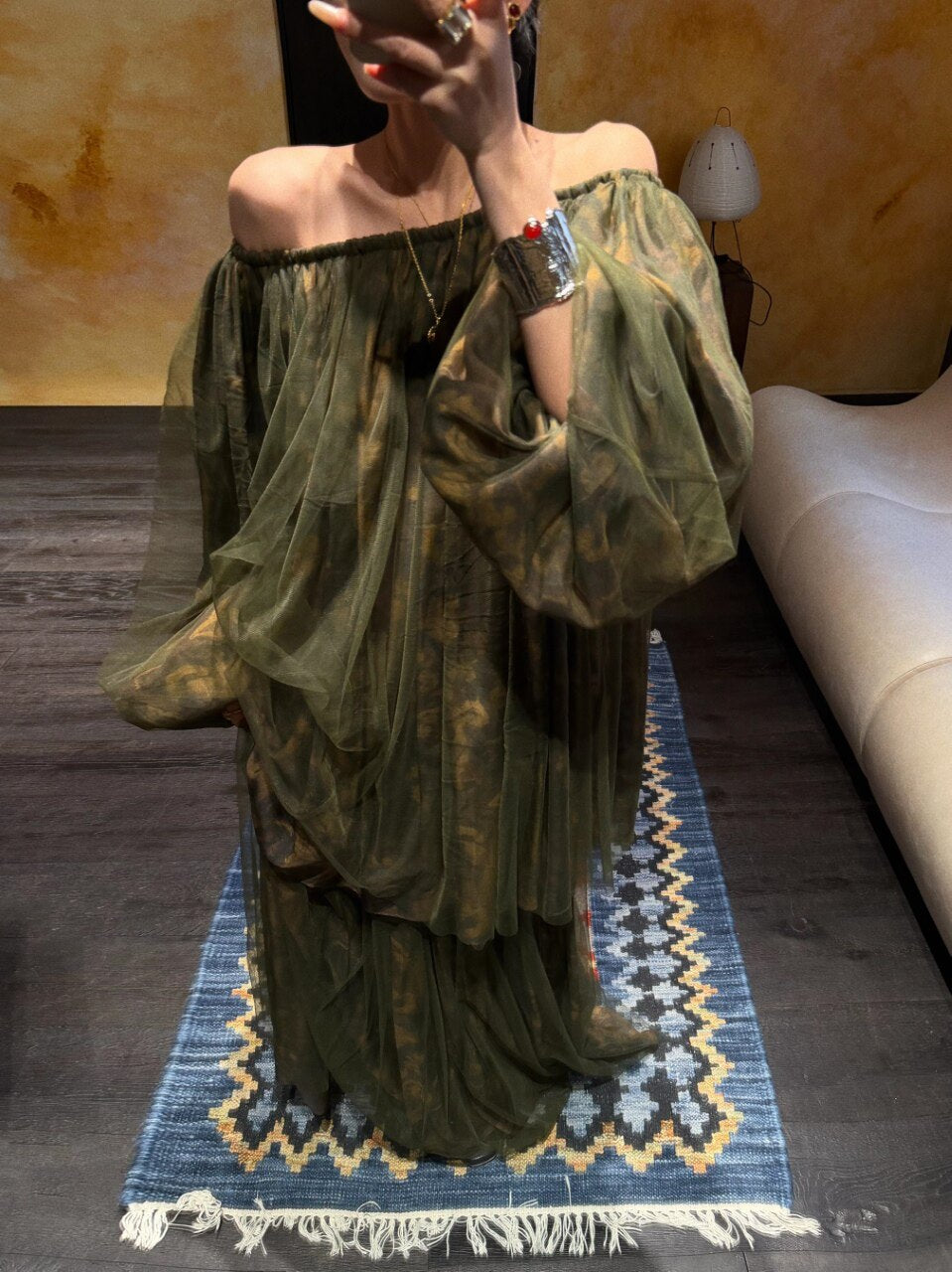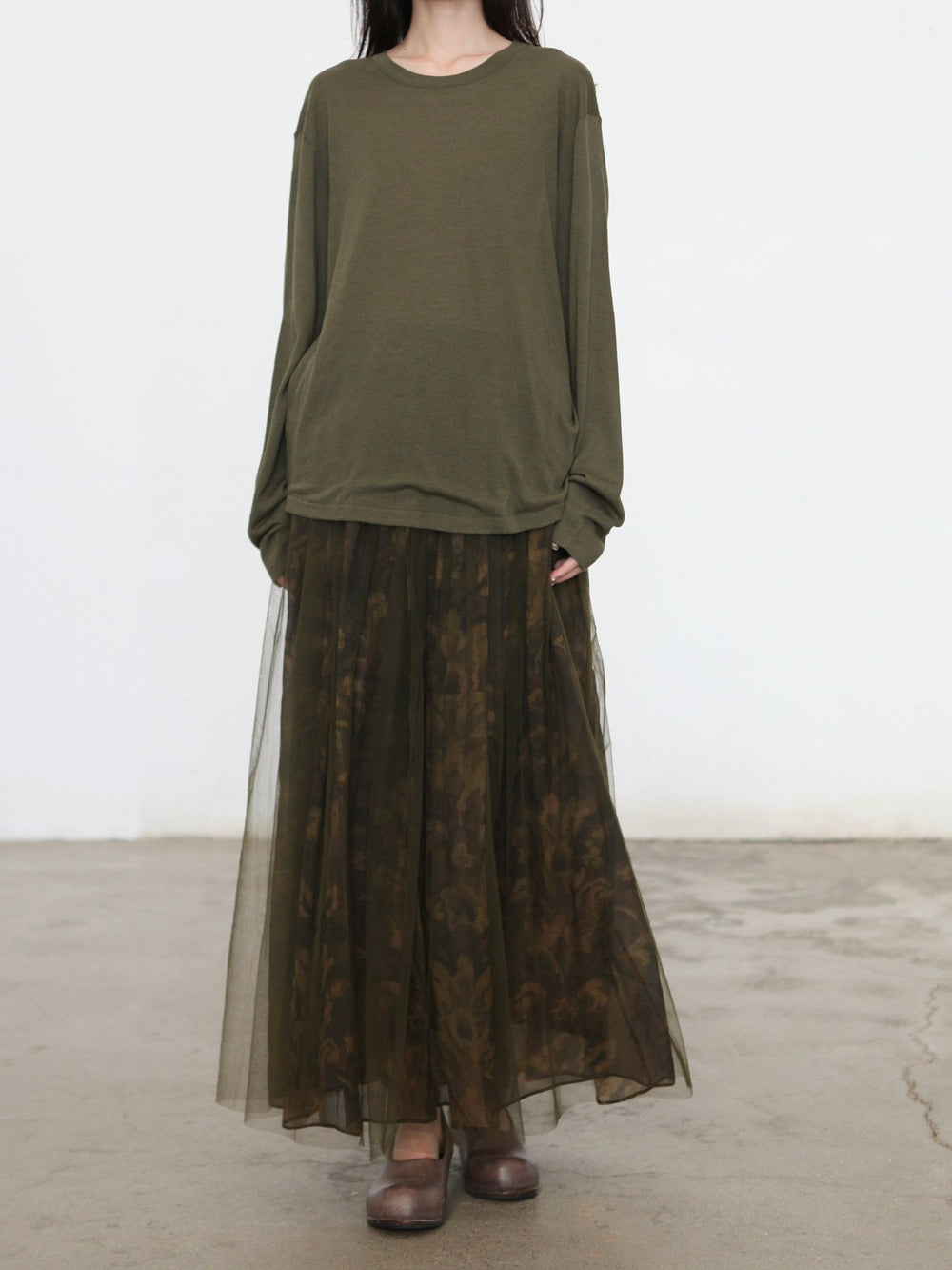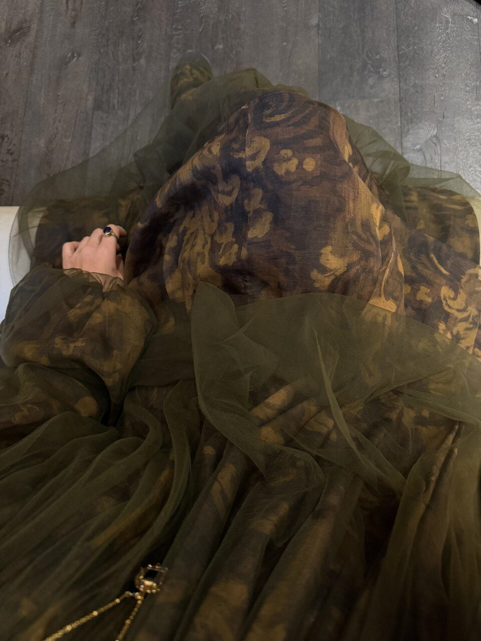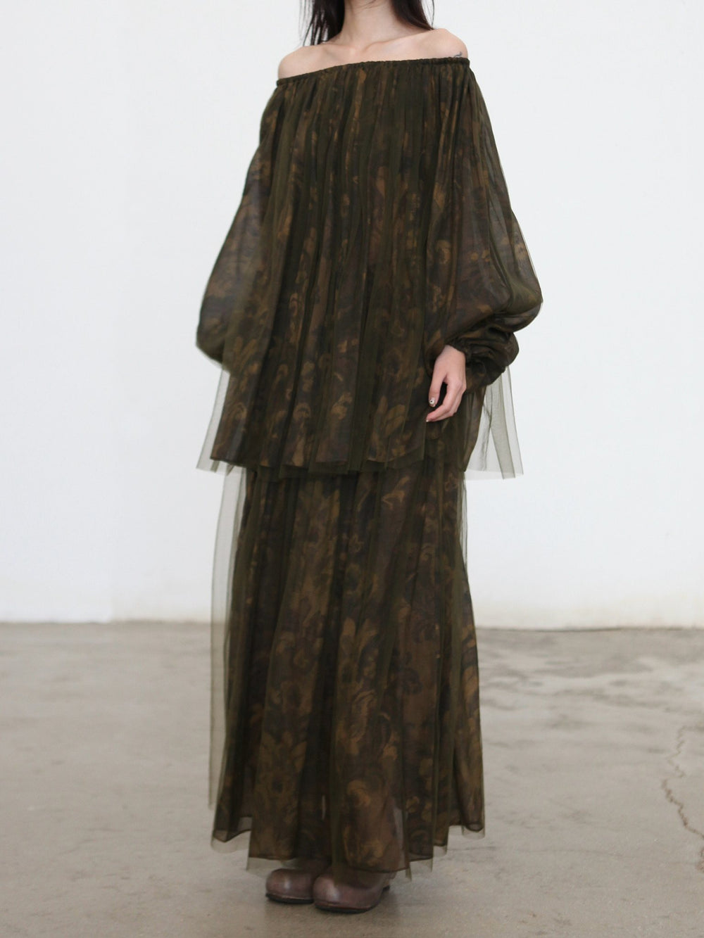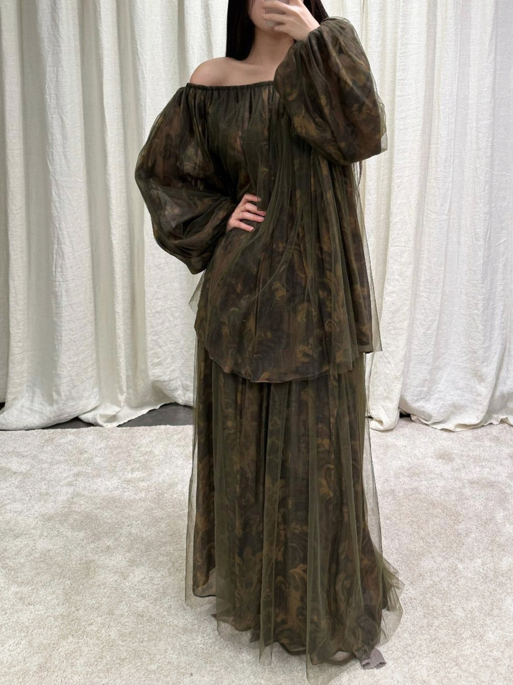 INTO THE EAST Spring/Summer 2026: Acanthus Oil Painted Tulle Top/Skirt ITE-E1JBSSSK21002BR-CZ Skirt (E1JBSSTP21001)