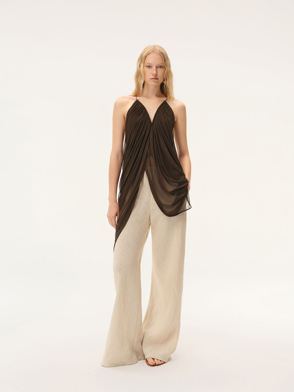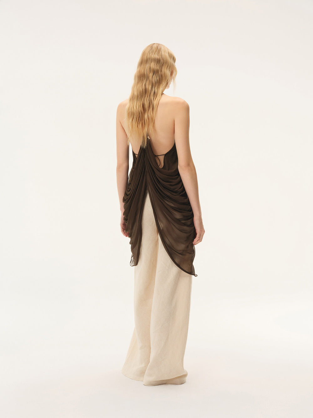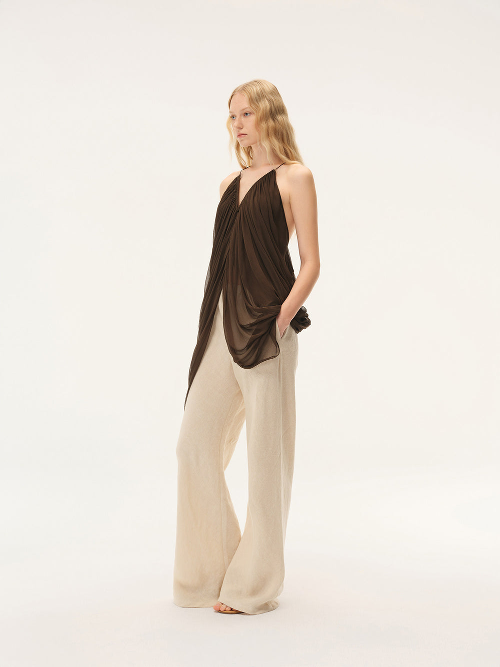INTO THE EAST Spring/Summer 2026 Asymmetrical Long Top/Tie-up Short-sleeved Top/Mermaid Skirt ITE-E1JBSSPT20003-MB Off-white Pants (E1JBSSTP20008)