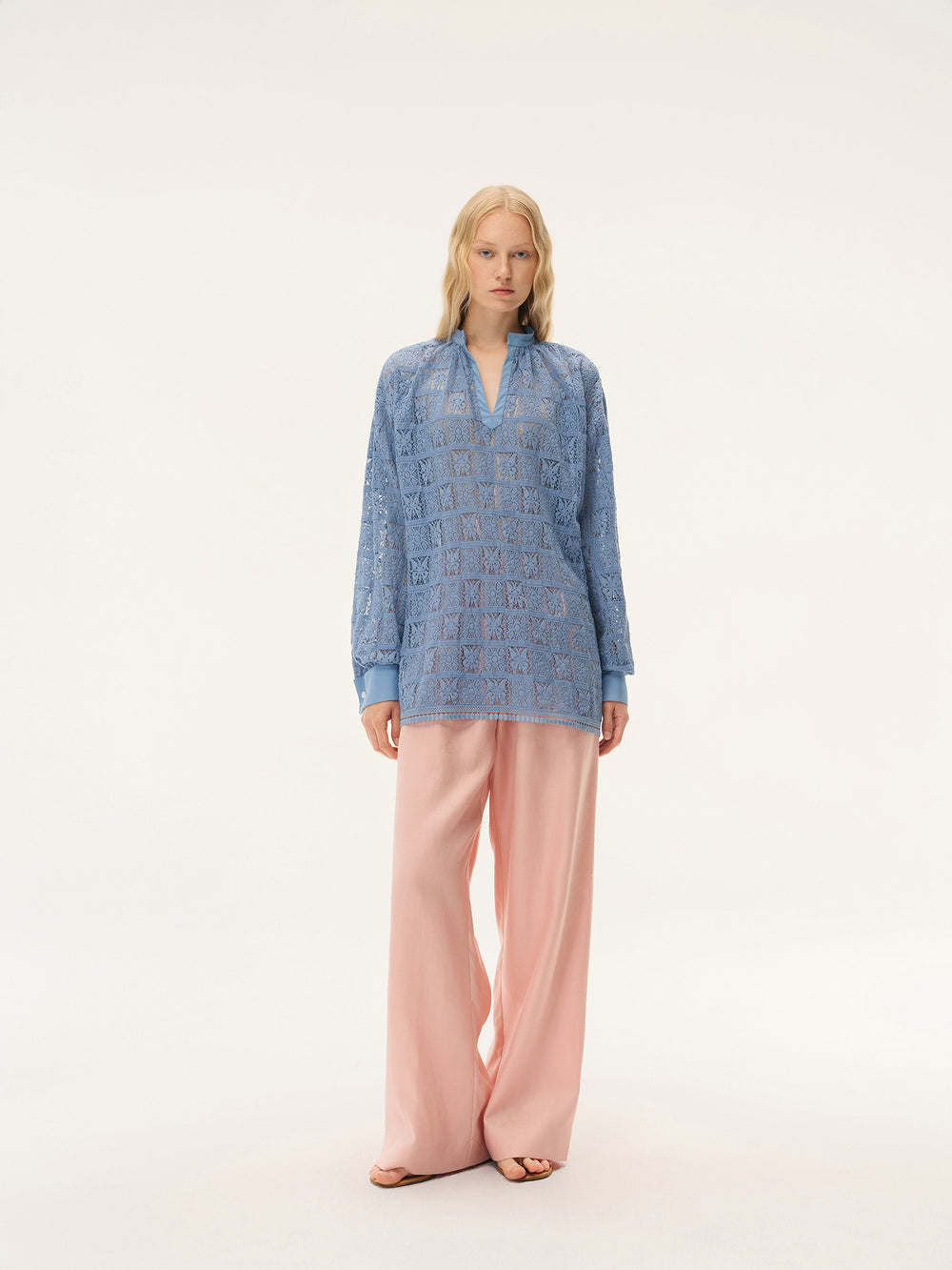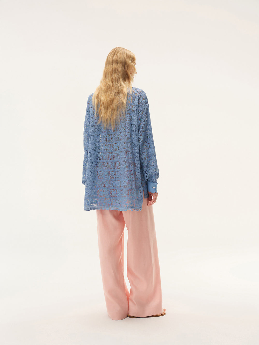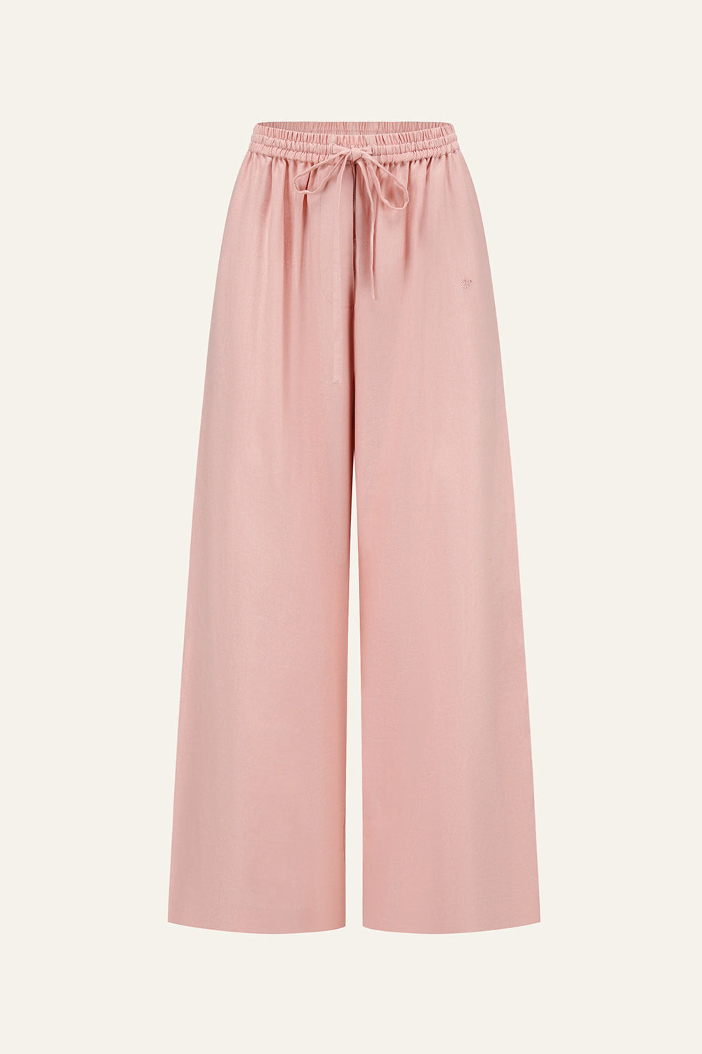 INTO THE EAST Spring/Summer 2026 Floral, Bird, and Tree Collared Shirt / Embroidered Elastic Waist Straight Leg Pants ITE-E1JBSSPT22004PK-FEN
