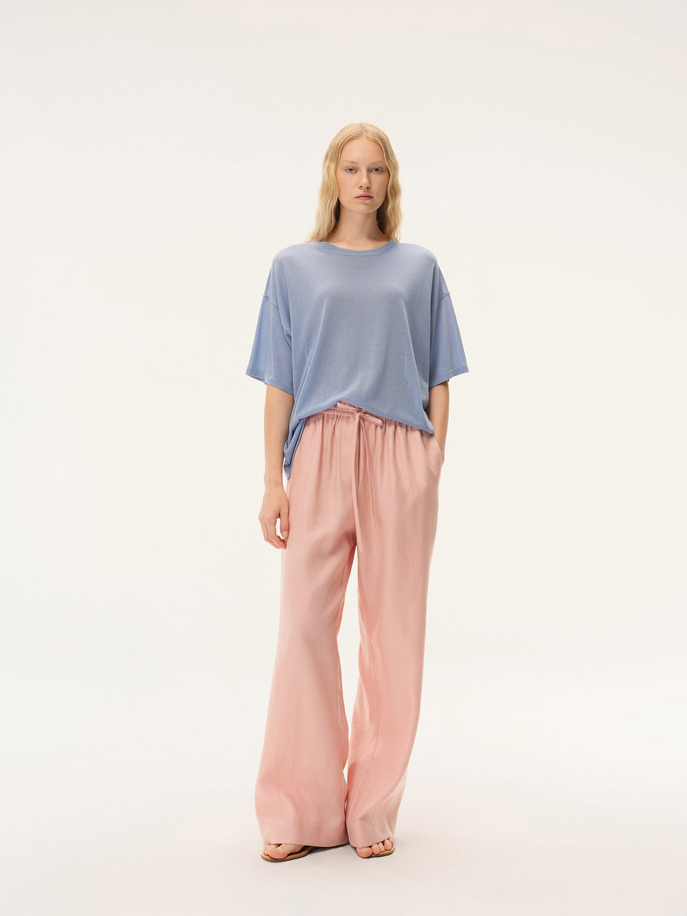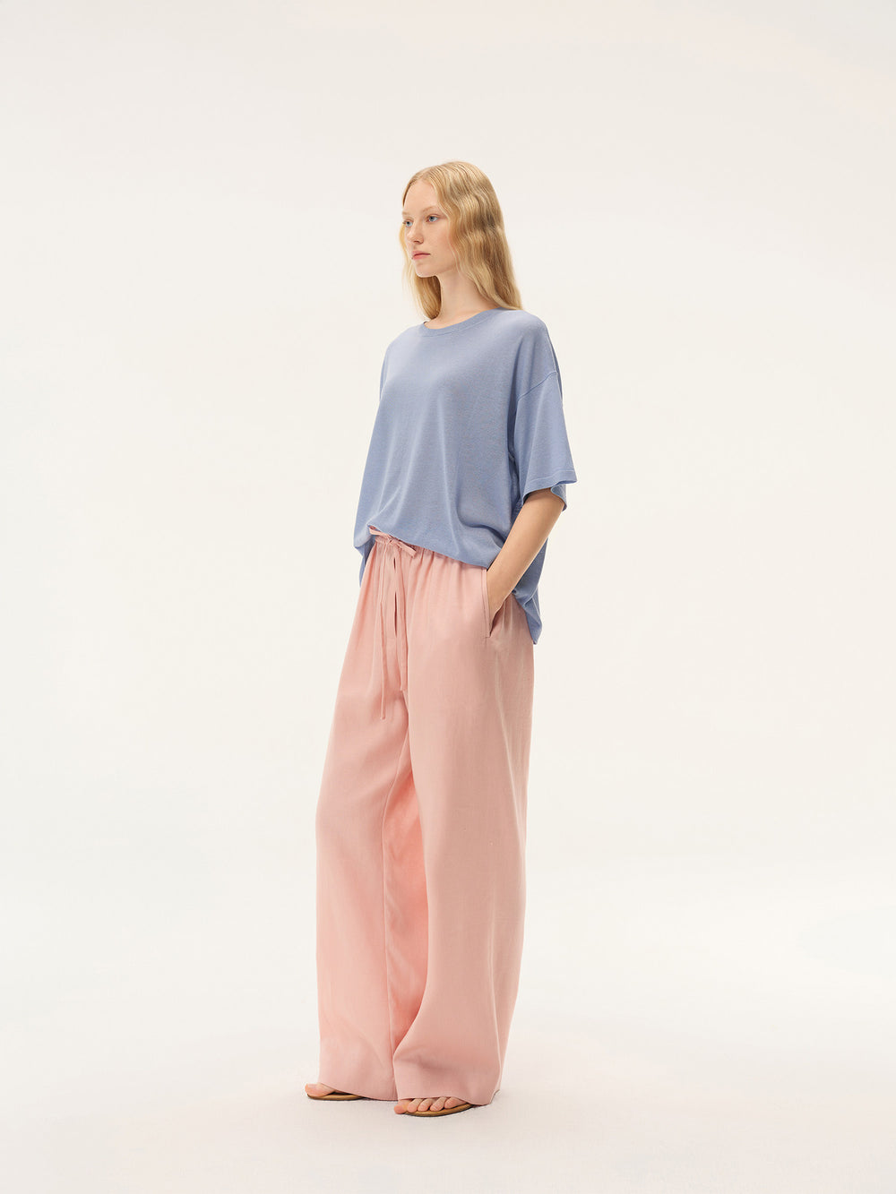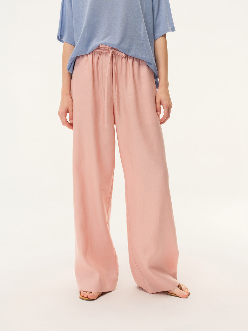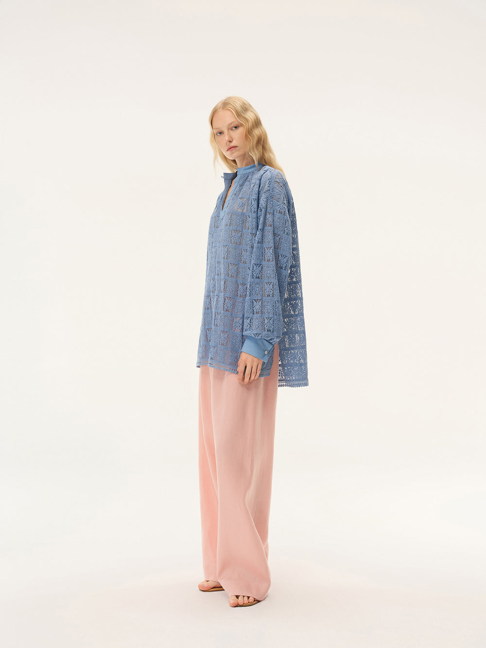 INTO THE EAST Spring/Summer 2026 Floral, Bird, and Tree Collared Shirt / Embroidered Elastic Waist Straight Leg Pants ITE-E1JBSSPT22004PK-FEN