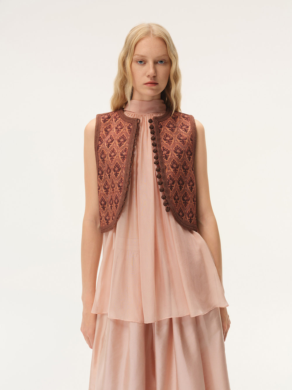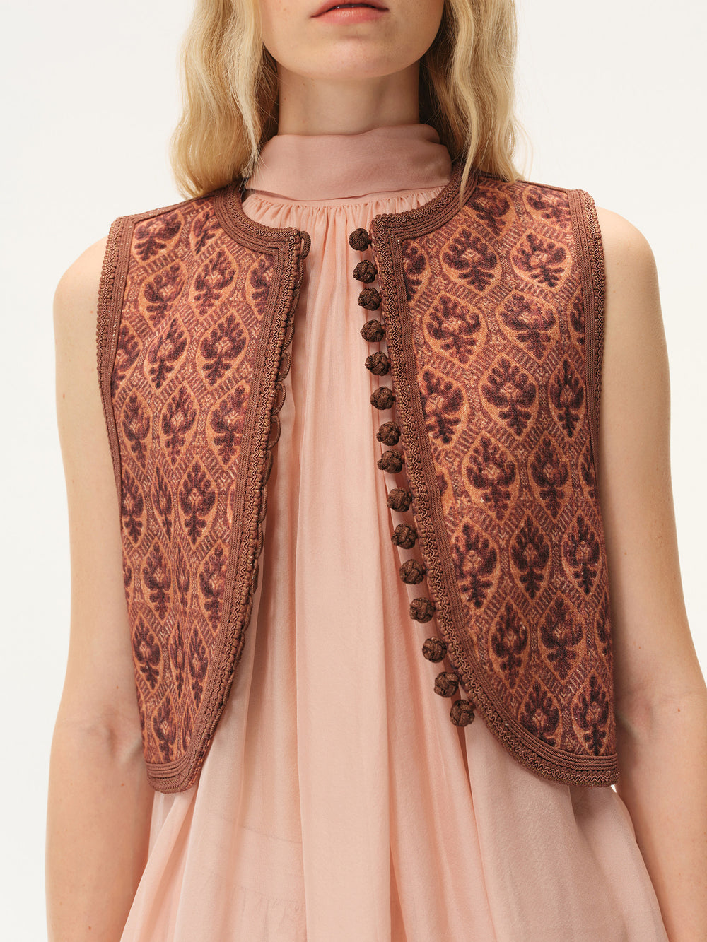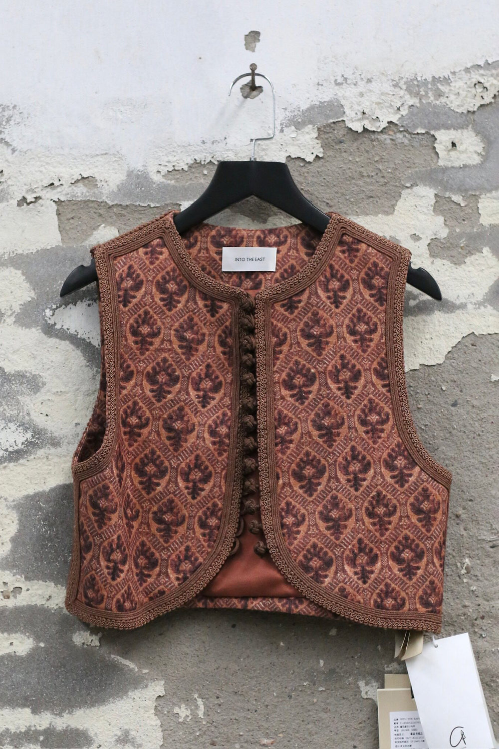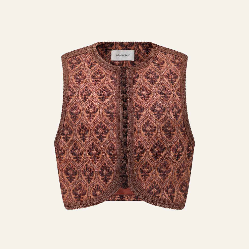 INTO THE EAST Spring/Summer 2026 Vest with Floral Pattern and Chinese Knot Buttons INTO THE EAST Spring/Summer 2026 Vest with Floral Pattern and Chinese Knot Buttons ITE-E1JBSSVE21007-SLH Pomegranate Red