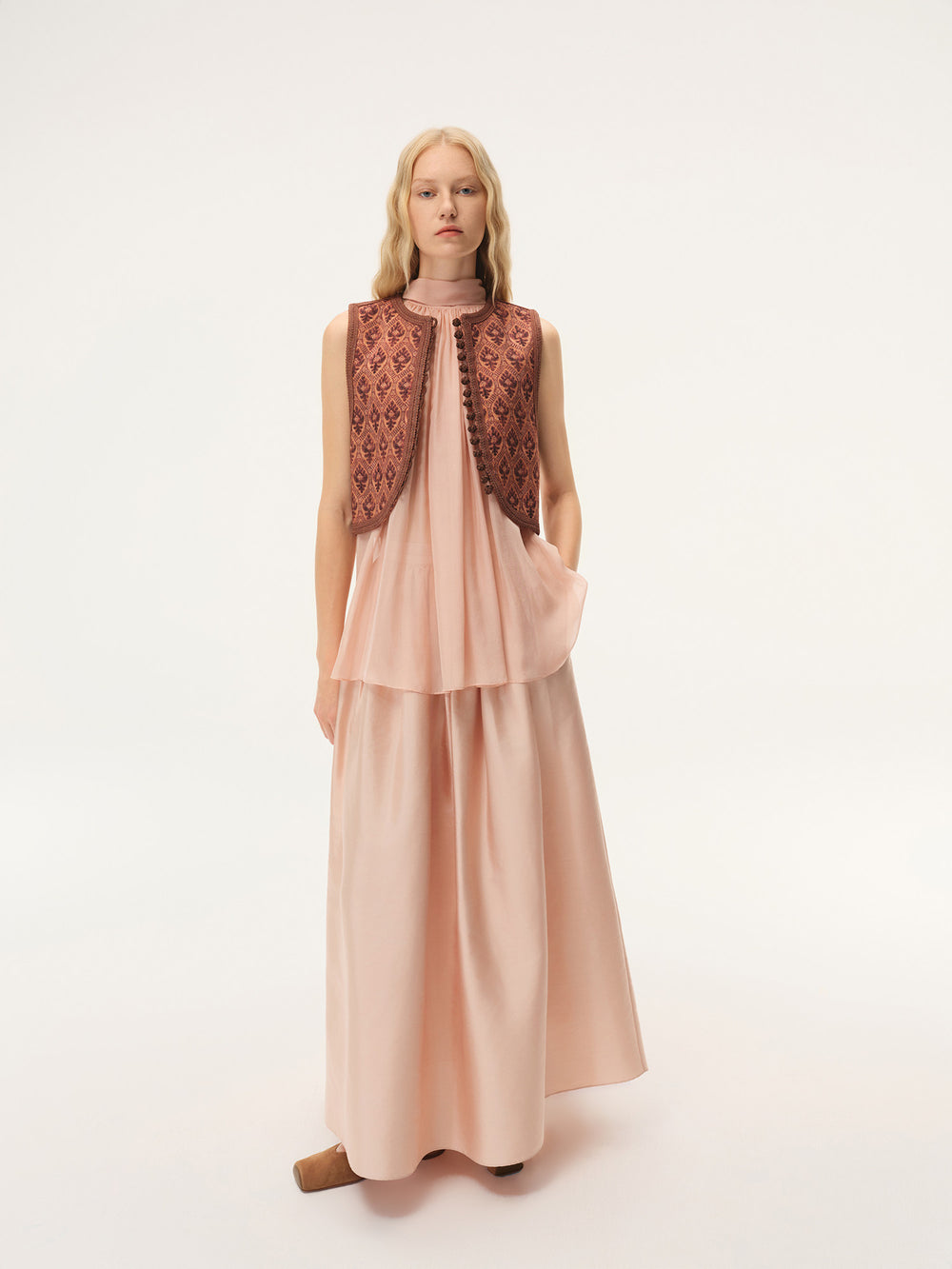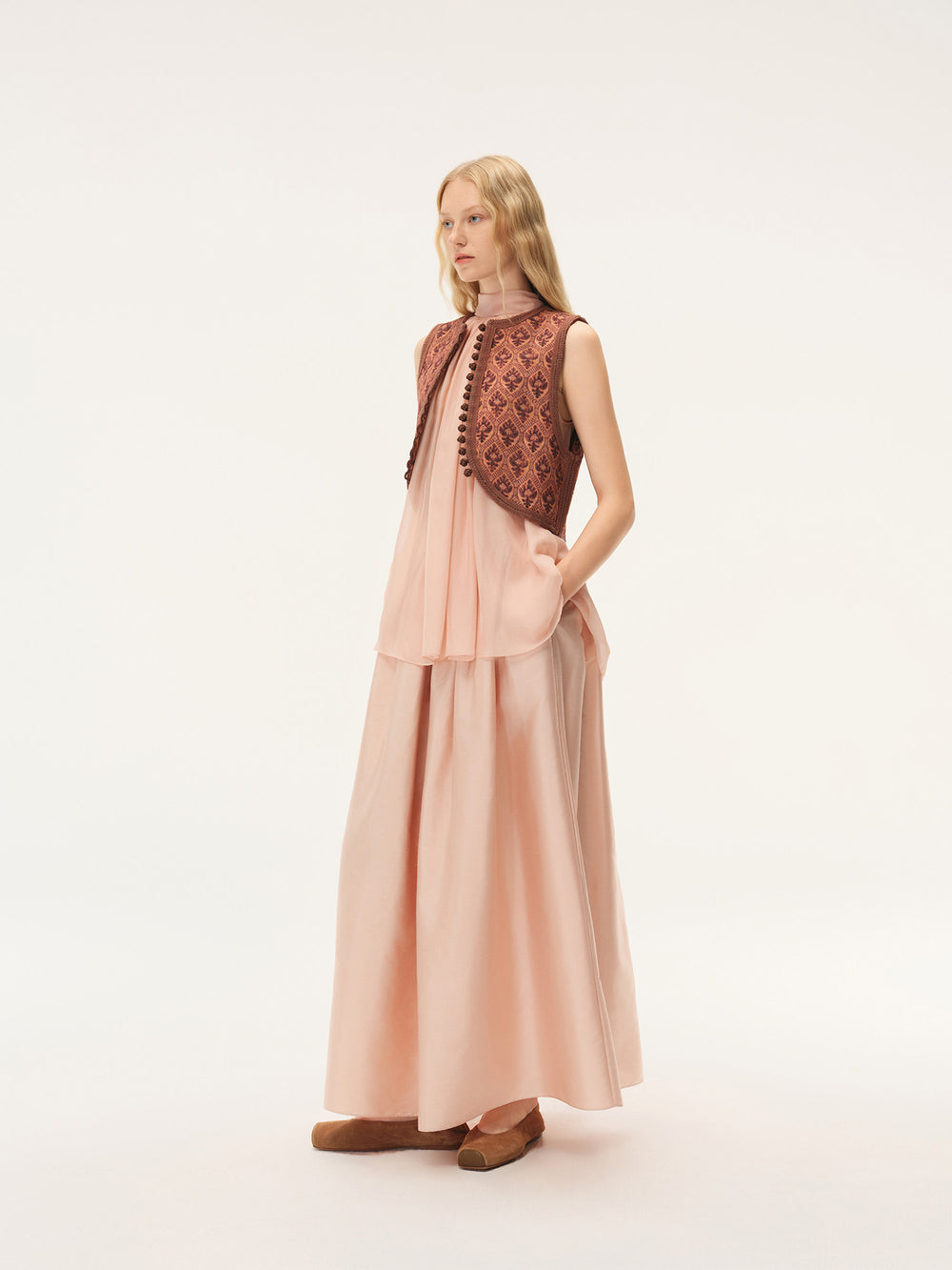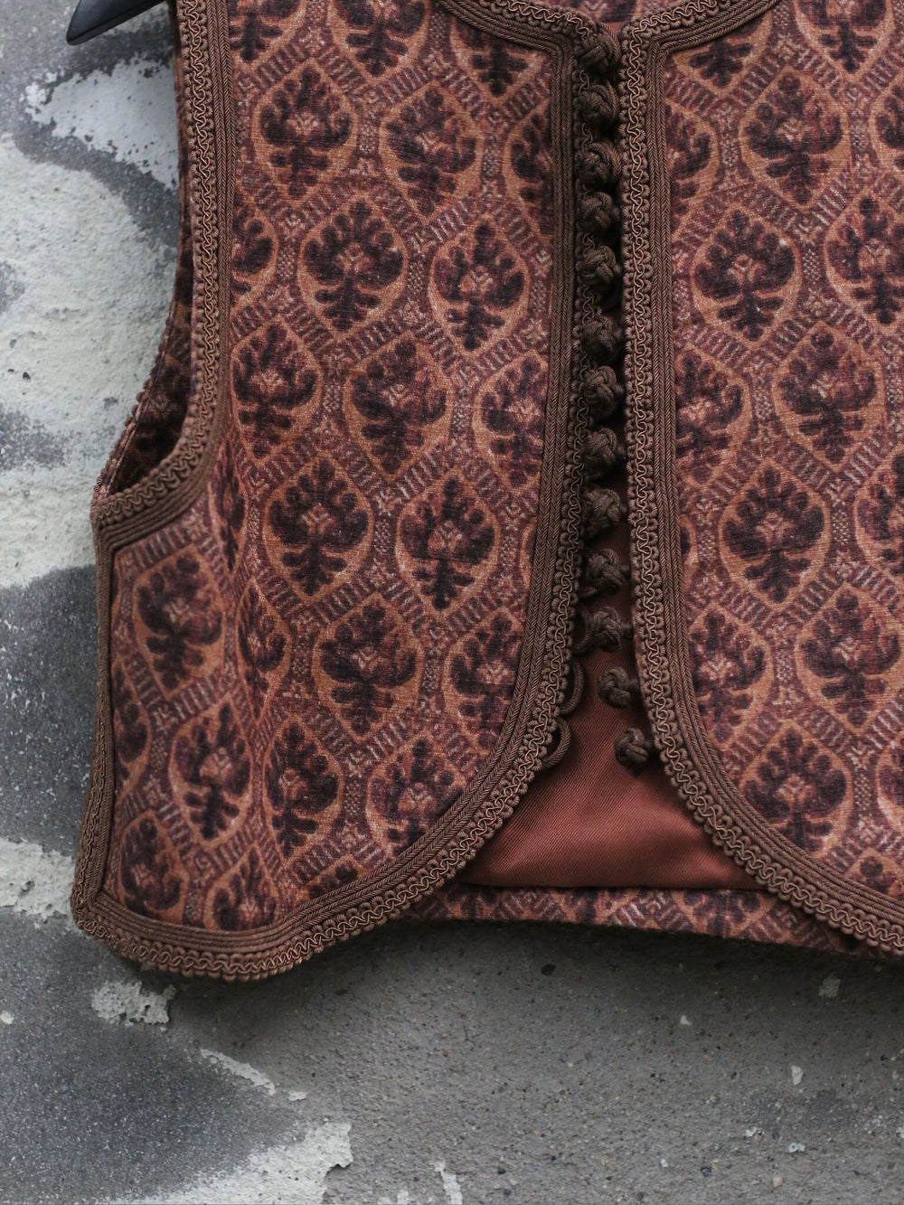INTO THE EAST Spring/Summer 2026 Vest with Floral Pattern and Chinese Knot Buttons INTO THE EAST Spring/Summer 2026 Vest with Floral Pattern and Chinese Knot Buttons ITE-E1JBSSVE21007-SLH Pomegranate Red