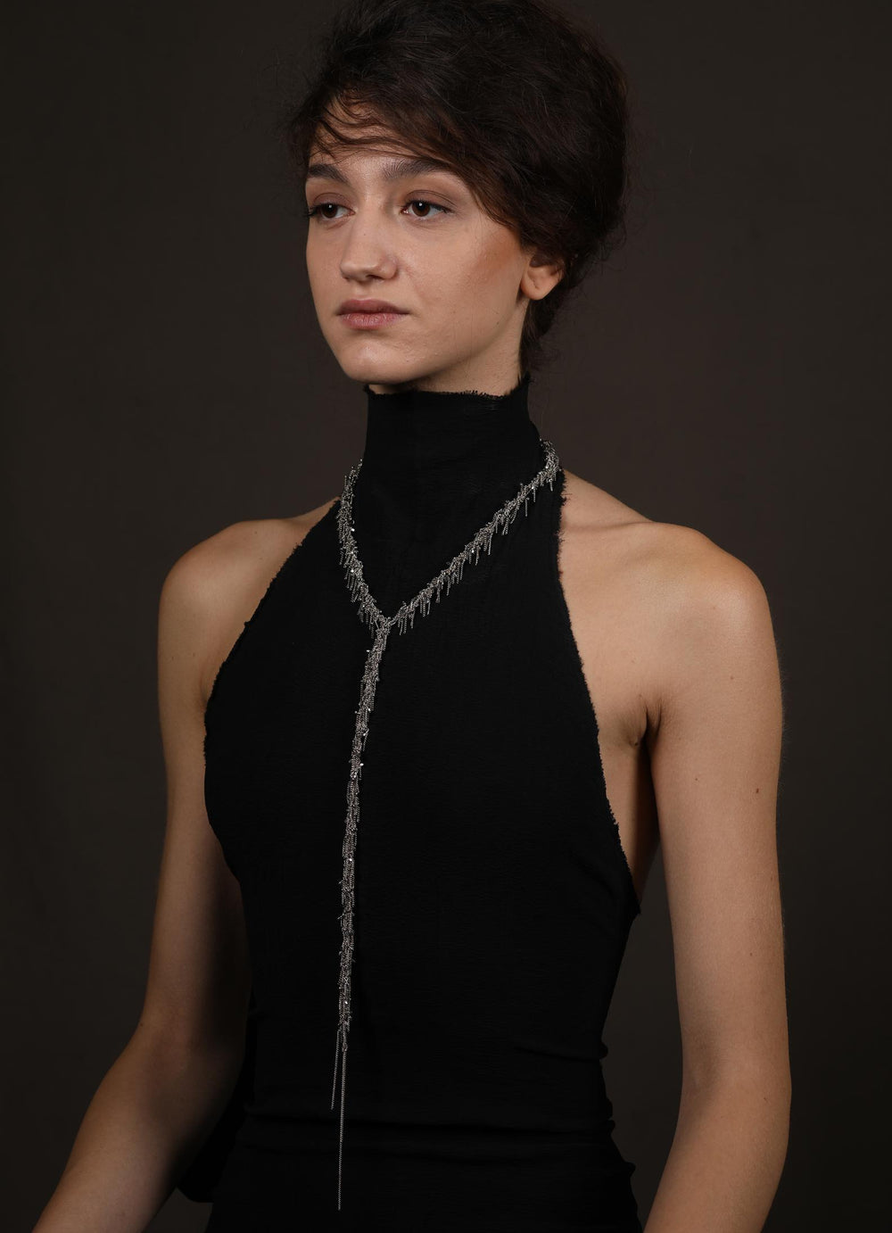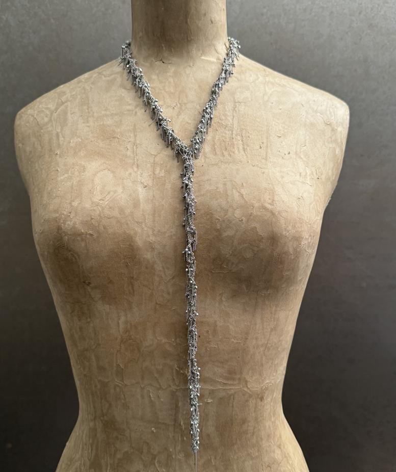 JEAN FRANCOIS MIMILLA Braided steel chain glass bead necklace France JFM-COL155 SS25-0