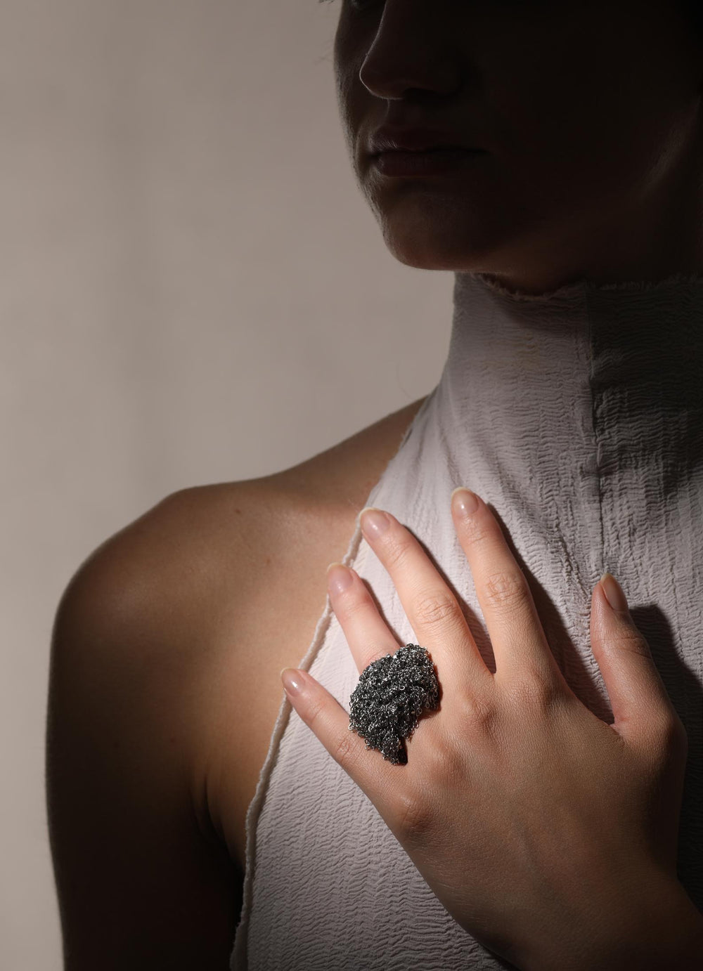 JEAN FRANCOIS MIMILLA steel chain glass bead ring France handmade JFM-BAG115 SS25-0