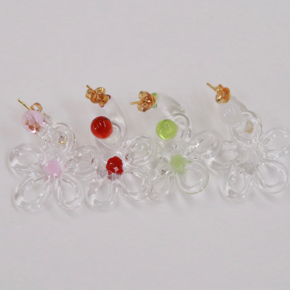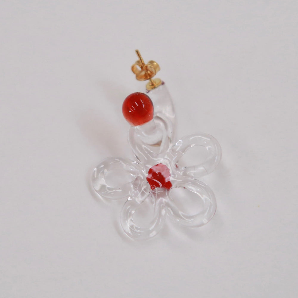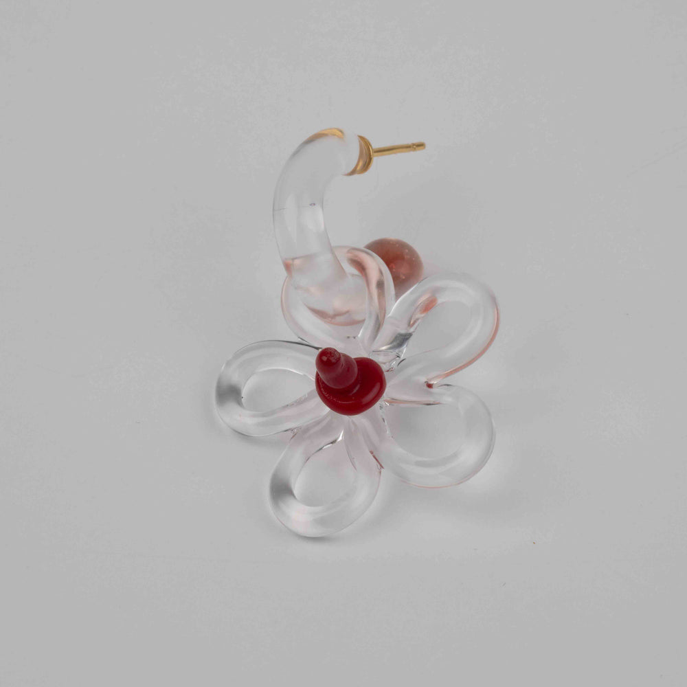 LEVENS 25 Spring/Summer Mini Glass Hoop + Daisy Charm Single Earring LVS-SS2518MINIGLSH.DSYCH-RD-HONG Red