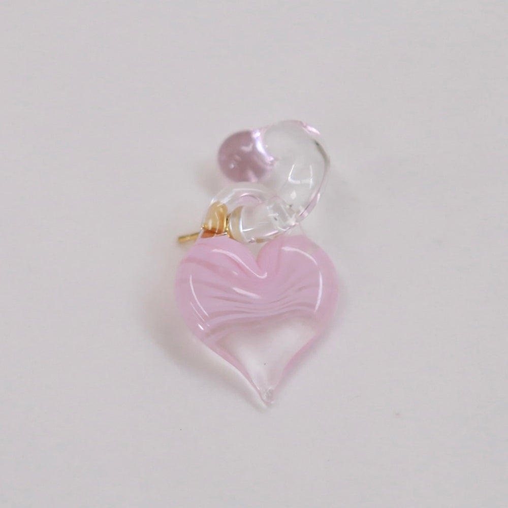 LEVENS 25 Spring/Summer Mini Glass Hoop + Heart Charm Single Earring LVS-SS2519MINIGLSHHRTCH-PNK-FEN Pink