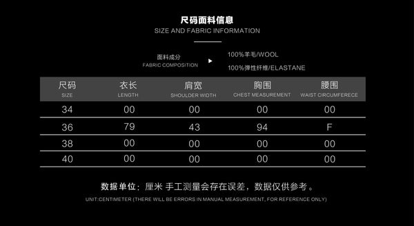 CHEST FIT (CM) | 716 | 76 | 81 | 86 | 91.5 | 96.5 | 101.1 |