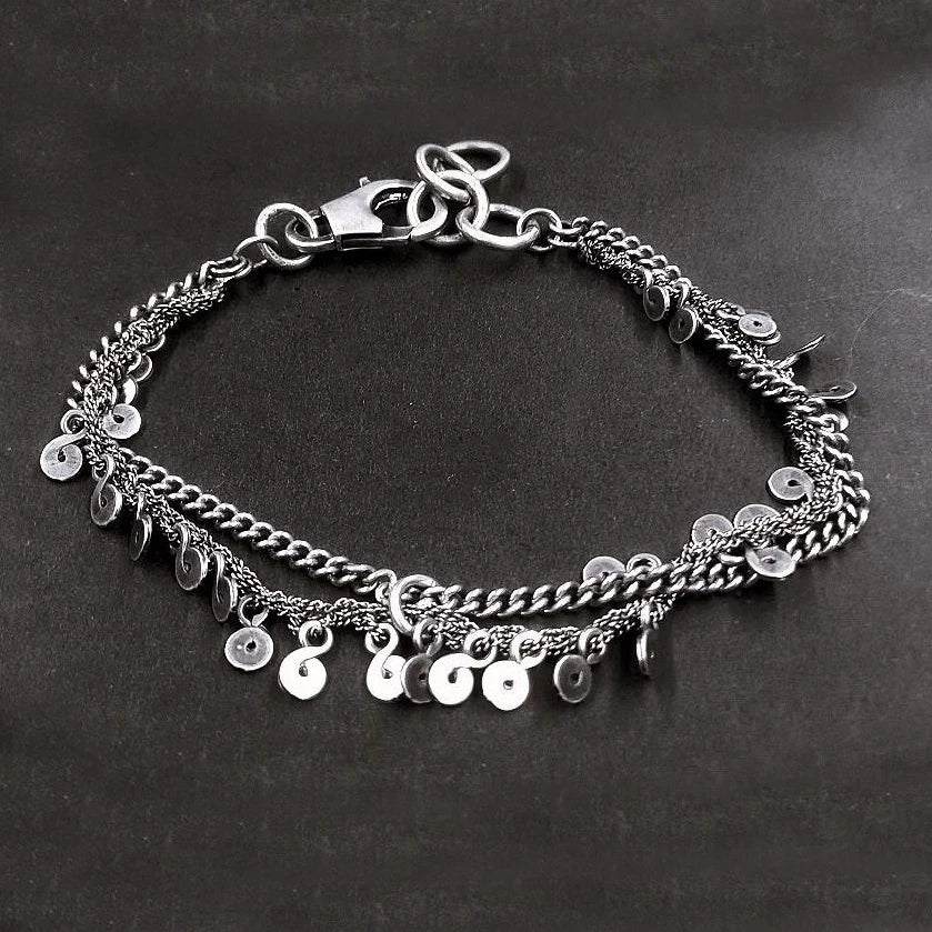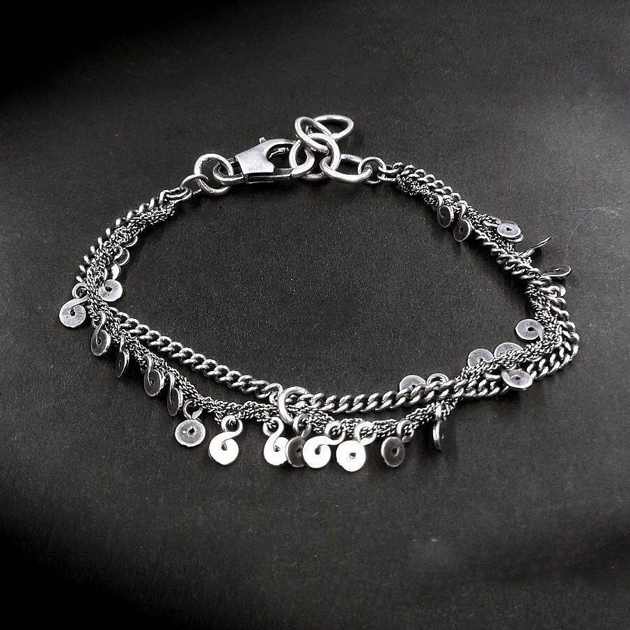 GOTI BR1119 Double Chain Multi-Pendant Bracelet, 925 Sterling Silver, Italy GT-BR1119