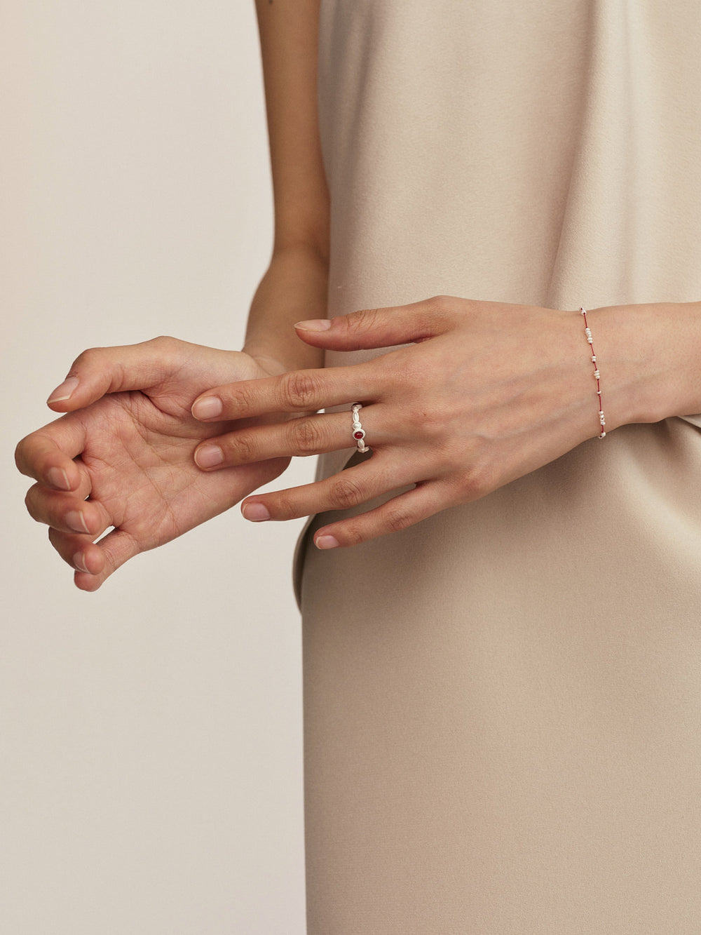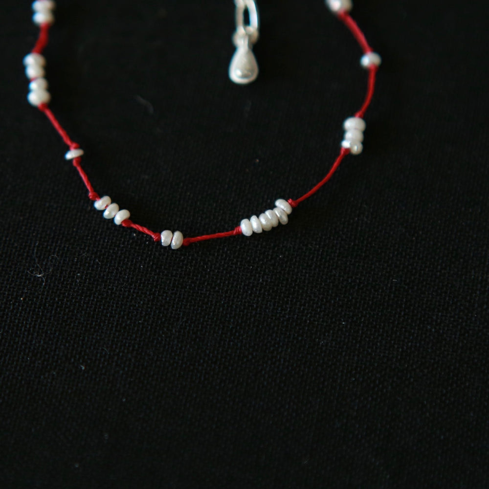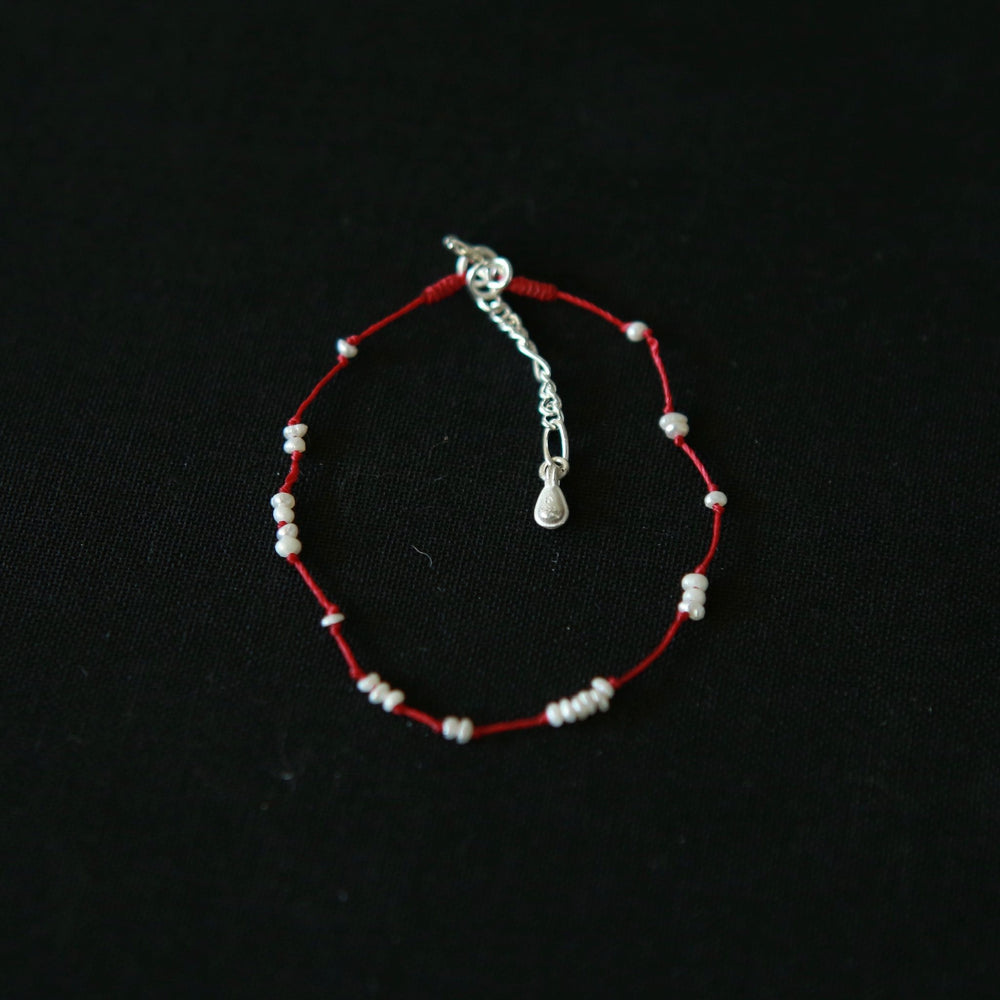 OLIO E ACETO New Year Collection Pearl Snow Woven Bracelet OLIO-OA13A22-ZZBH Pearl White/Red