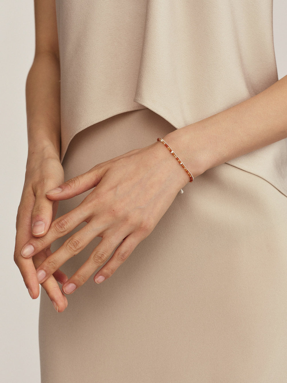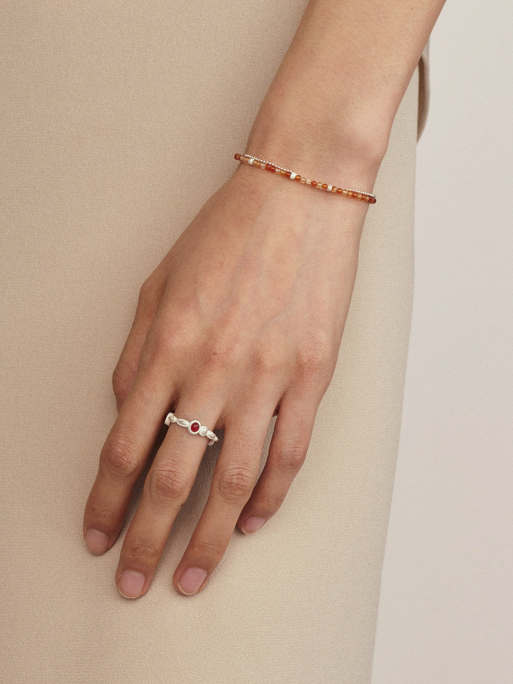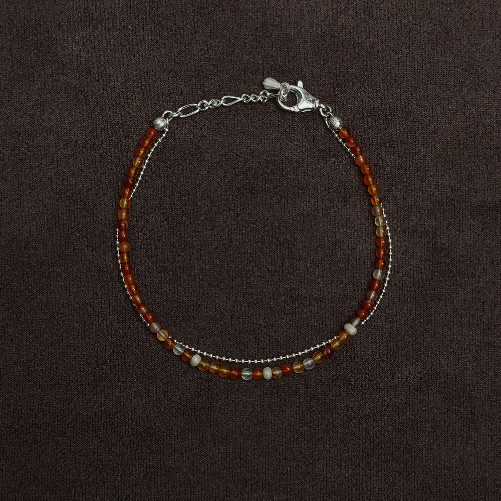 OLIO E ACETO New Year Collection Sterling Silver Red Agate Double-Layer Bracelet OLIO-OA13A24-JHY Orange/Silver