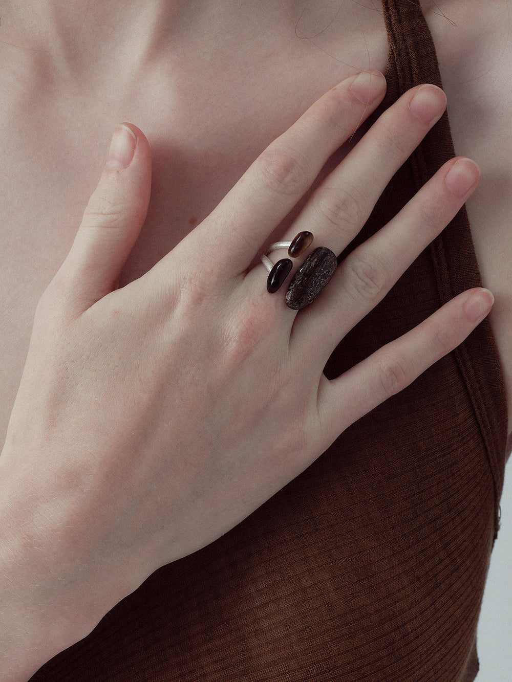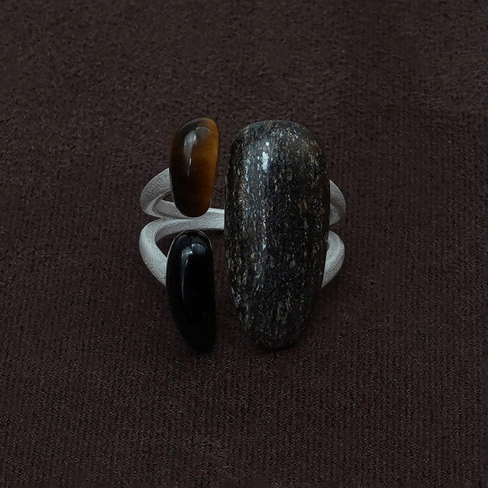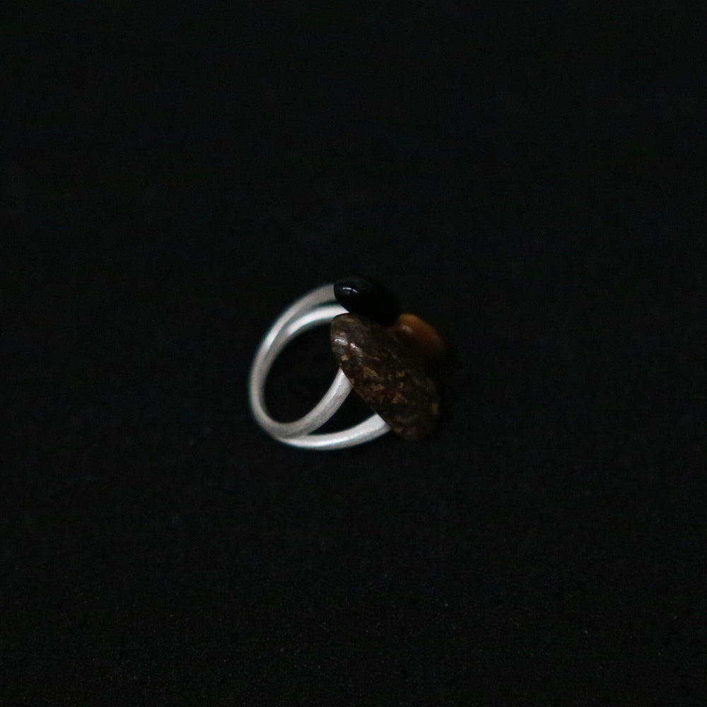 OLIO E ACETO Sterling Silver Antique Bronze Pyroxene/Grey Agate Dream Ring OLIO-OA14F01-SZZH Dark Brown/Brown/Black