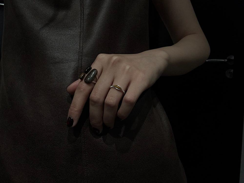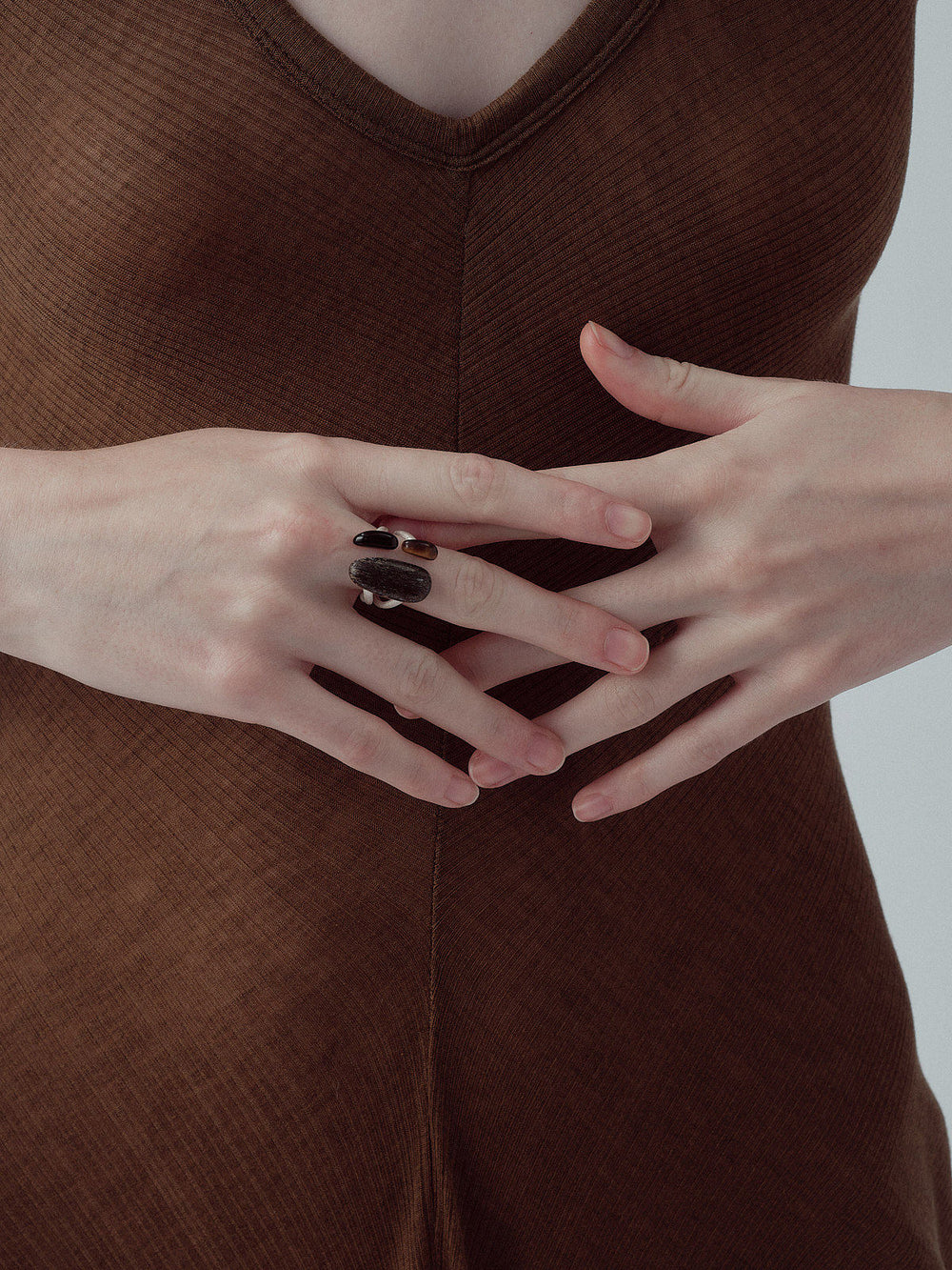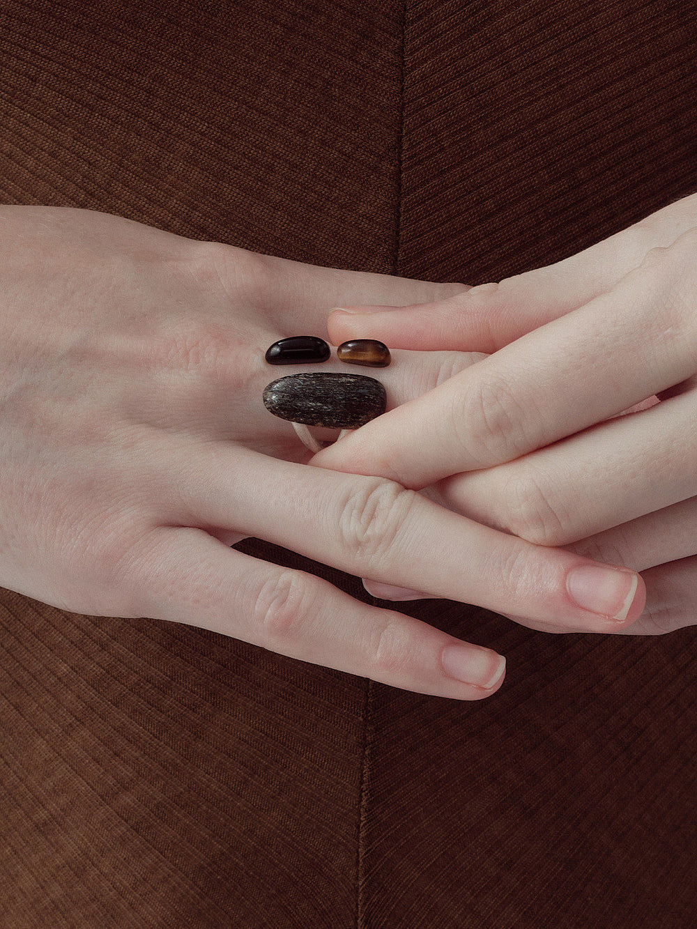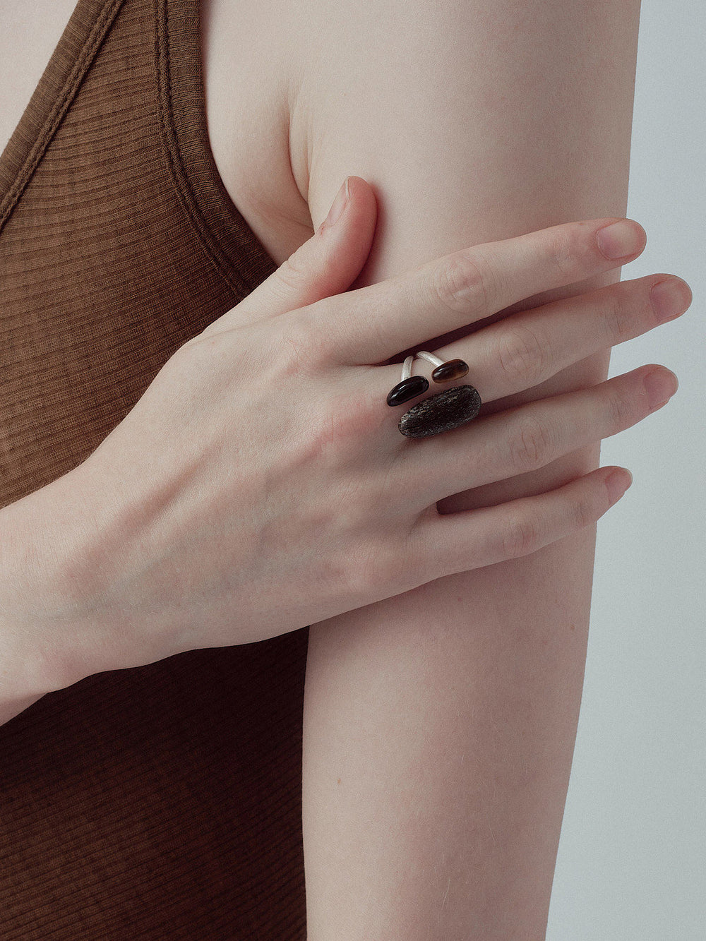 OLIO E ACETO Sterling Silver Antique Bronze Pyroxene/Grey Agate Dream Ring OLIO-OA14F01-SZZH Dark Brown/Brown/Black