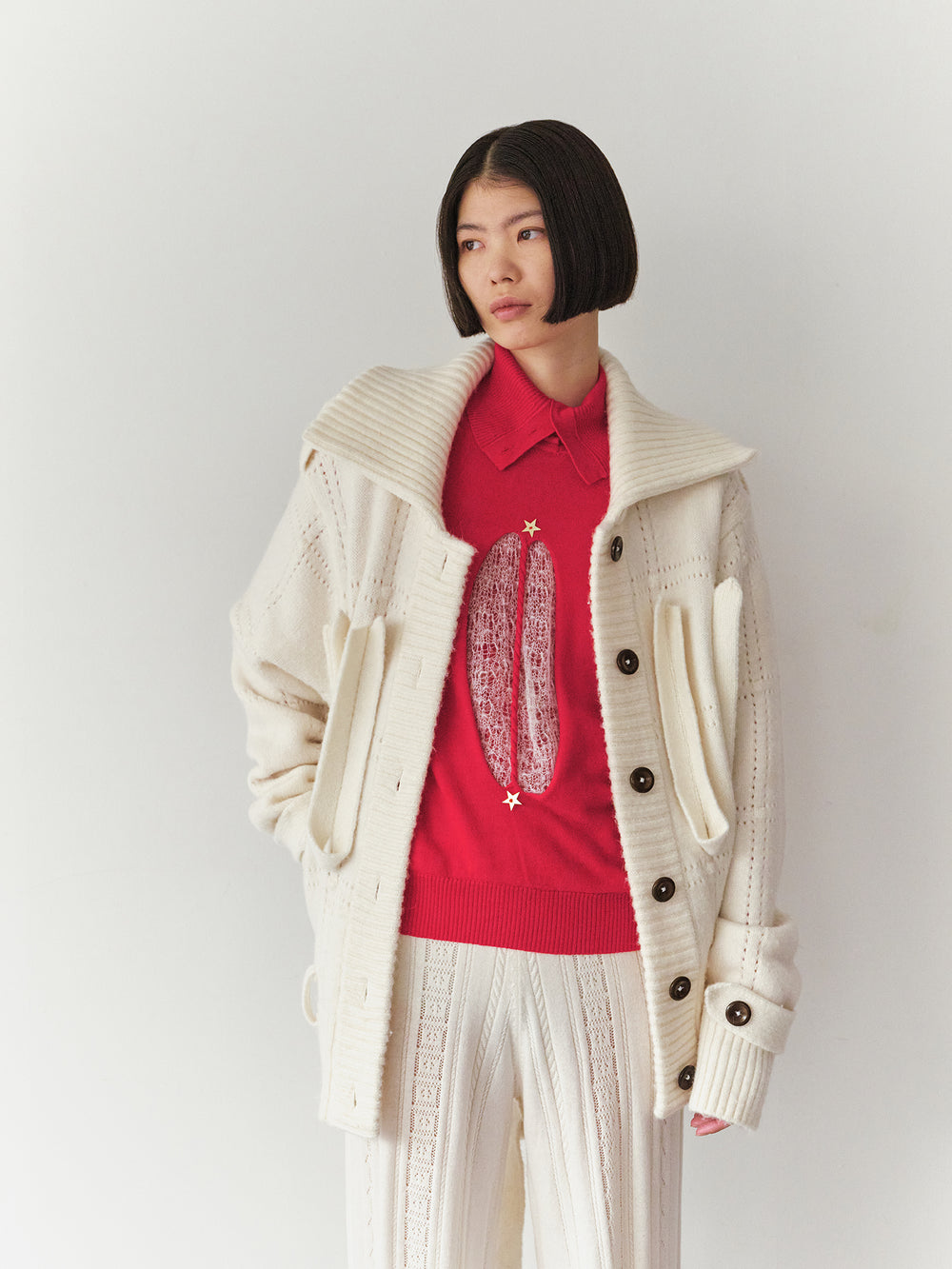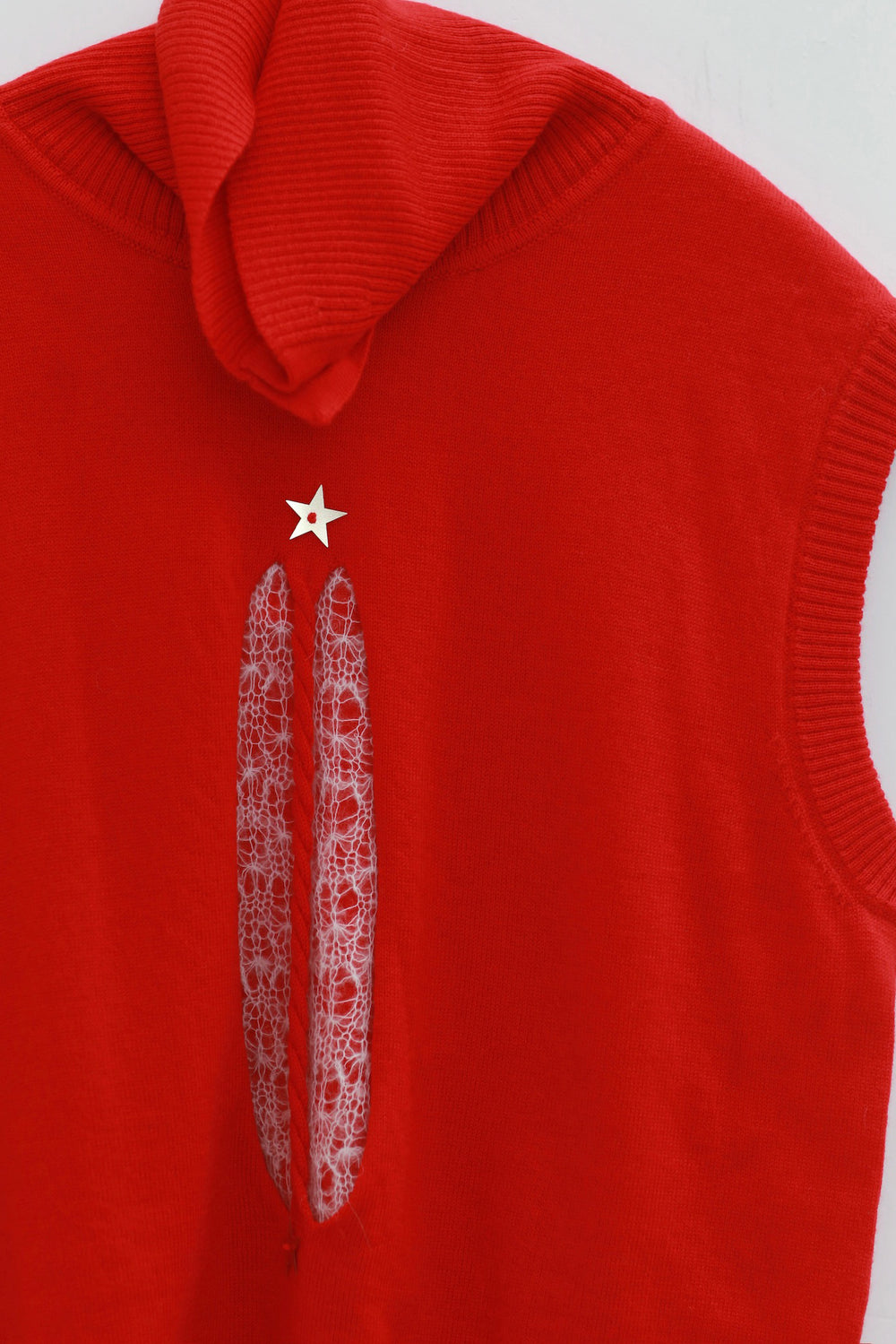NAN KNITS 25 Autumn and Winter Hollow Cable Star Vest NAN-N25AWVE04RED-HONG Red