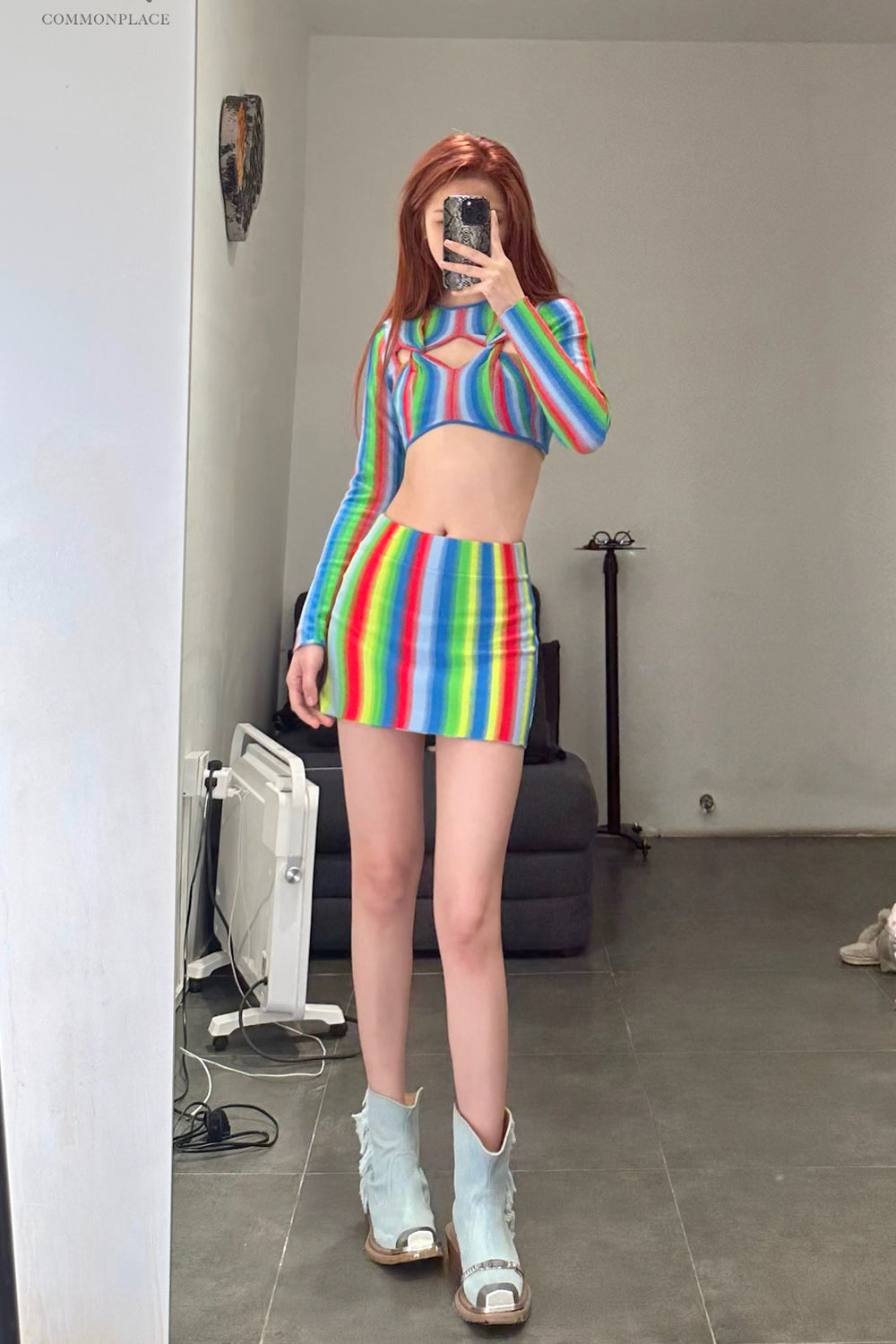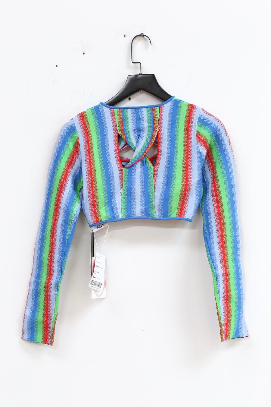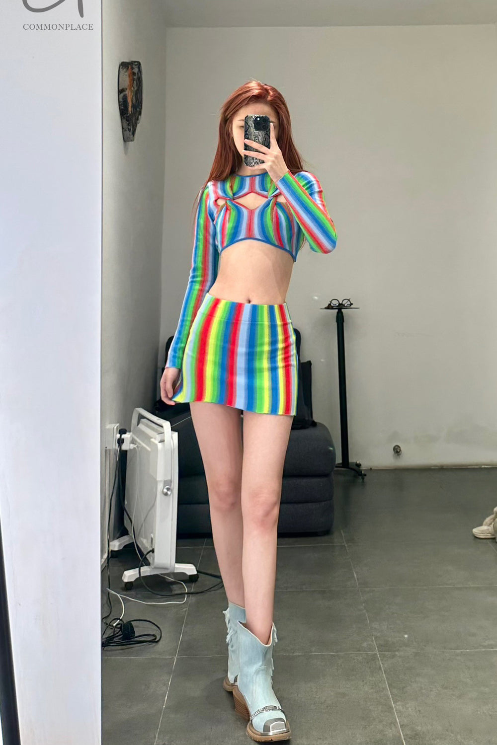 NAN KNITS Gradient Striped Cropped Knit Sweater 22011088 Green