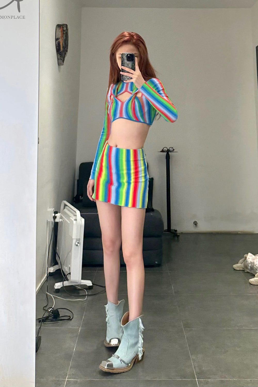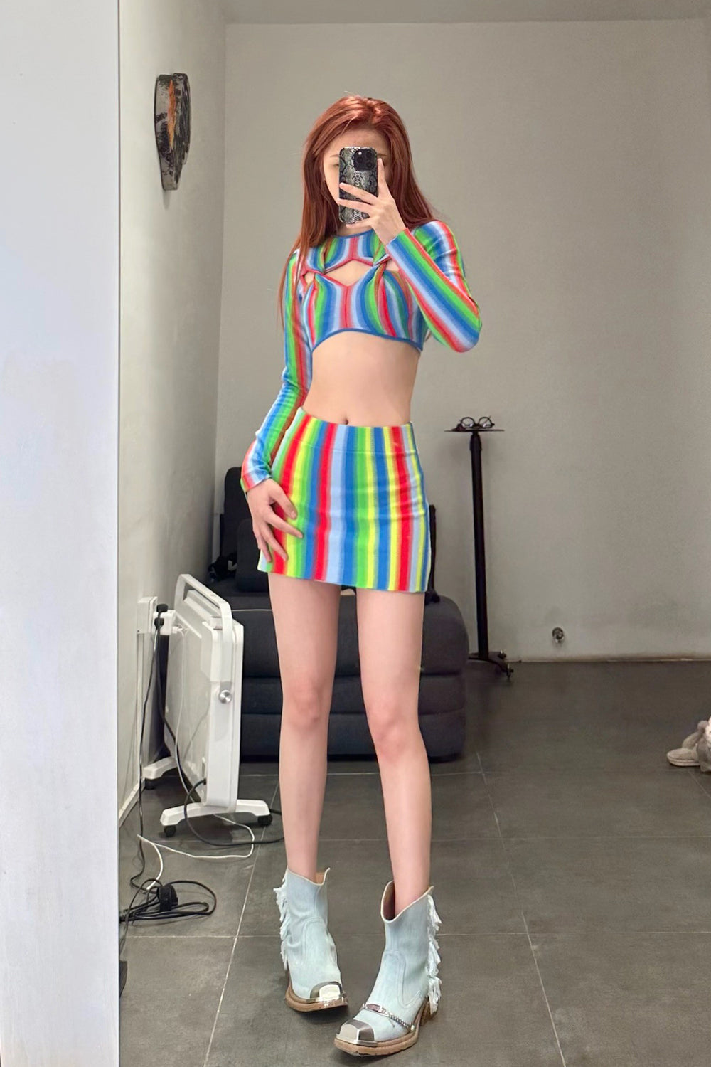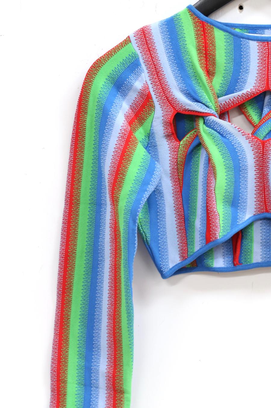 NAN KNITS Gradient Striped Cropped Knit Sweater 22011088 Green