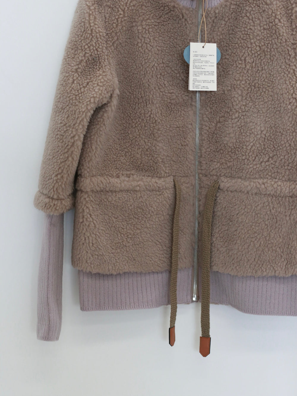 o cloche code 25 Fall/Winter Camel Hair and Wool Patchwork Coat OCC-OH01K898-YS PERLE Moon Sand Color