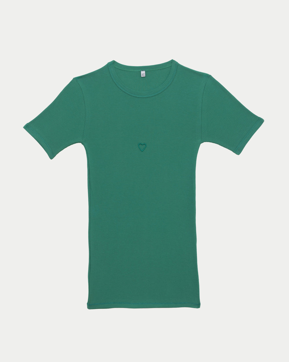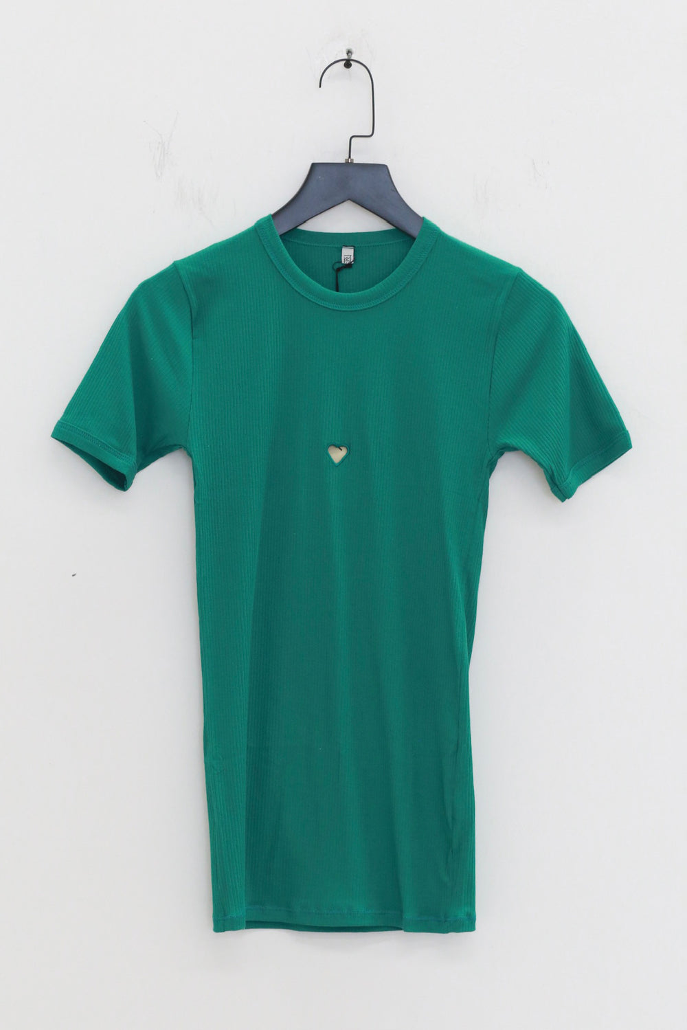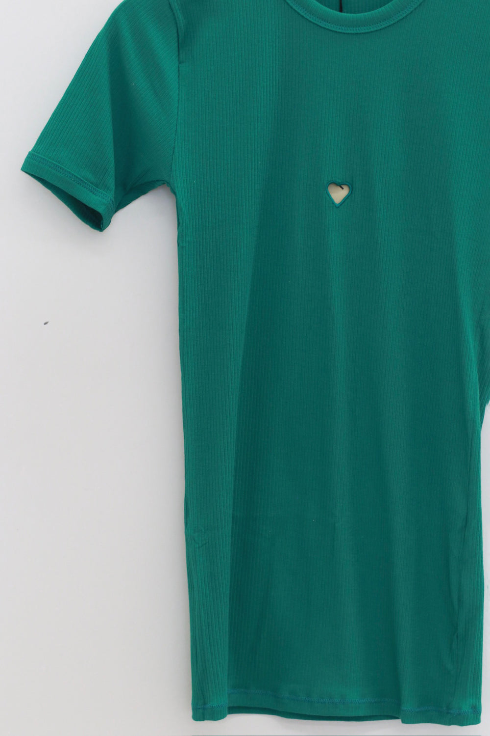 BASERANGE 2025 Pre-Spring Collection: French Organic Cotton T-Shirt with Cut-Out Heart Design, Short Sleeves, MIRA GREEN (TOHS) (BAS-TTHTS-CR-AU25)