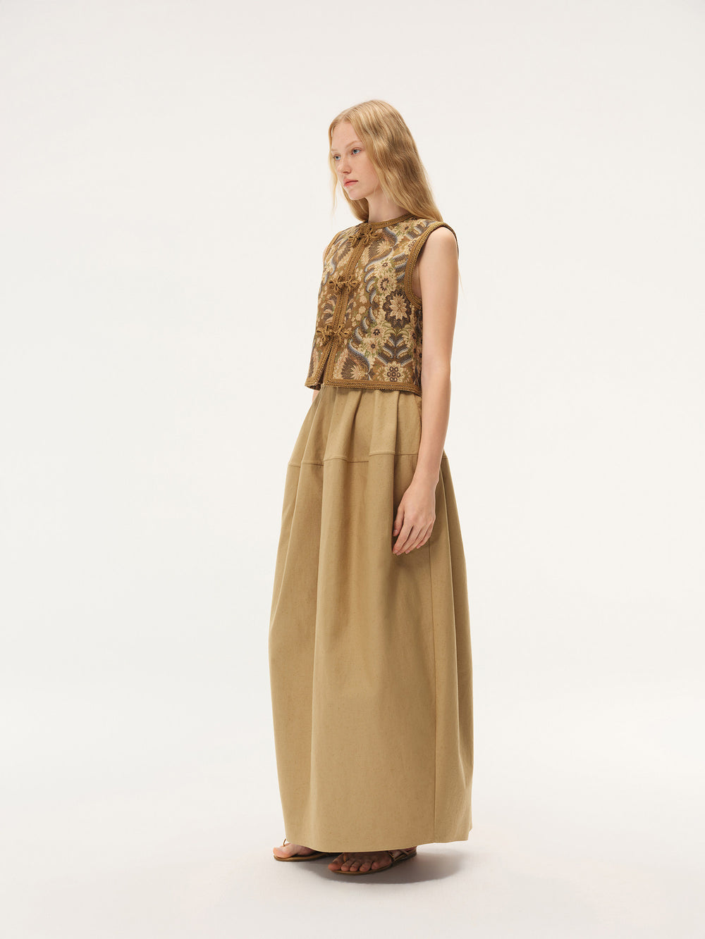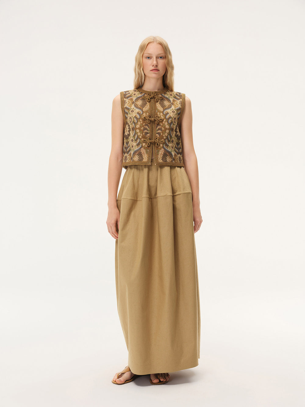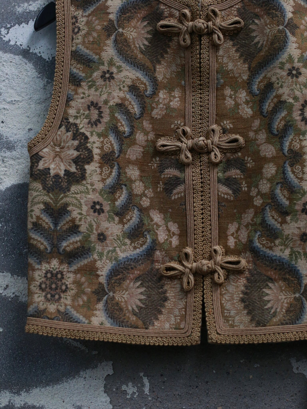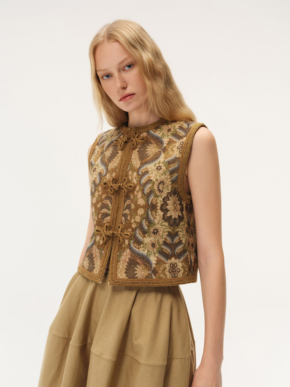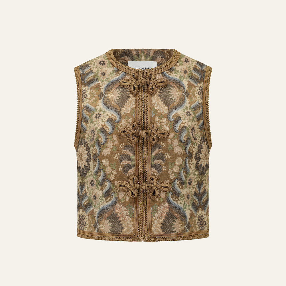 INTO THE EAST Spring/Summer 2026 Palm Scroll Button Vest ITE-E1JBSSVE21006-HUA Floral Pattern