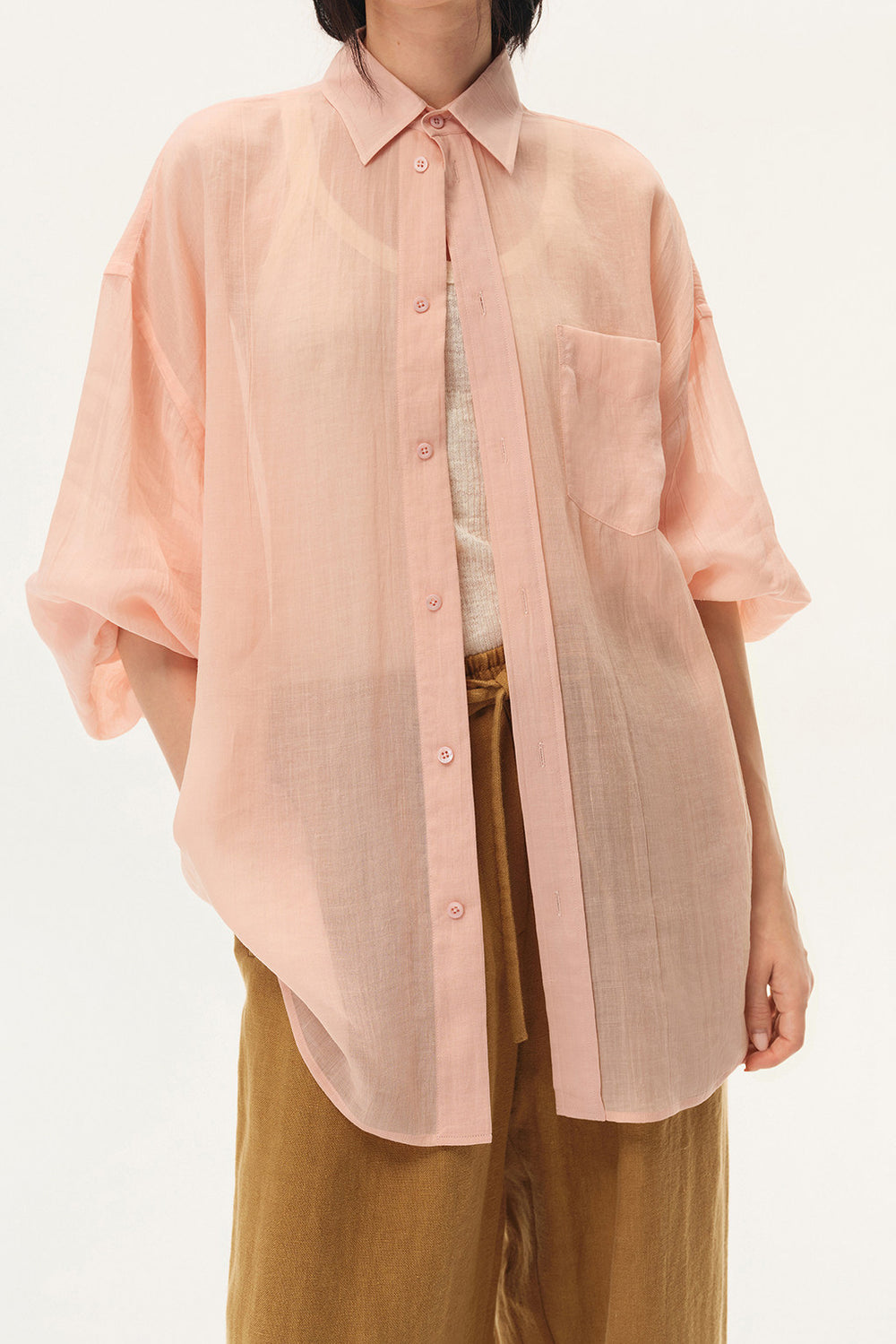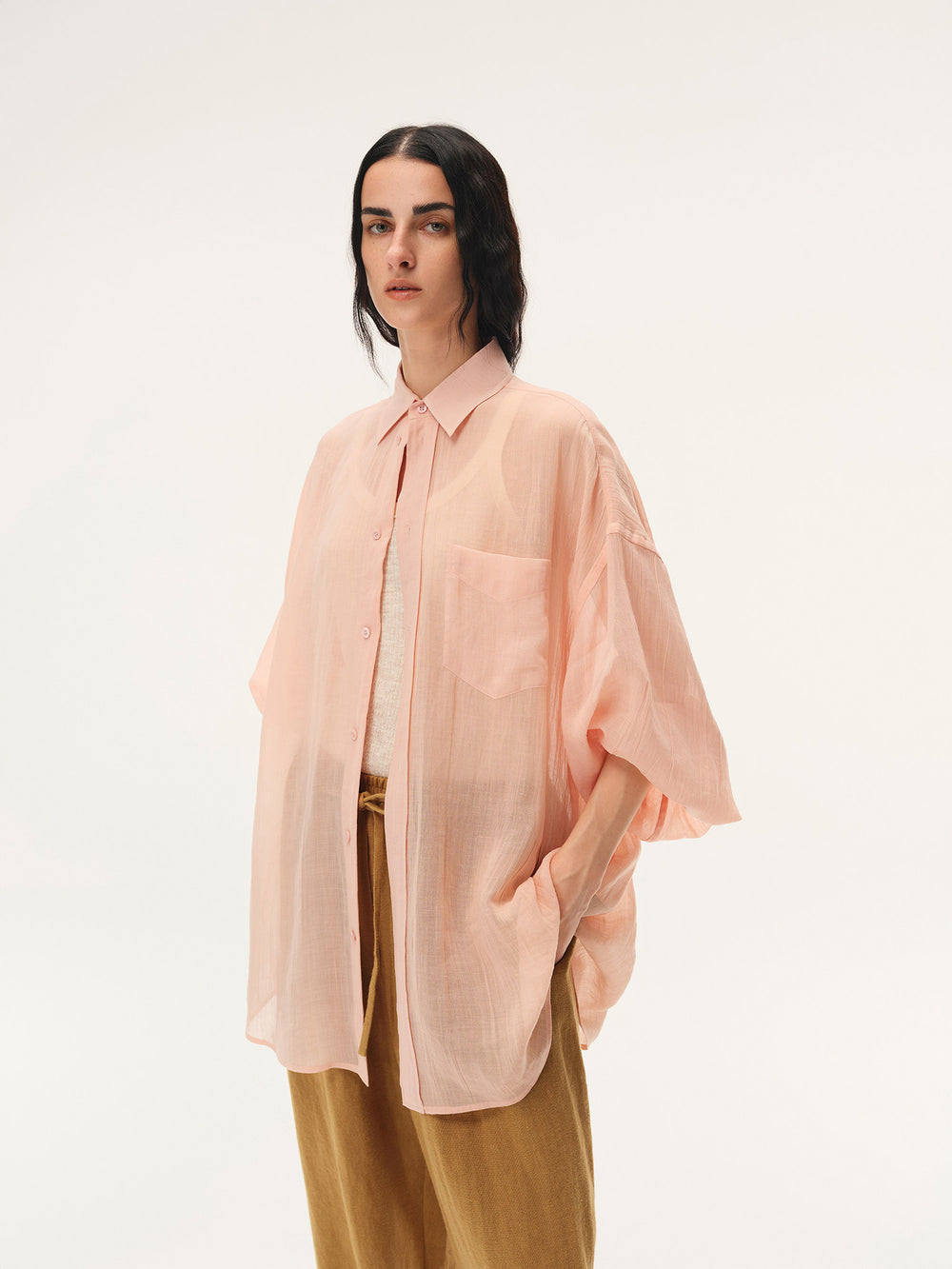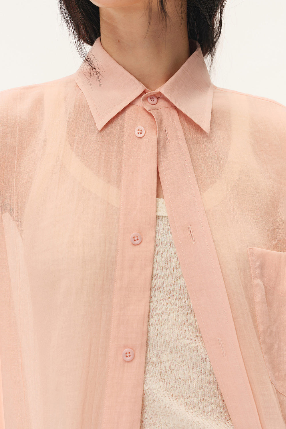 INTO THE EAST Spring/Summer 2026 Pink Slightly Sheer Collared Shirt ITE-E1JBSSSH20006-FEN Pink
