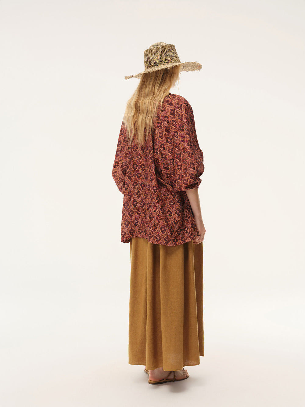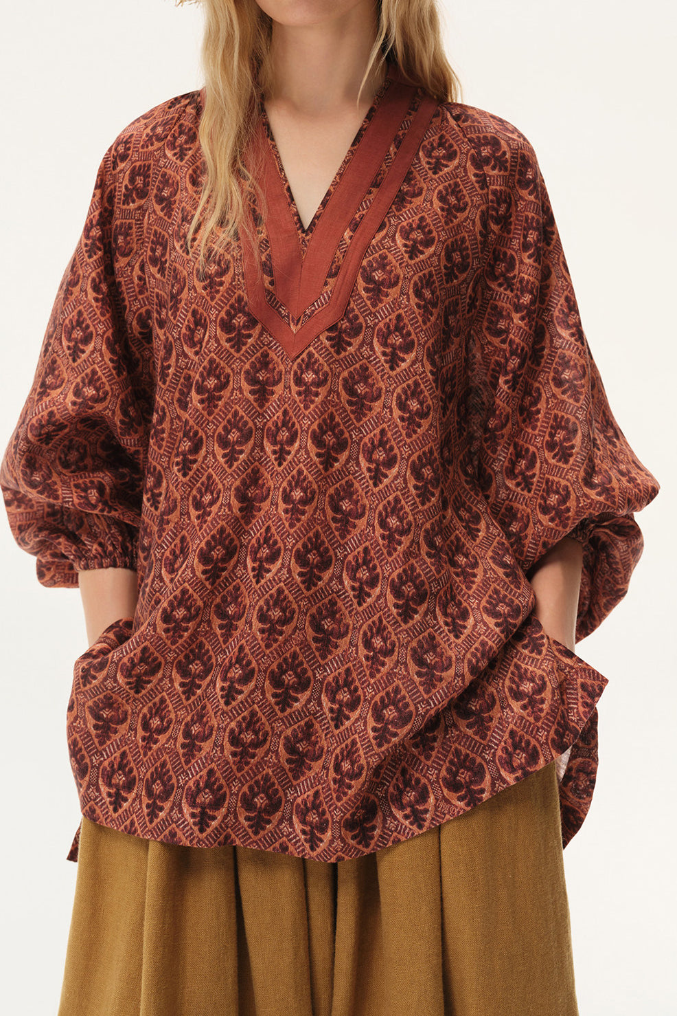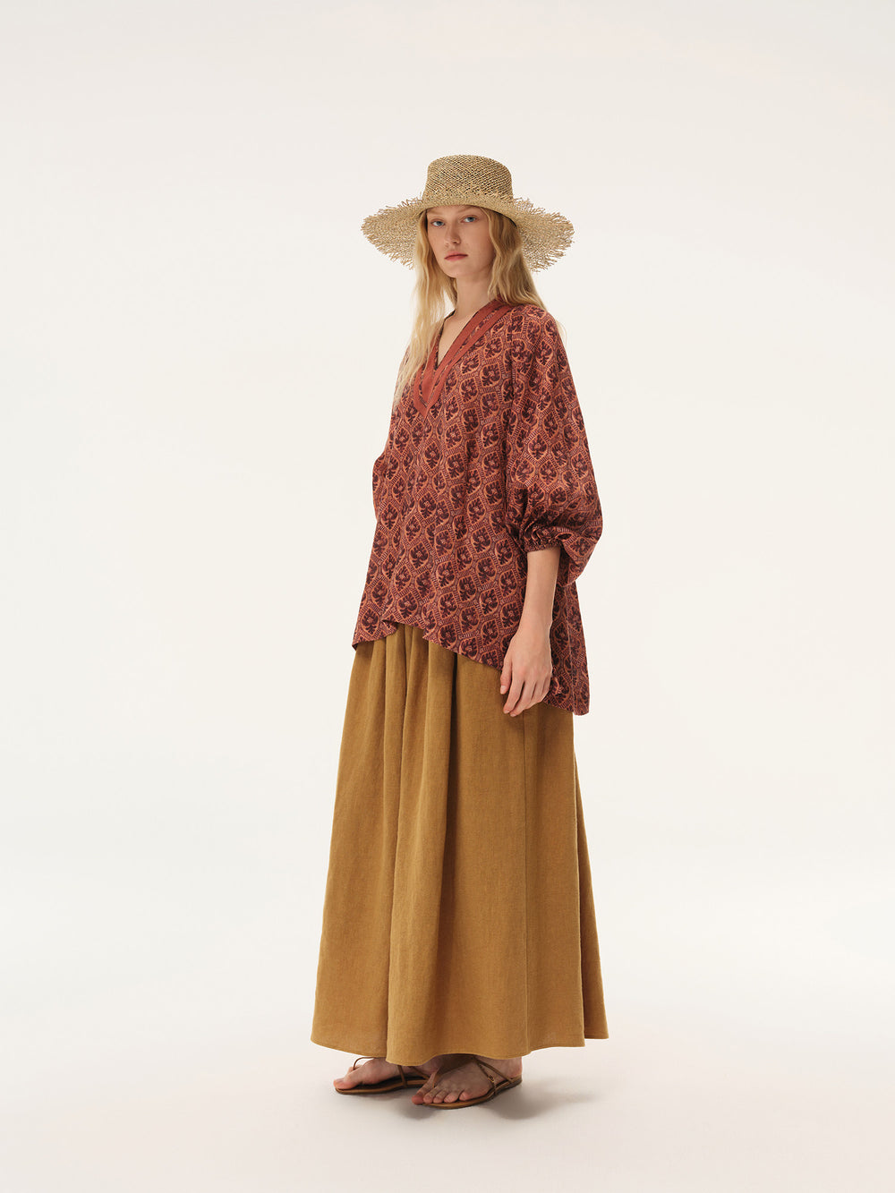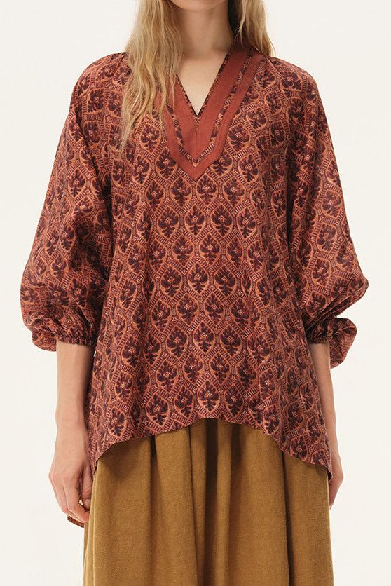 INTO THE EAST Spring/Summer 2026 Shield Flower V-neck Top ITE-E1JBSSTP21022-SHL Pomegranate Red