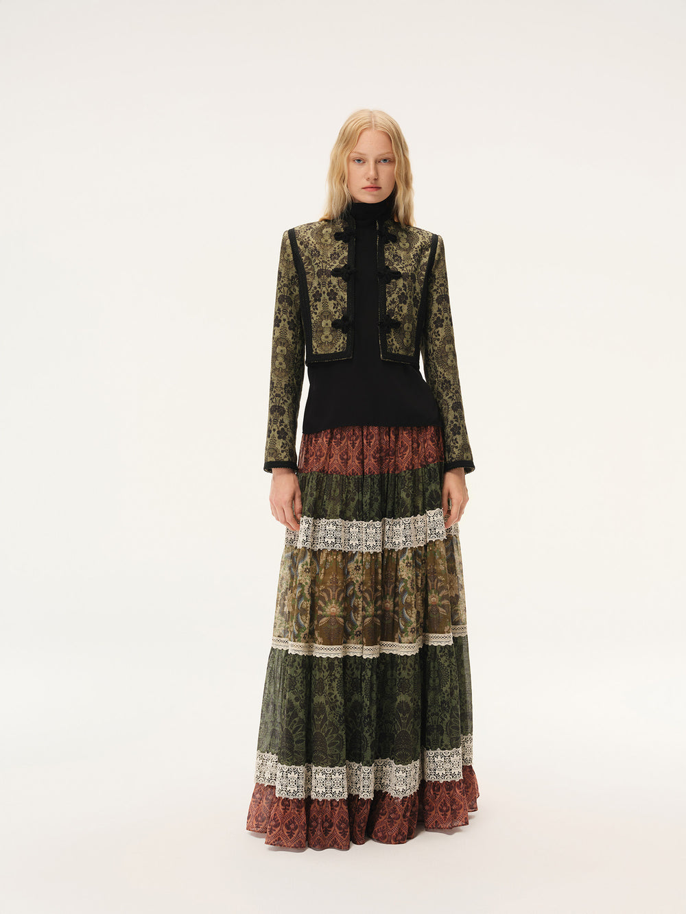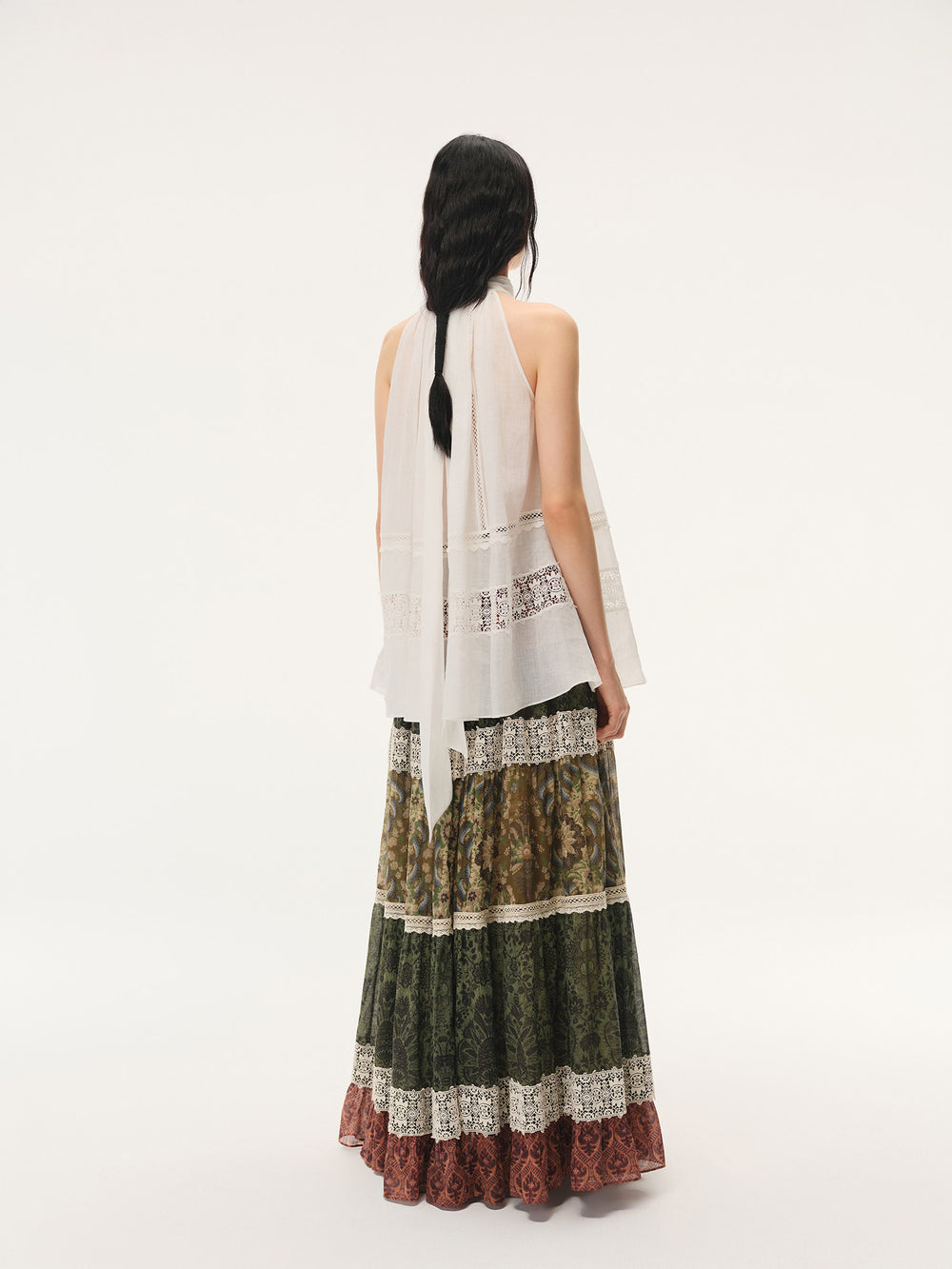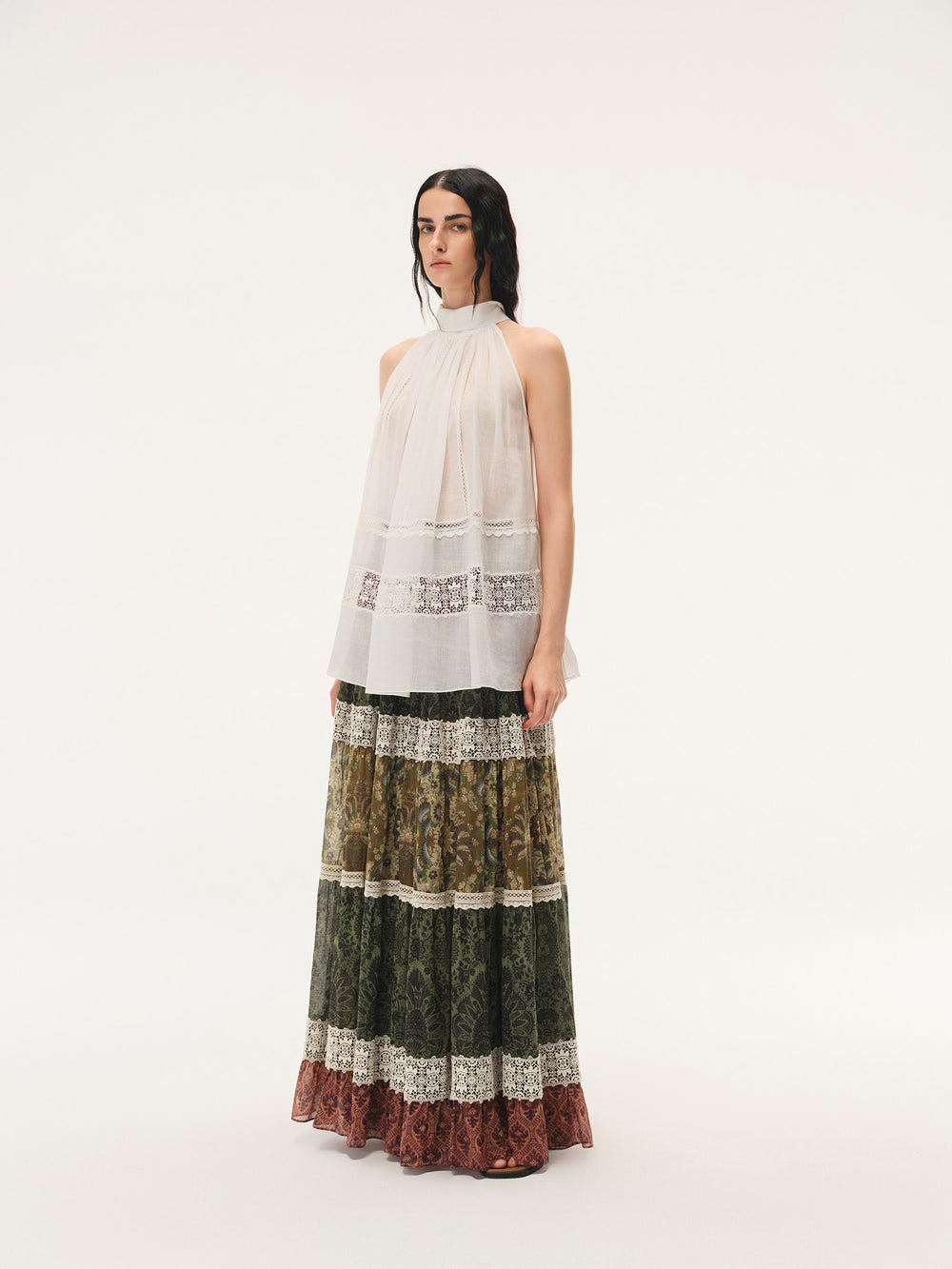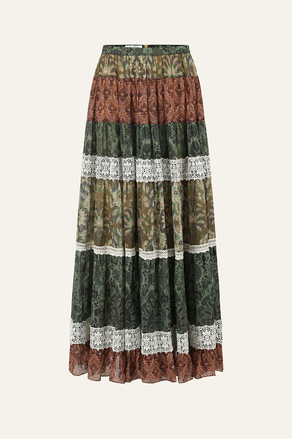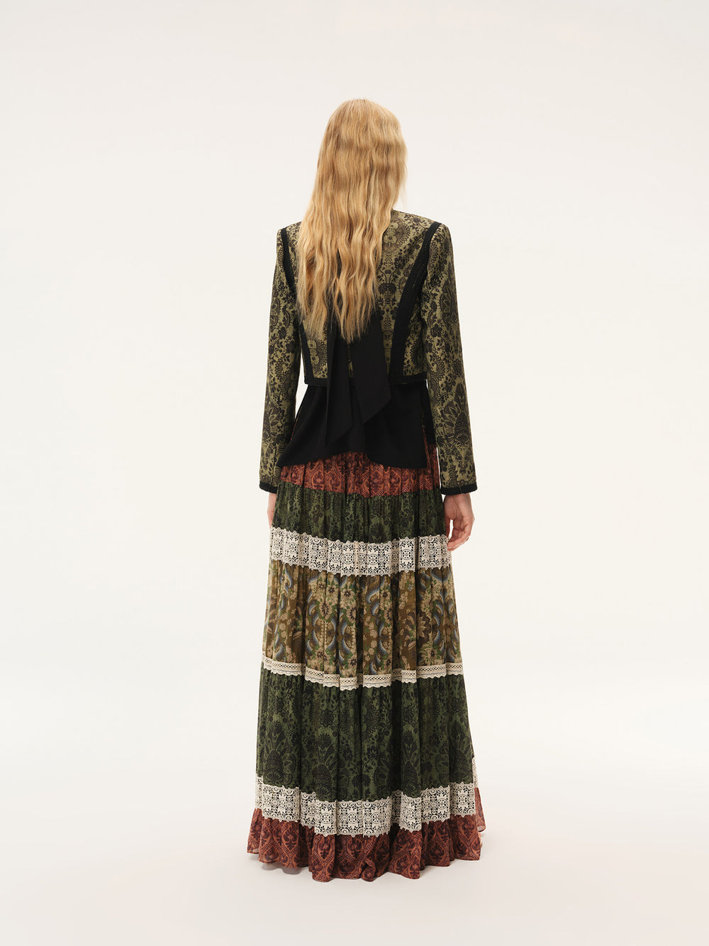 INTO THE EAST Spring/Summer 2026: Square floral patchwork lace maxi skirt ITE-E1JBSSSK21020NCC-HUA Floral pattern