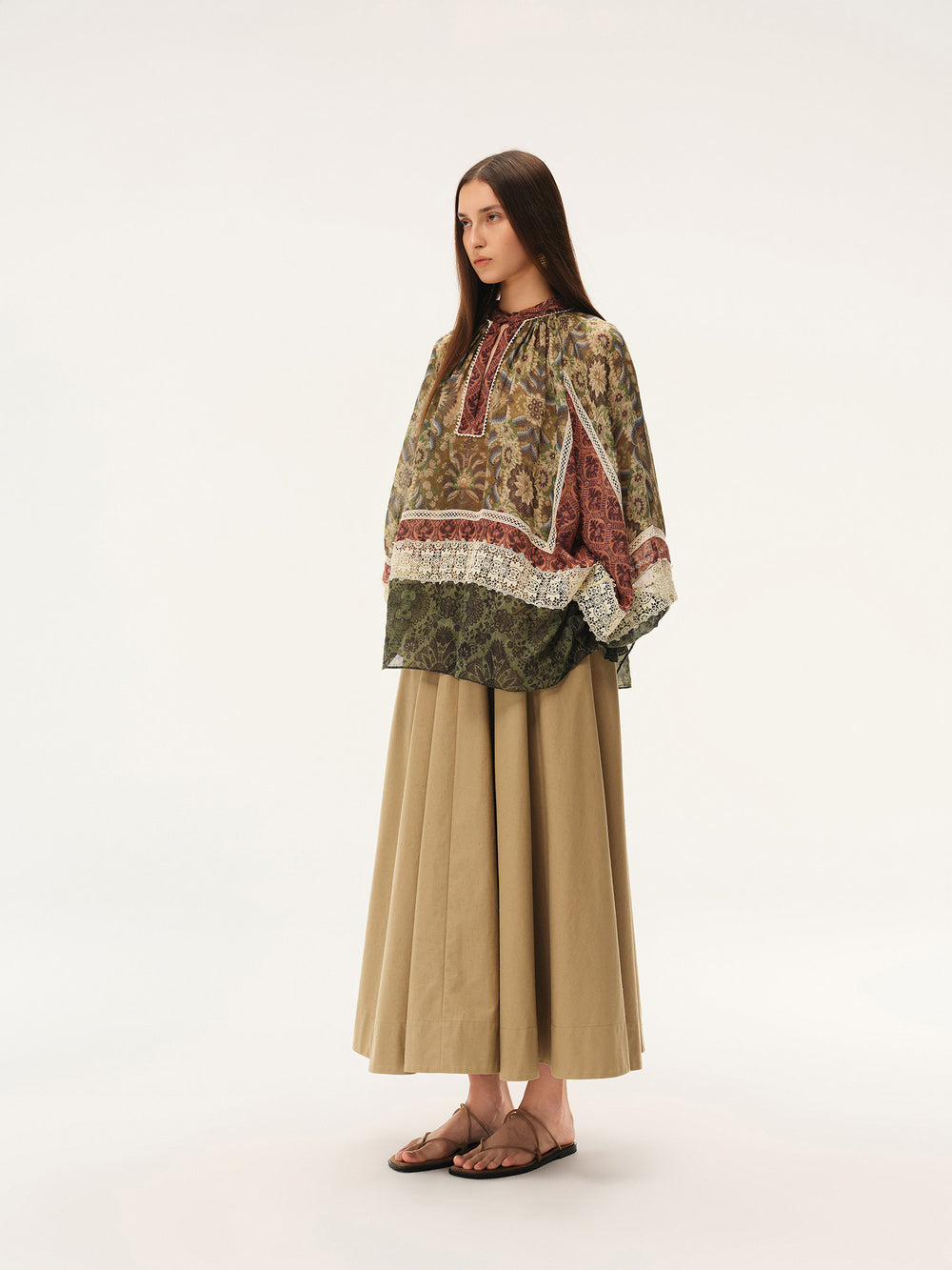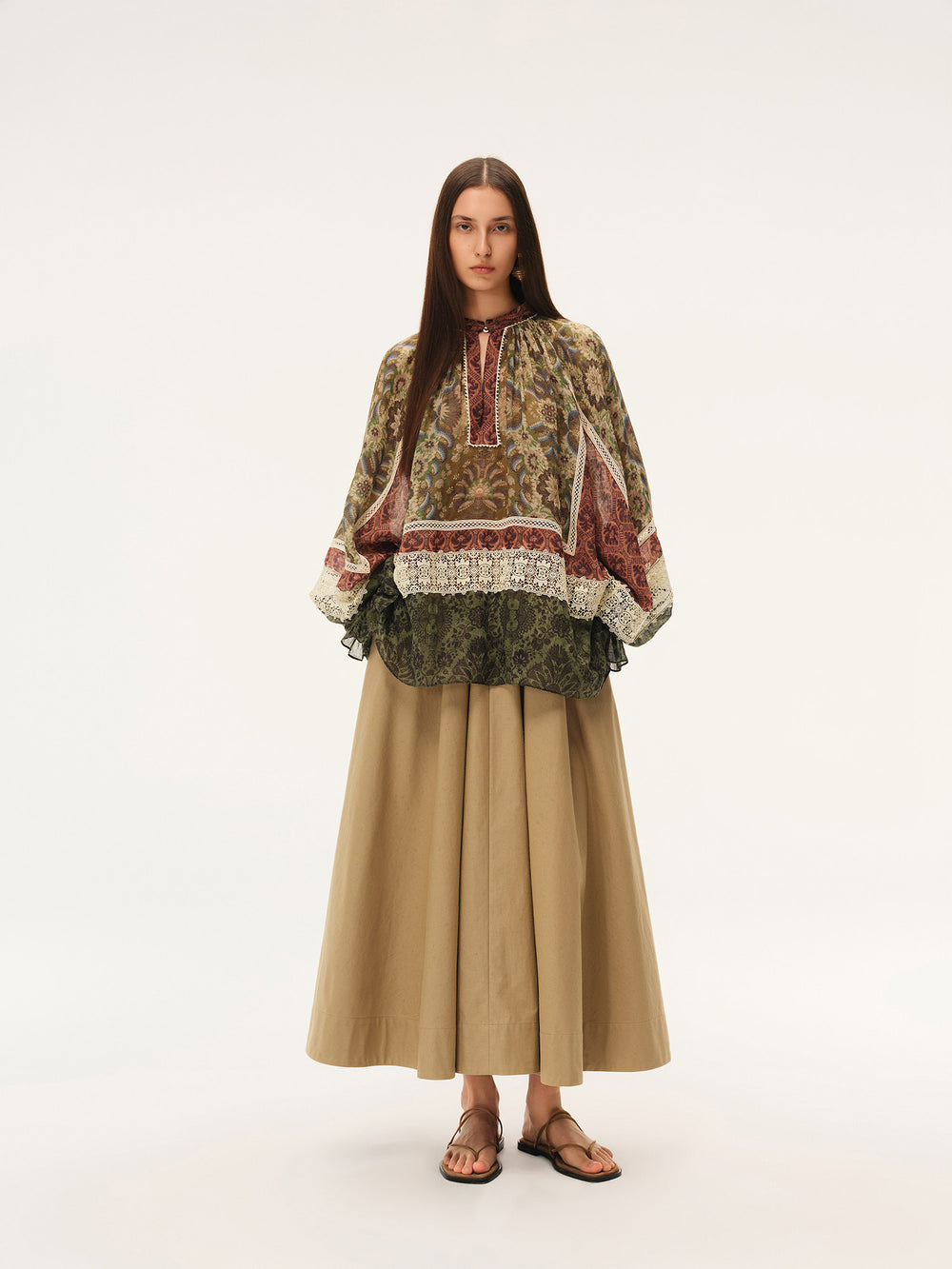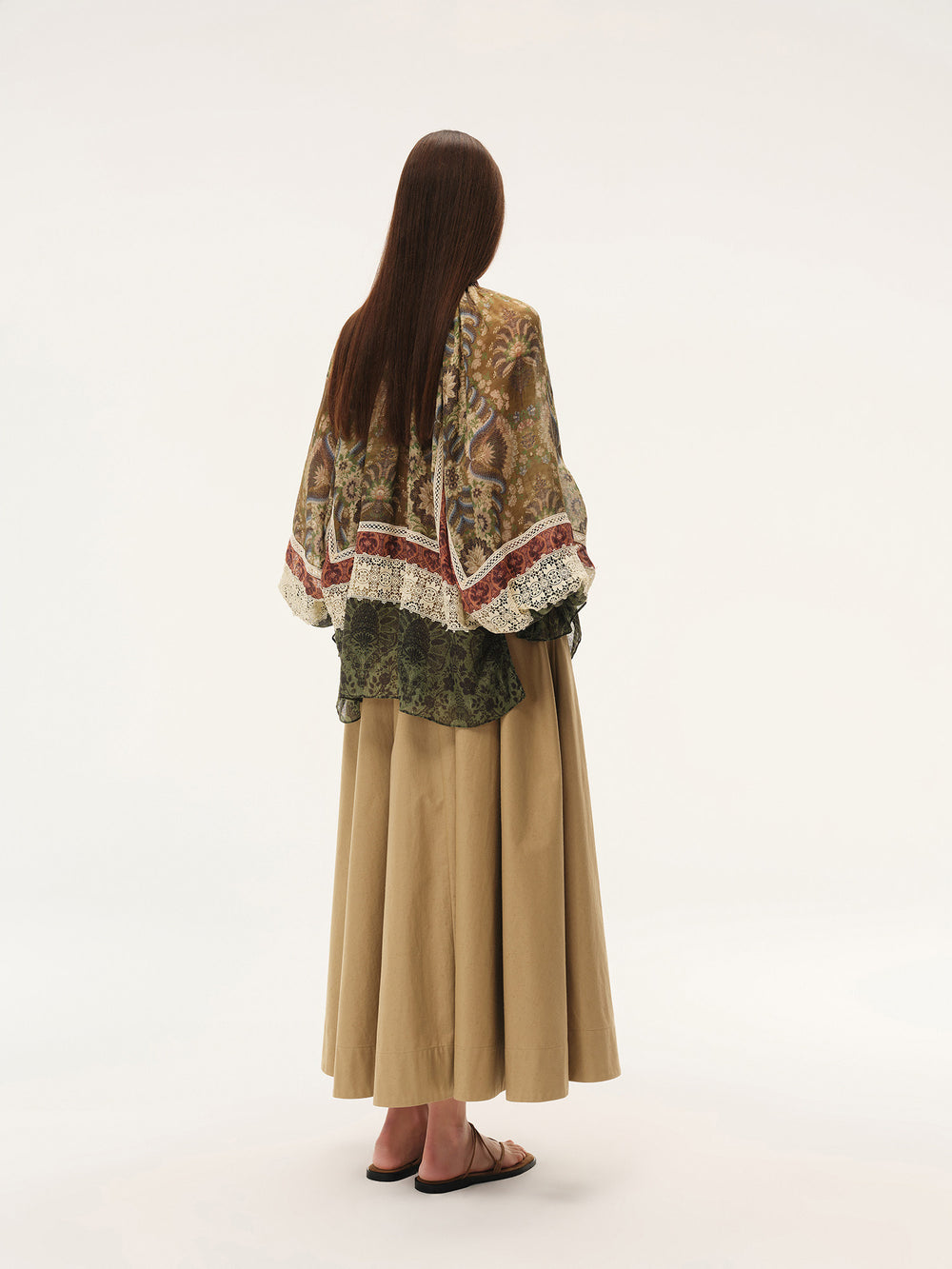 INTO THE EAST Spring/Summer 2026: Square floral patchwork lace puff sleeve top/shirt ITE-E1JBSSTP21027-HUA (Pattern)