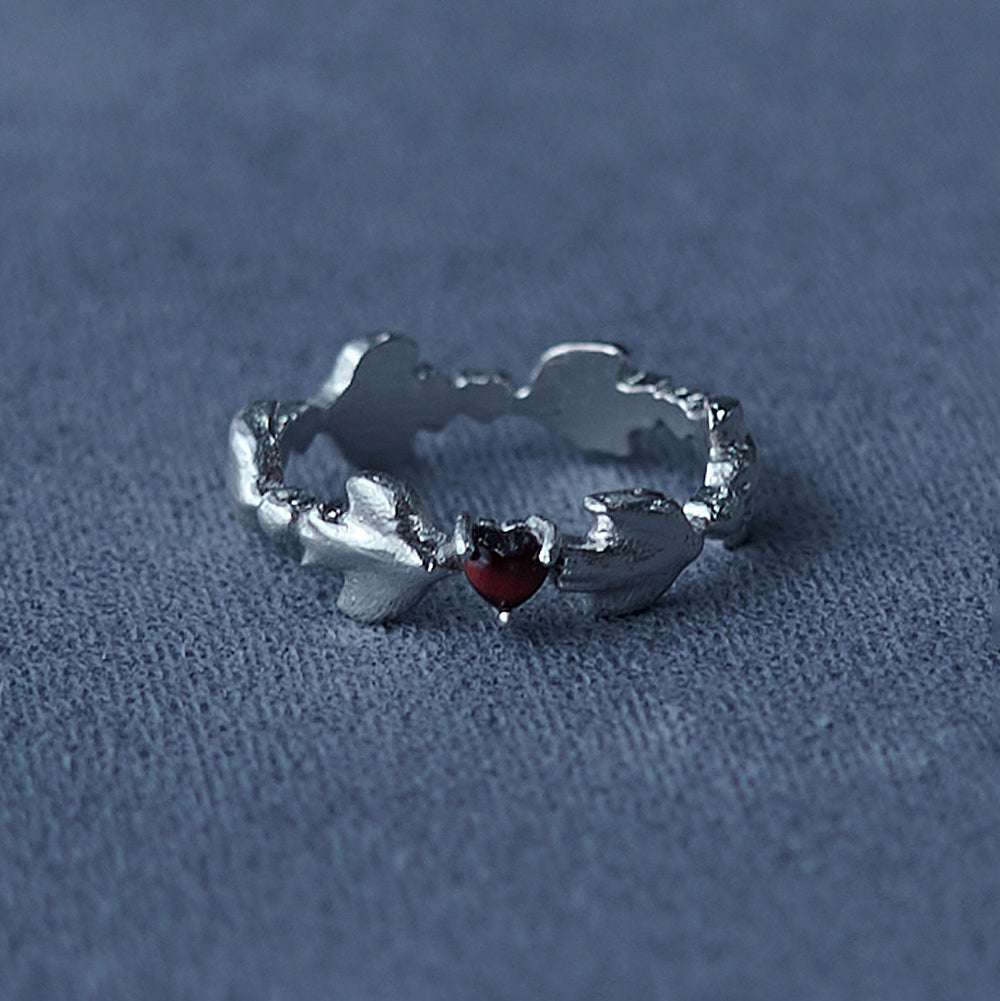 SALE E PEPE Sterling Silver Heart and Bird Ring SEP-SPVAF01-YIN Silver