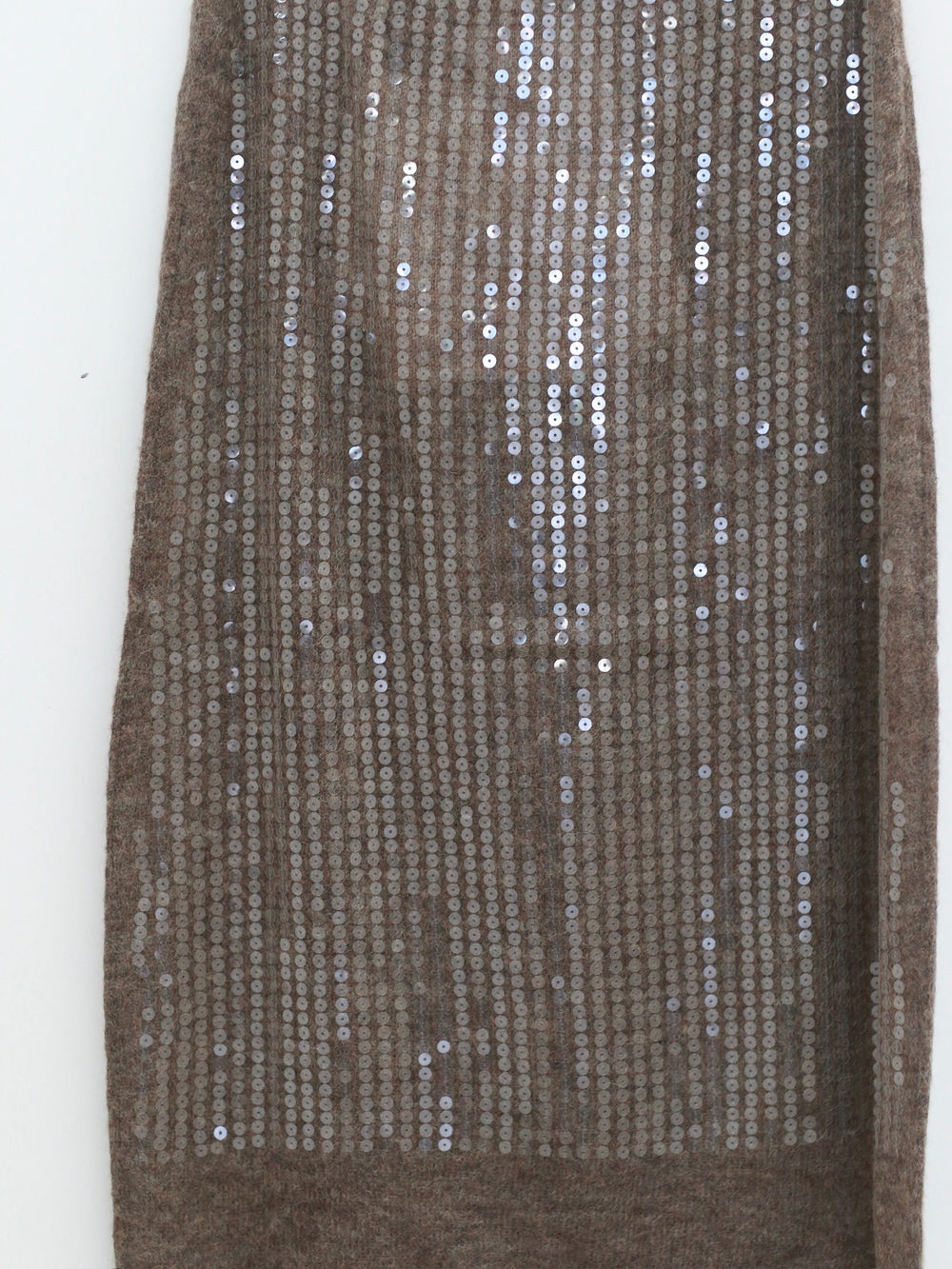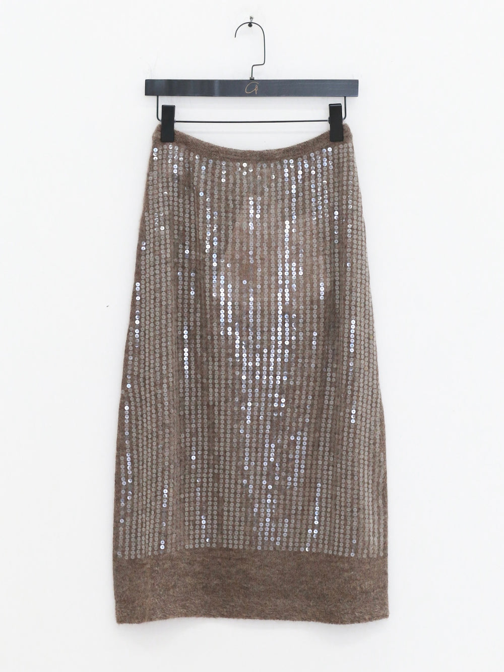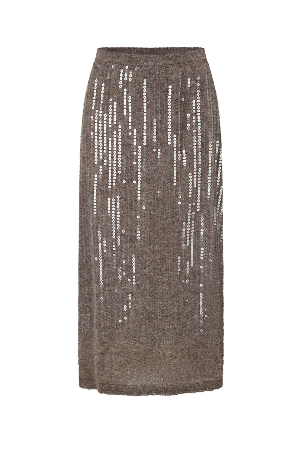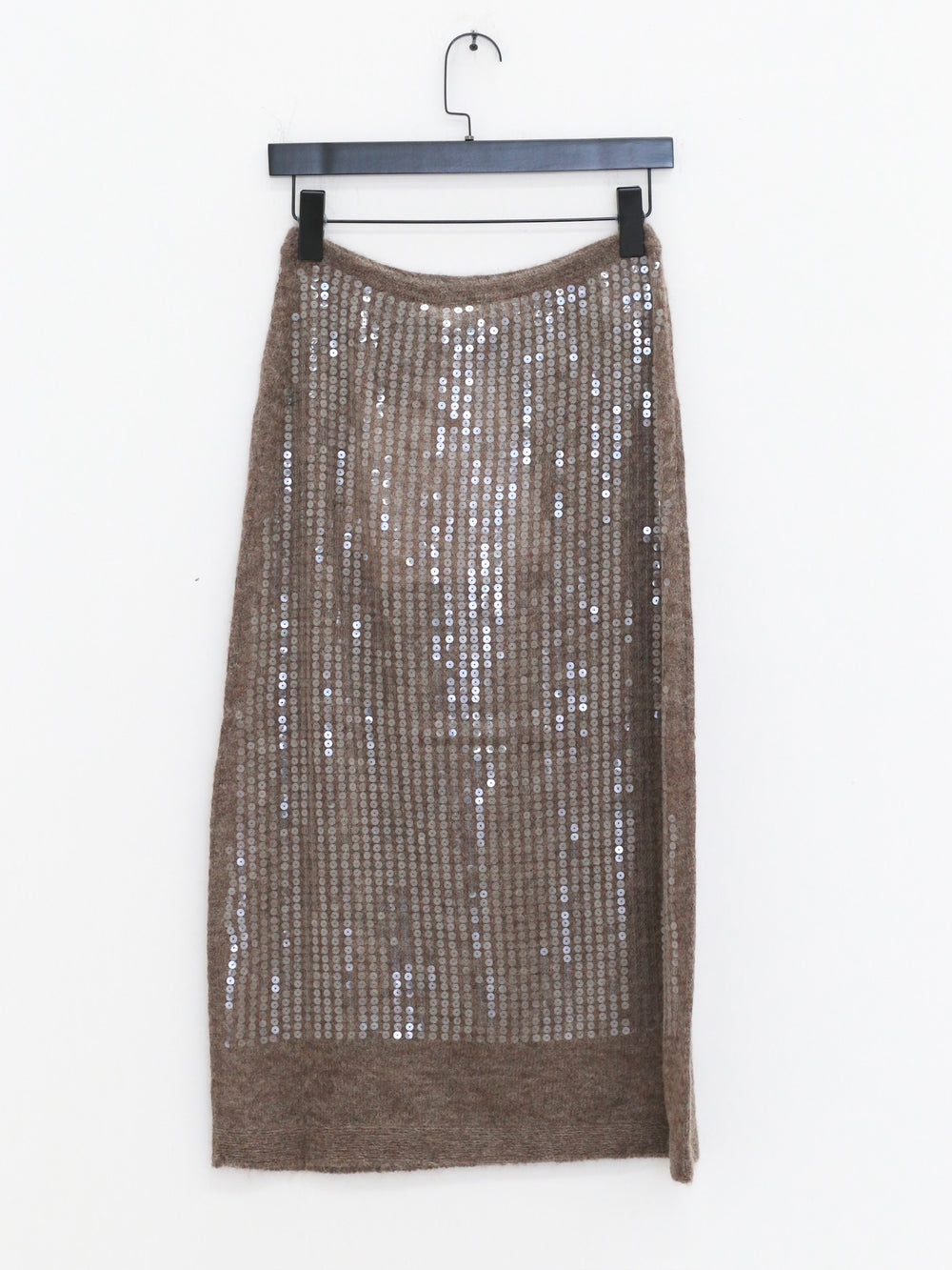 SWAYING Fall/Winter 2025: Beaded alpaca wool sweater/skirt set SW-SW-SW25AW3B04-HUIZONG (Gray-brown) Skirt (SW25AW1T07C1S4)