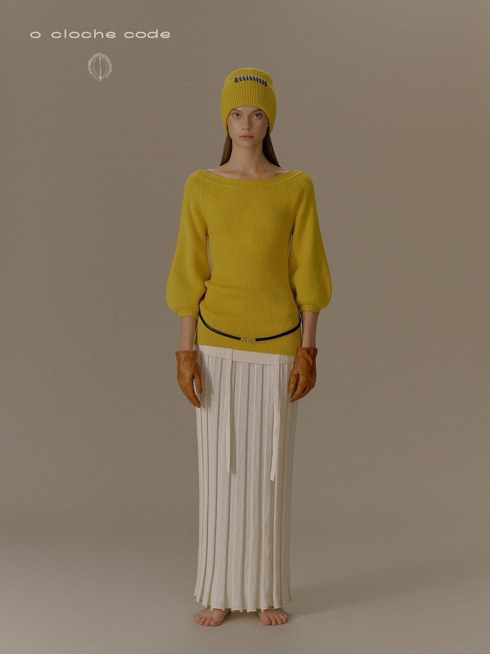 o cloche code 25 Fall/Winter Chunky Knit Merino Wool Knit Hat OCC-OH01S907-HPH CORONA Amber Yellow