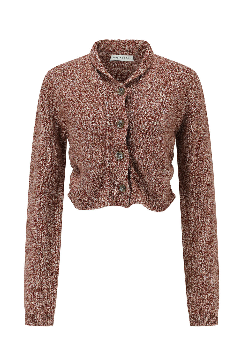 SWAYING 26 Early Spring Shawl Collar Cashmere Short Cardigan SW-SW26PS1T18C1-ZH Brownish Red