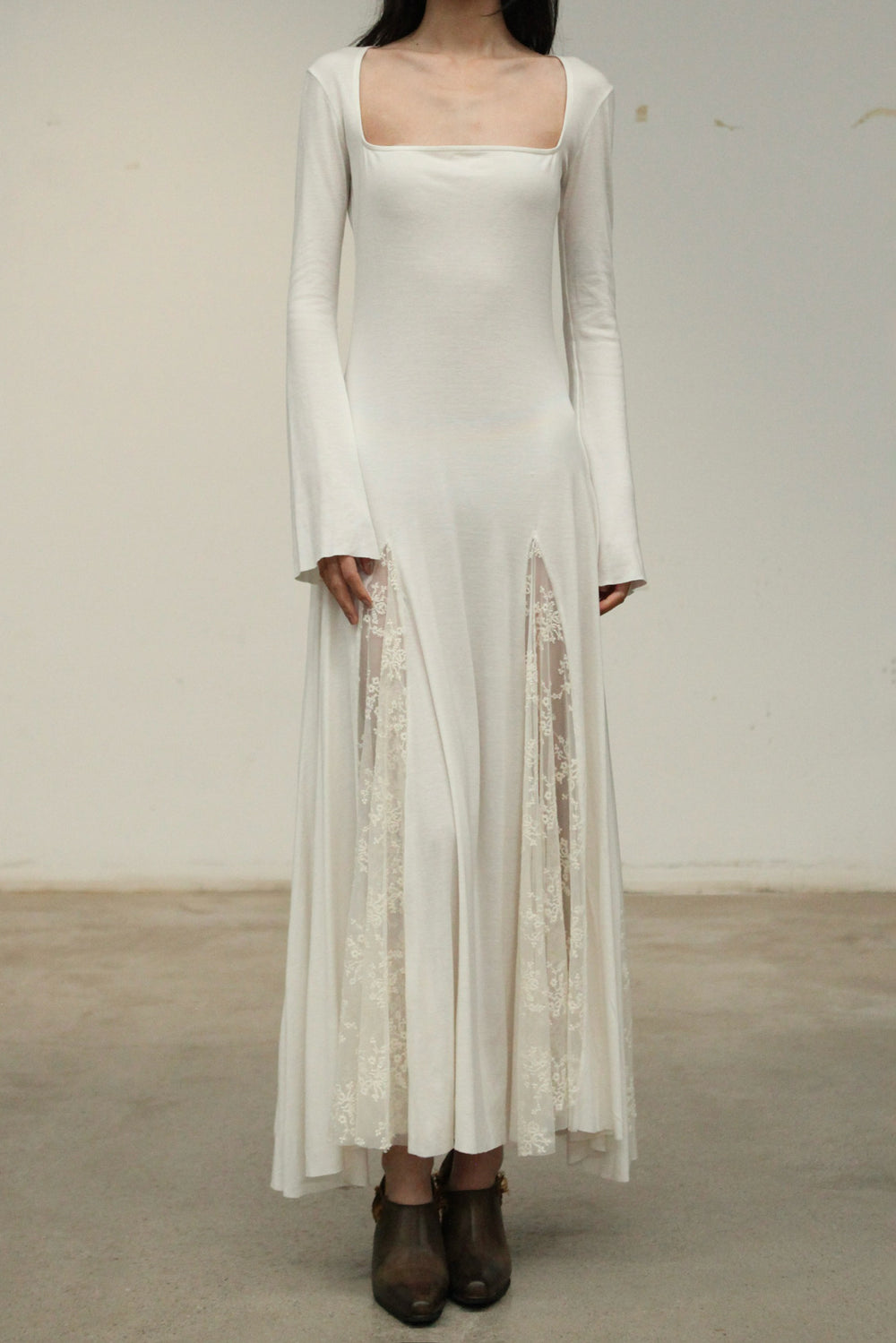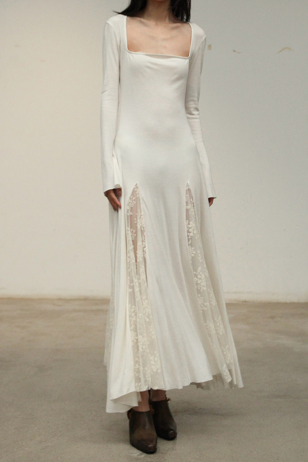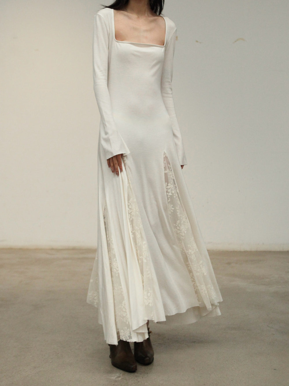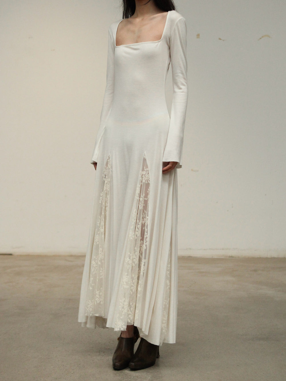Pengtai 25 Autumn/Winter Square Neck Long Sleeve Dress/Lace PT-PW25C06-3-BEIGE