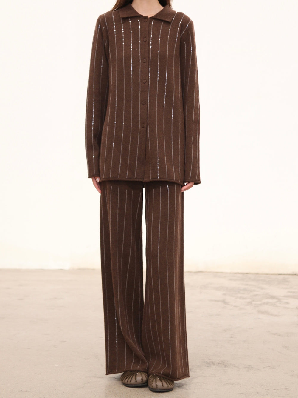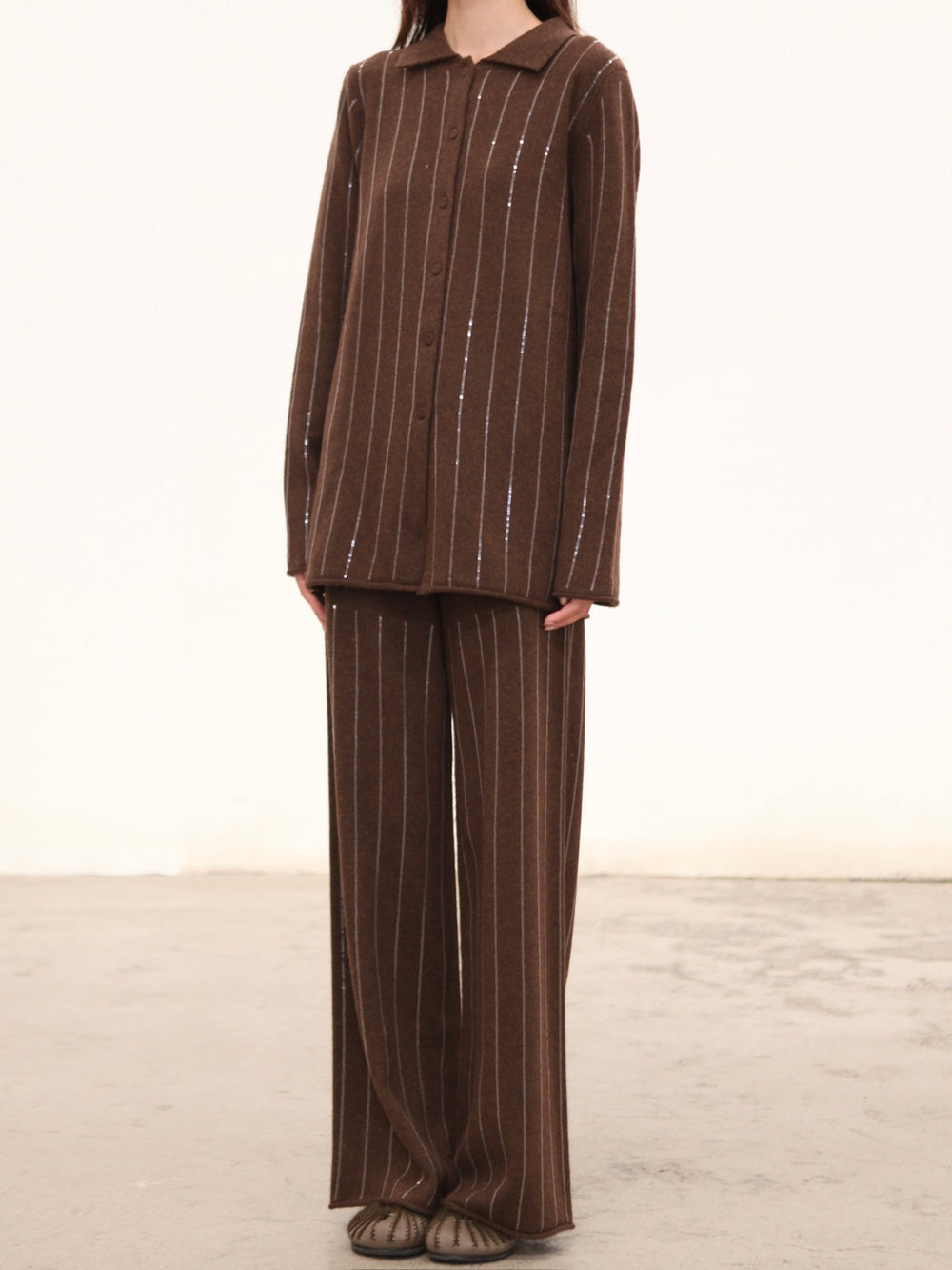 SWAYING 25 Fall/Winter Collection: Beaded Embroidery Cashmere Straight-Leg Pants SW-SW25AW3B20C3S2-KF (Coffee)