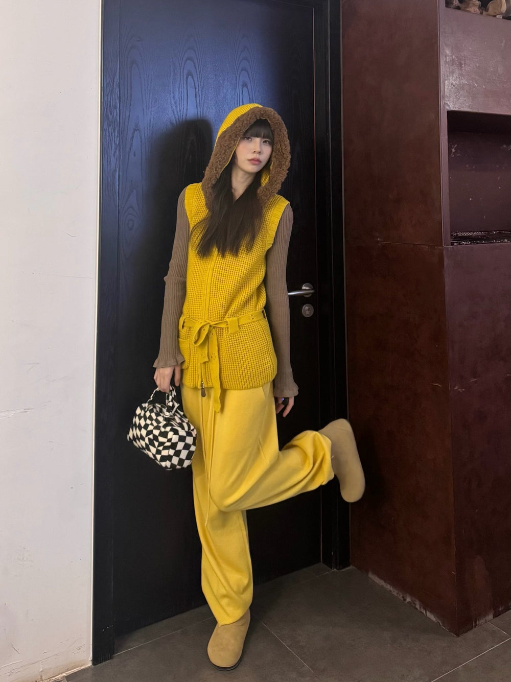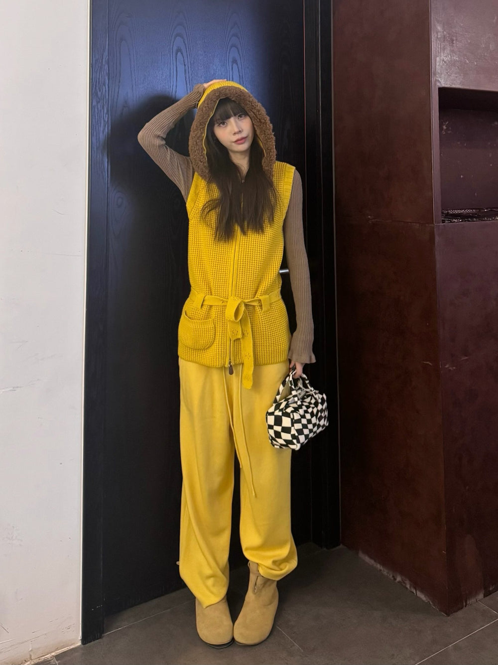 Cloche code mid-rise cropped trousers OCC-OH01P842-CUSTARD cream yellow