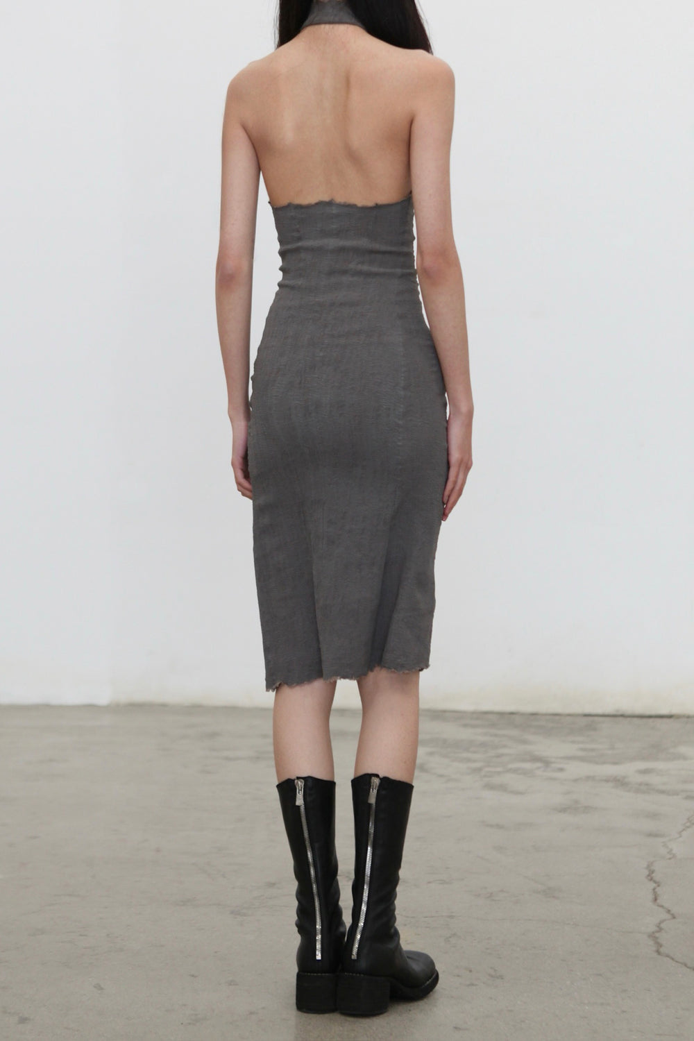 Marc Le Bihan Fall/Winter 2025 American Collar Straight Stretch Dress 21976 (France) MLB-21976-DUSTY GREY
