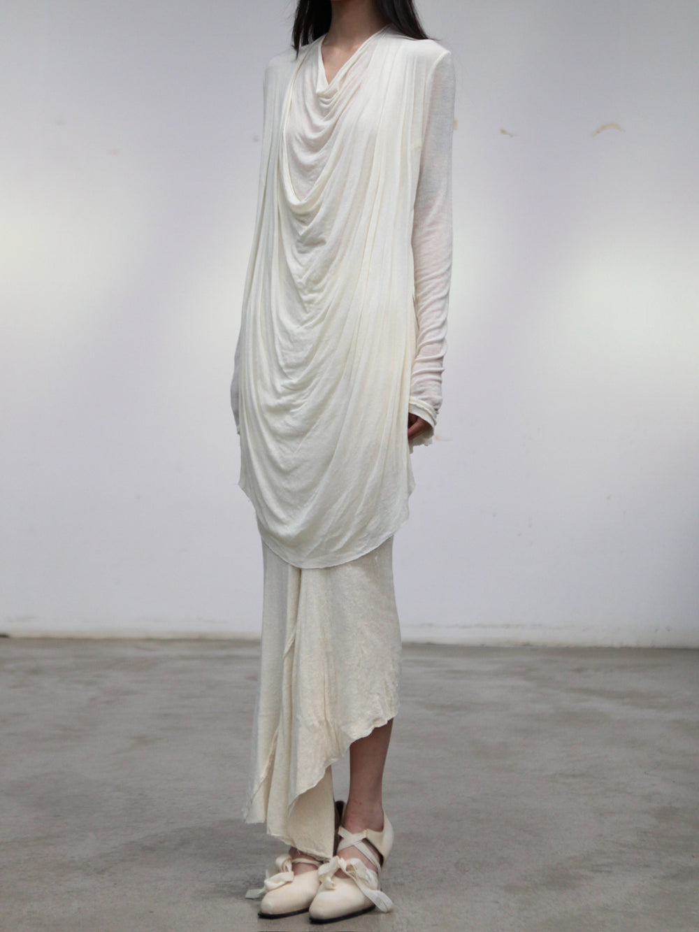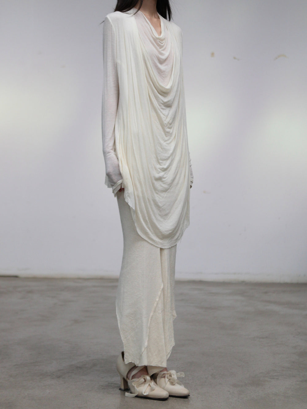 Marc Le Bihan Fall/Winter 2025 Long-Sleeved Top with Front Pleats 2825 (France) MLB-2825-ECRU
