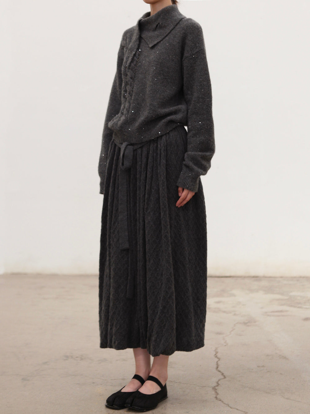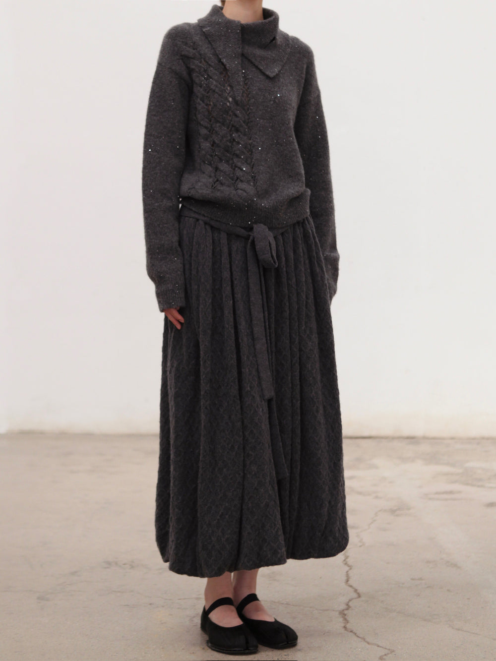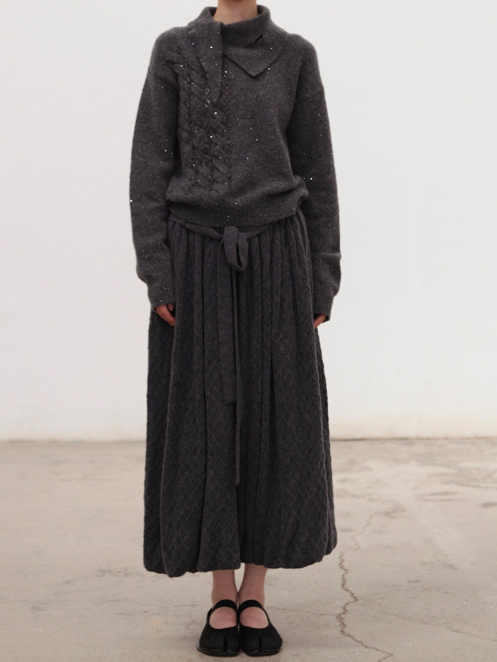 NAN KNITS 25 Autumn and Winter Woven Cable Sequin Pullover/Skirt NAN-N25AWJUM08GRA-SHENHUI Dark Gray Top