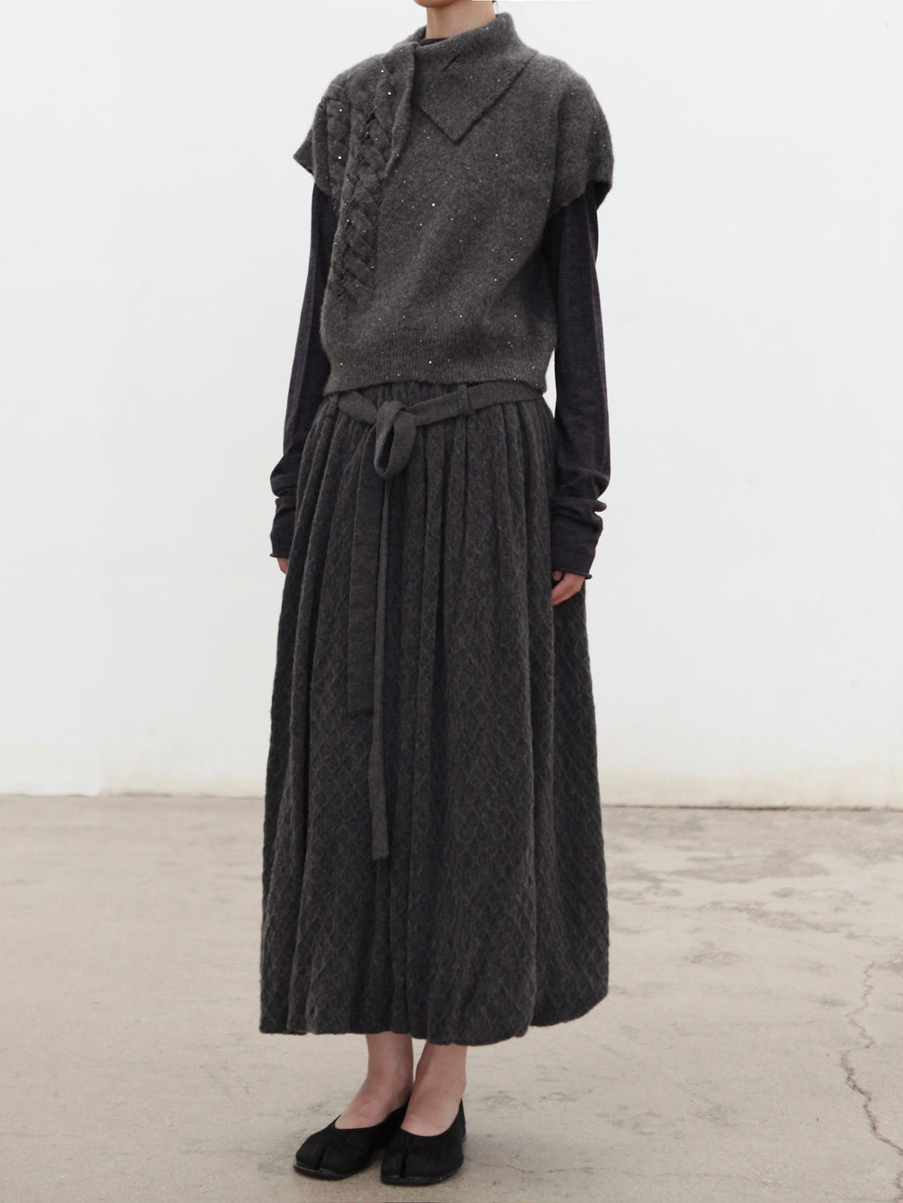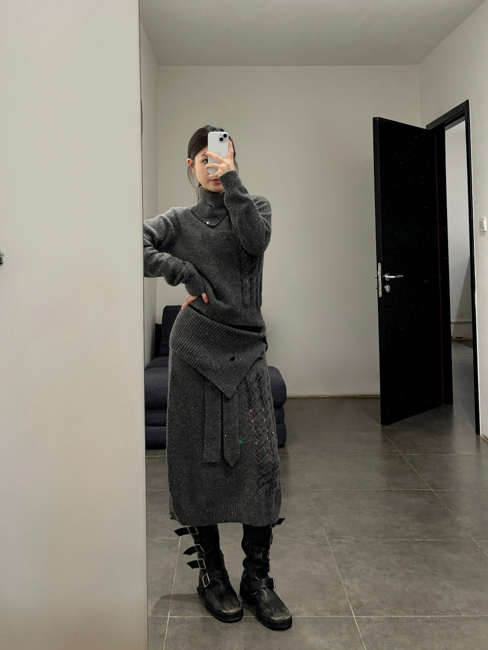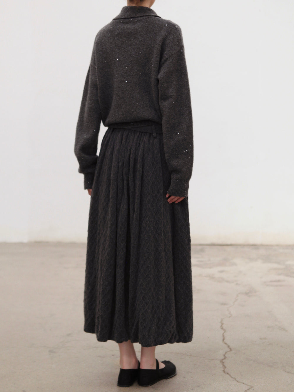 NAN KNITS 25 Autumn and Winter Woven Cable Sequin Pullover/Skirt NAN-N25AWJUM08GRA-SHENHUI Dark Gray Top