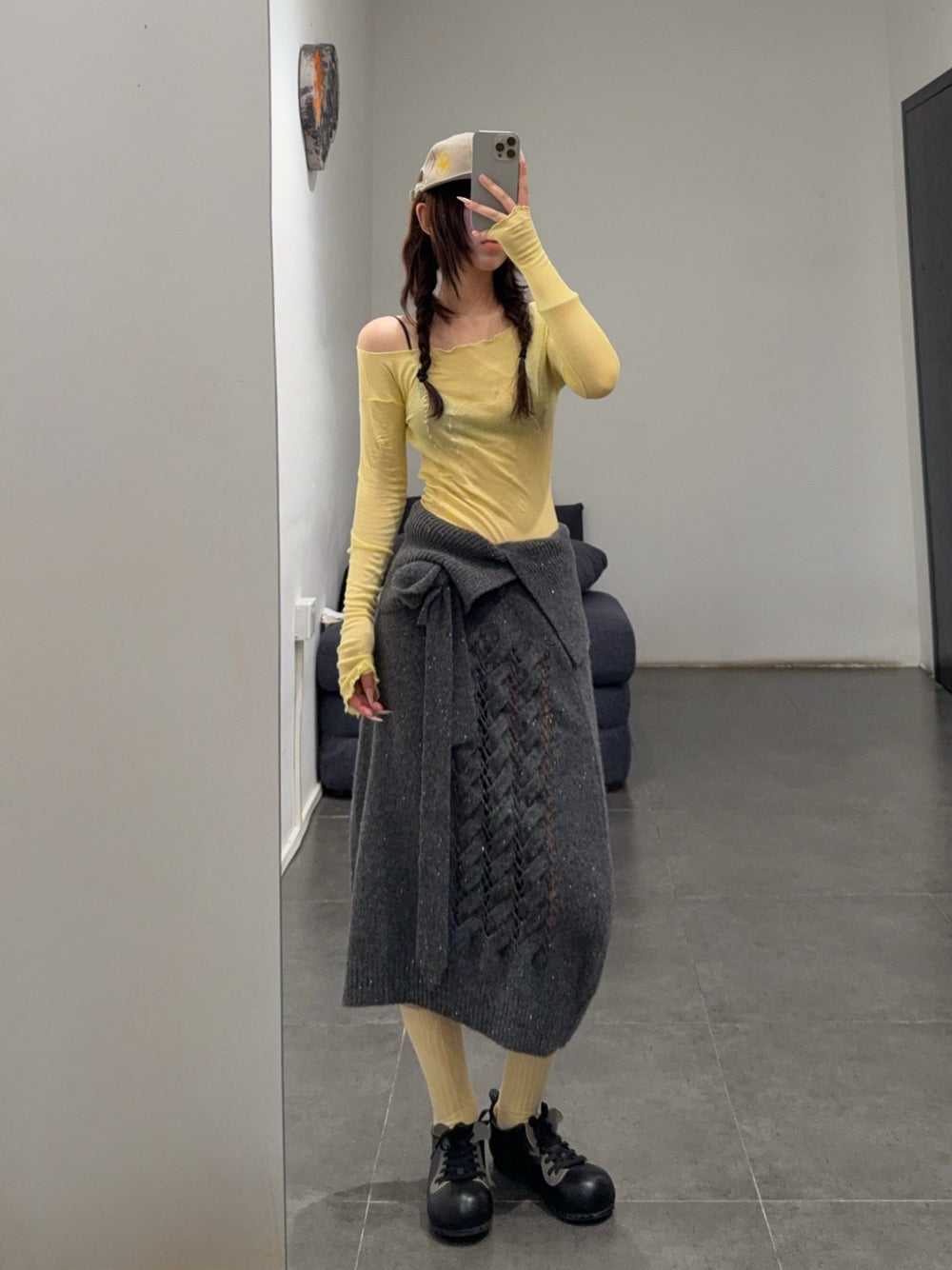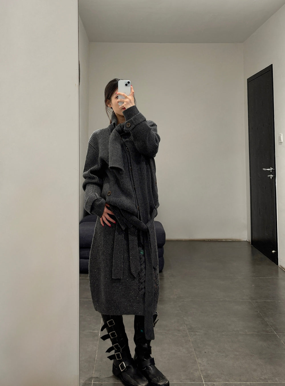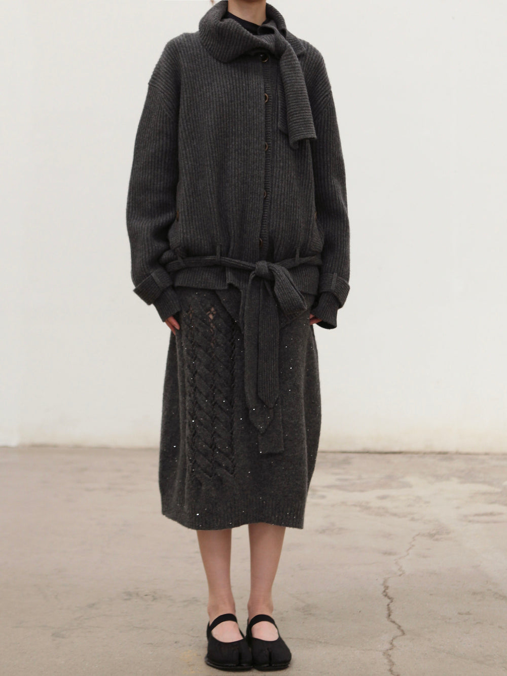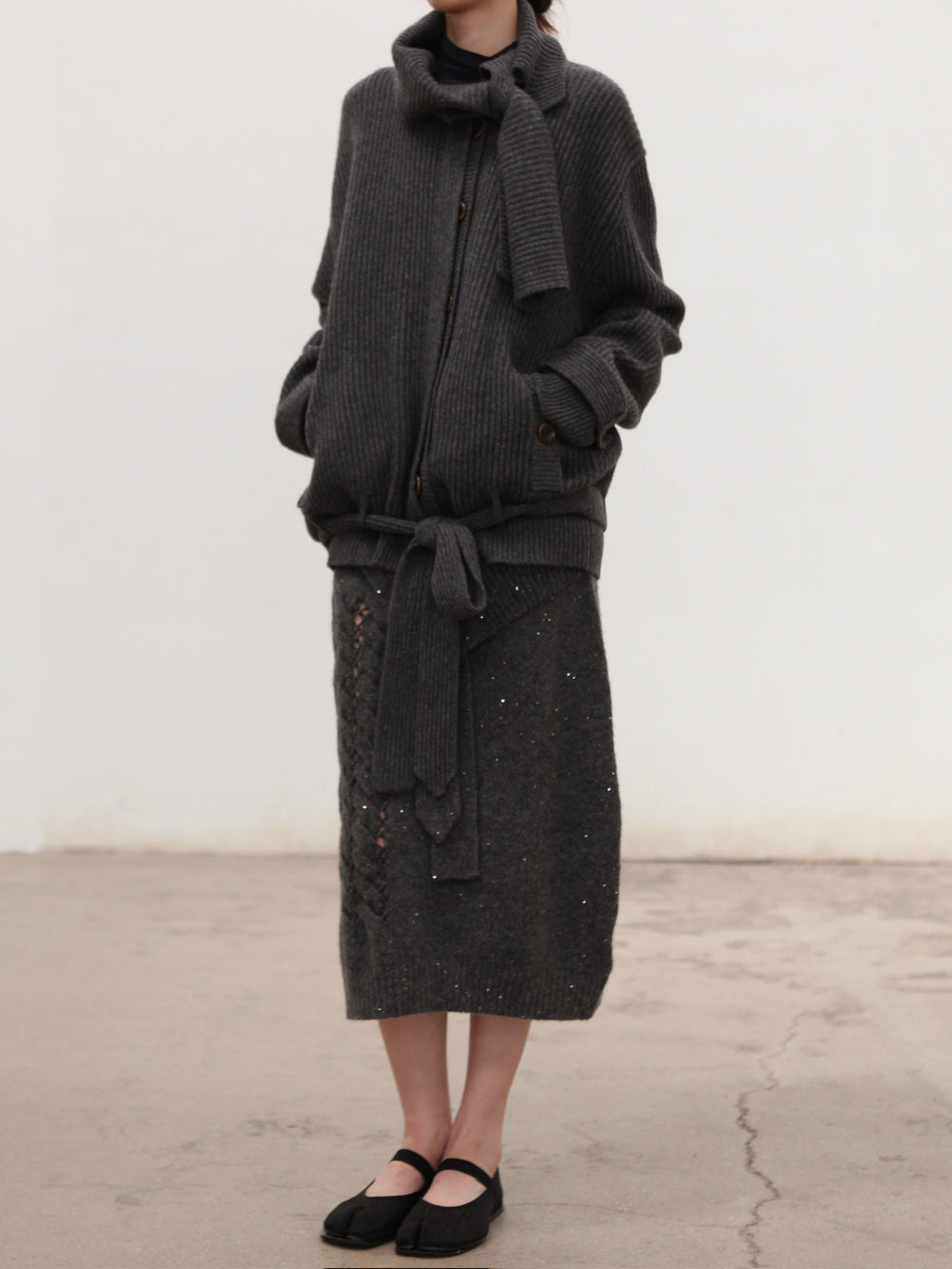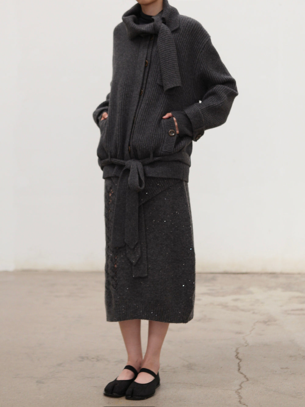 NAN KNITS 25 Autumn/Winter Woven Cable Sequin Pullover/Skirt NAN-N25AWSK02GRA-SHENHUI Dark Gray Skirt (N25AWJUM08GRA)
