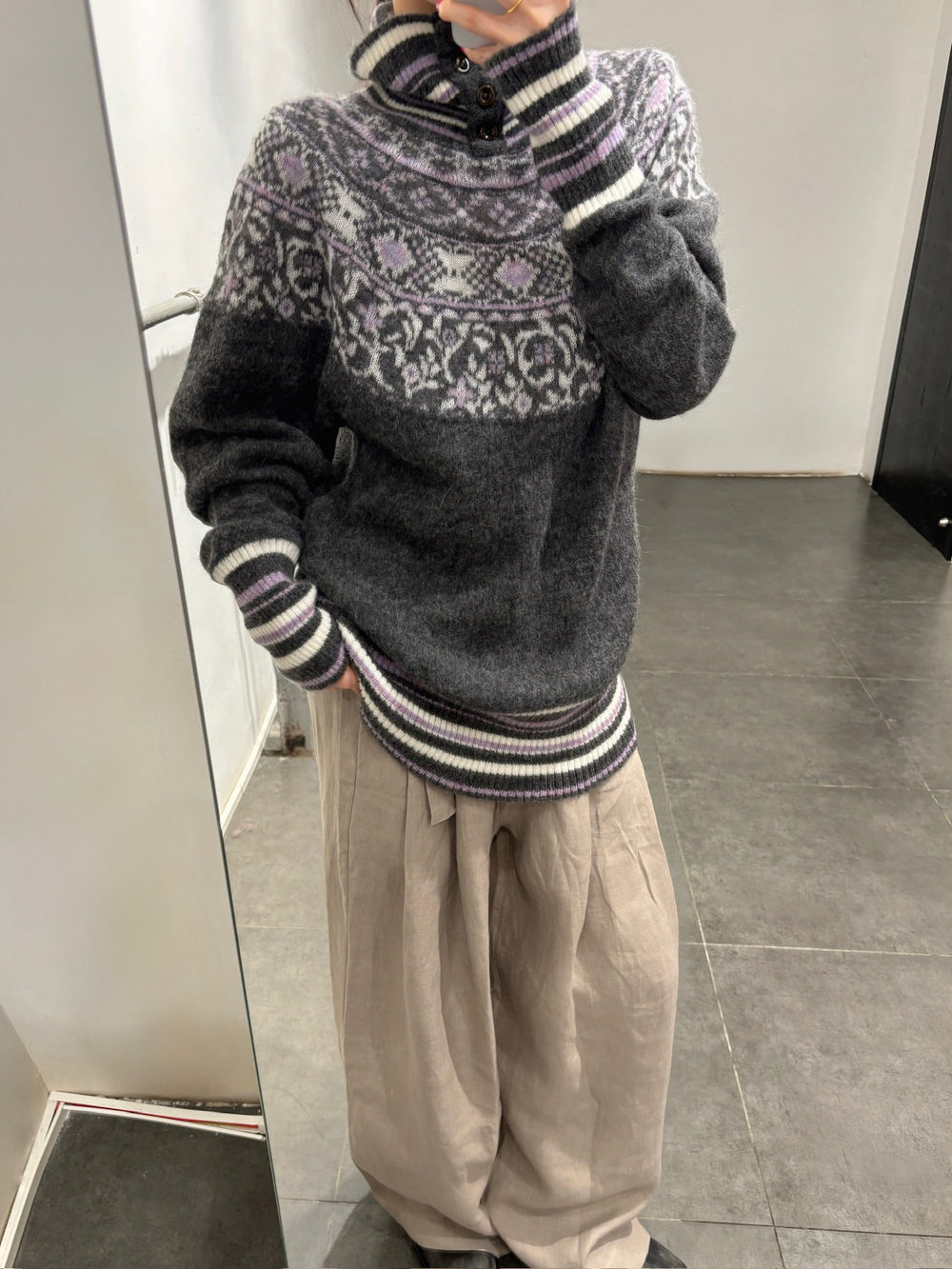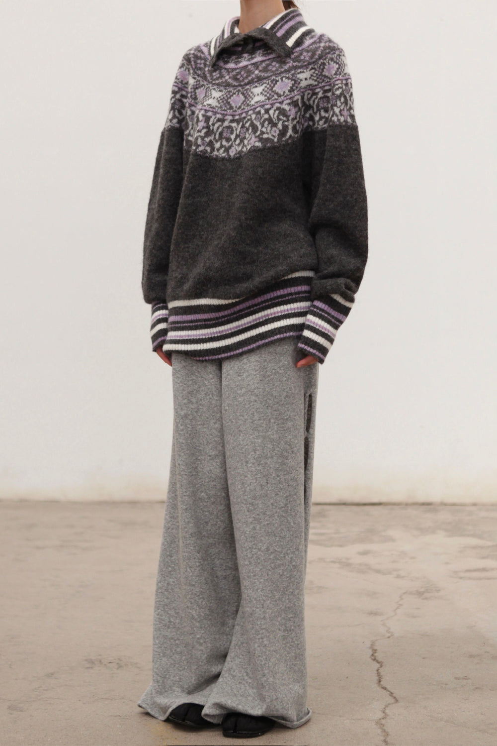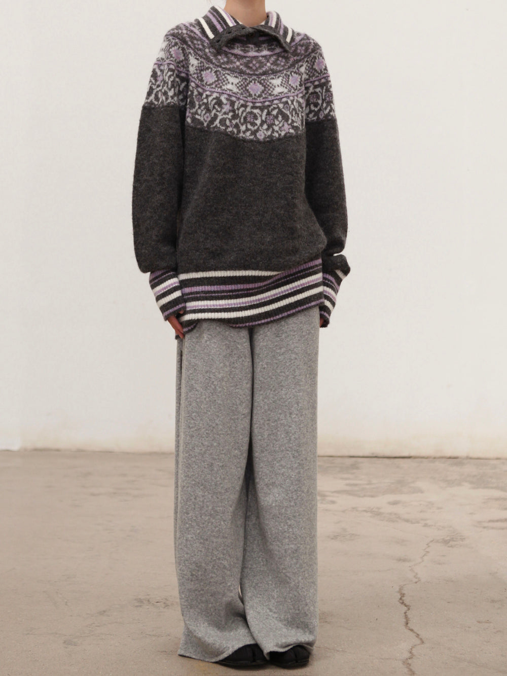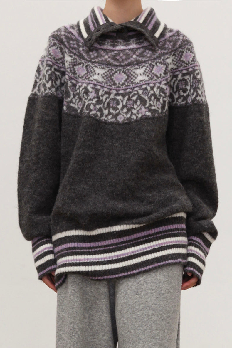 NAN KNITS Fair Isle striped sweatshirt NAN-N25AWJUM09GRA-PINSE colorblock
