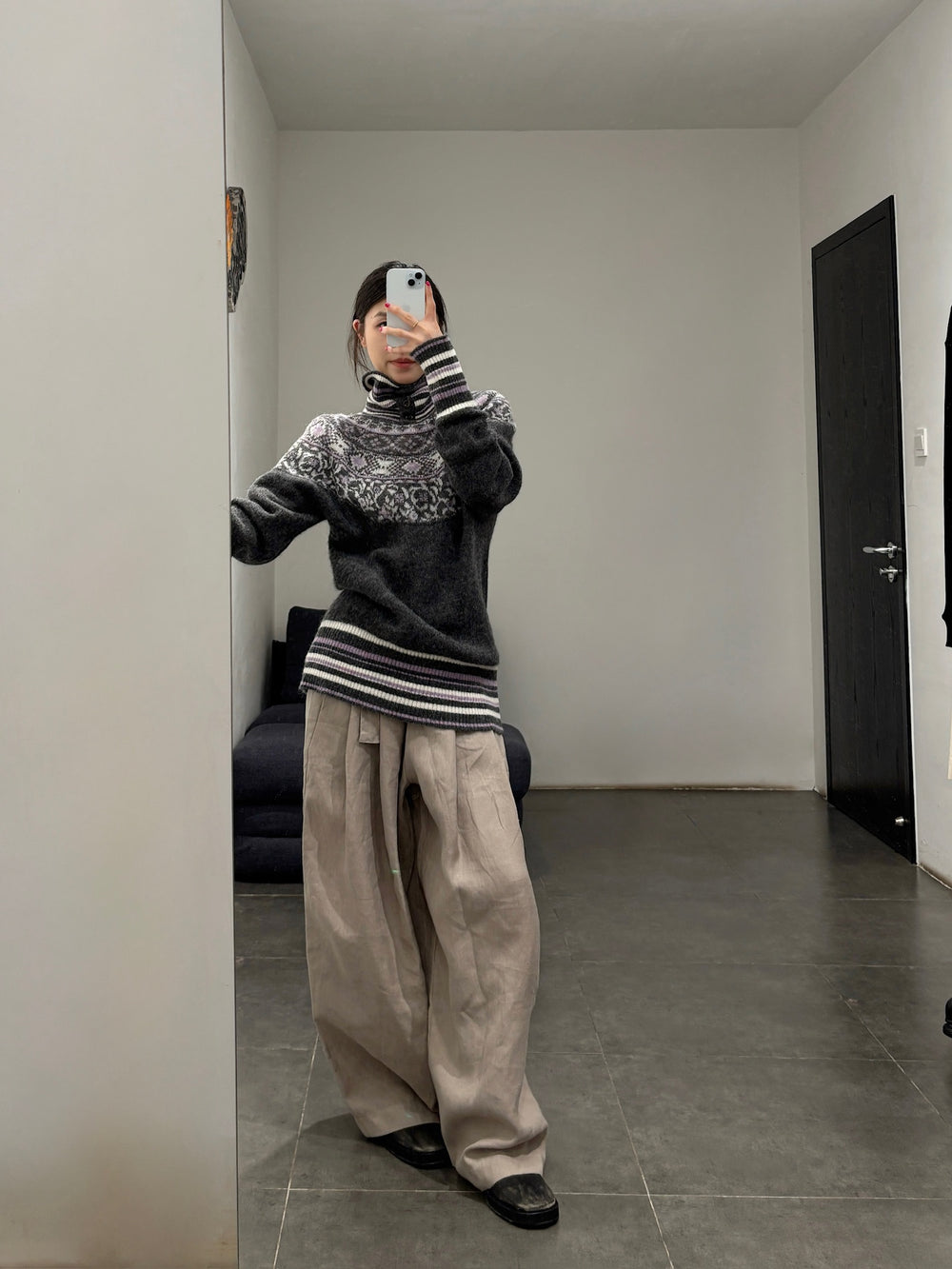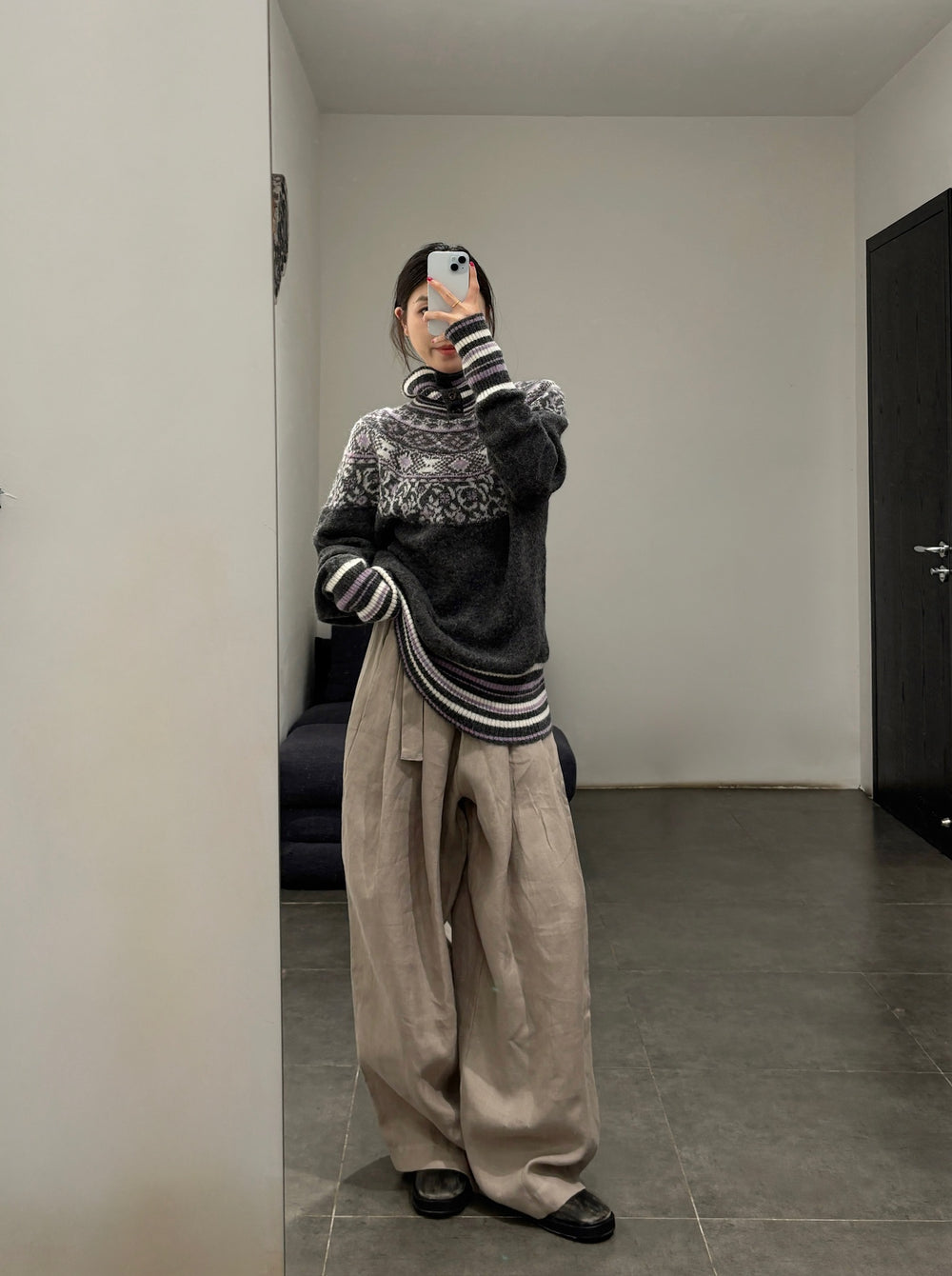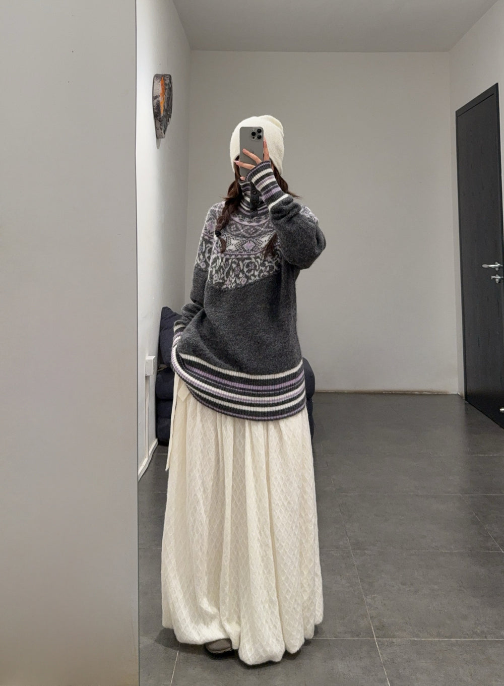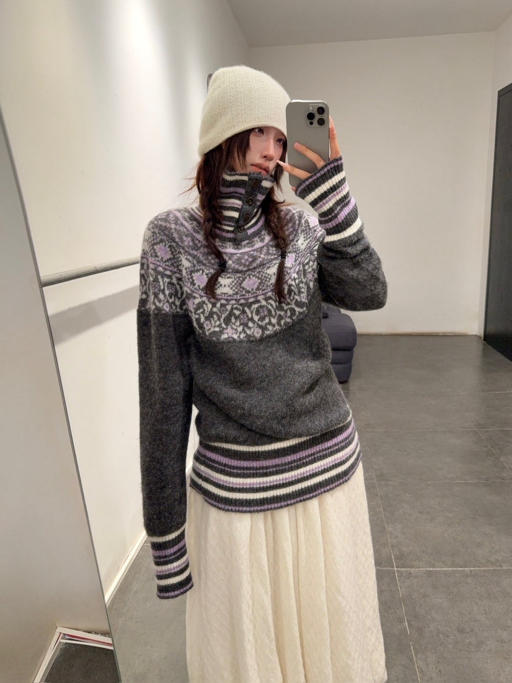 NAN KNITS Fair Isle striped sweatshirt NAN-N25AWJUM09GRA-PINSE colorblock