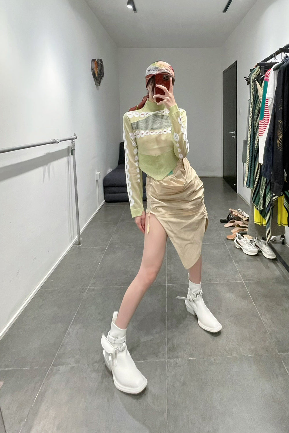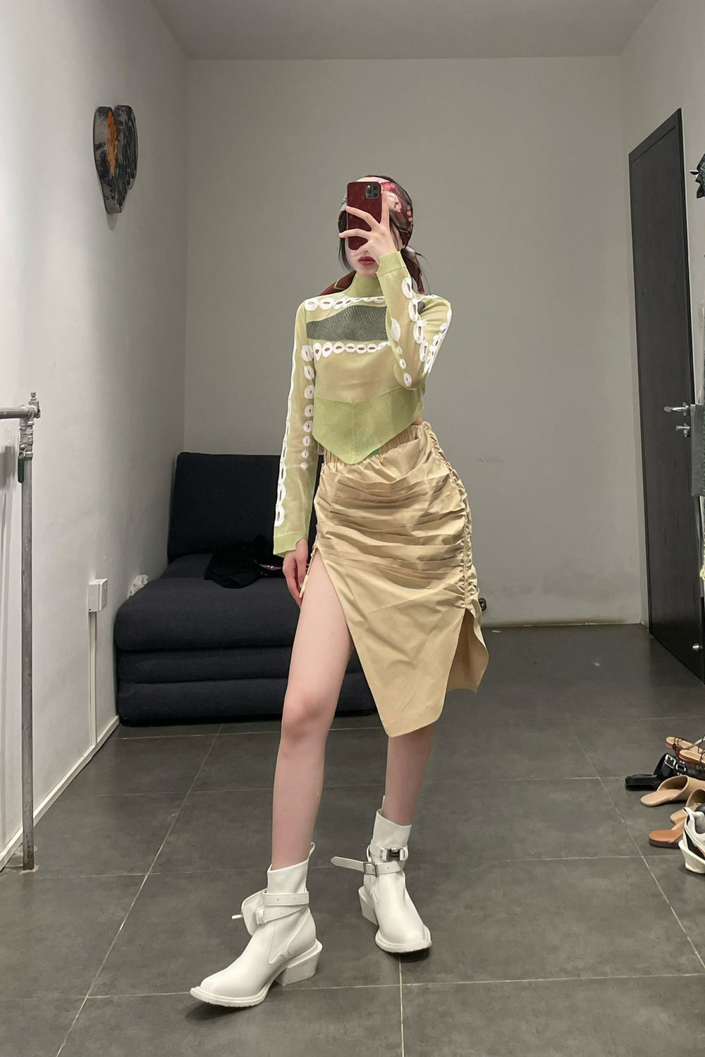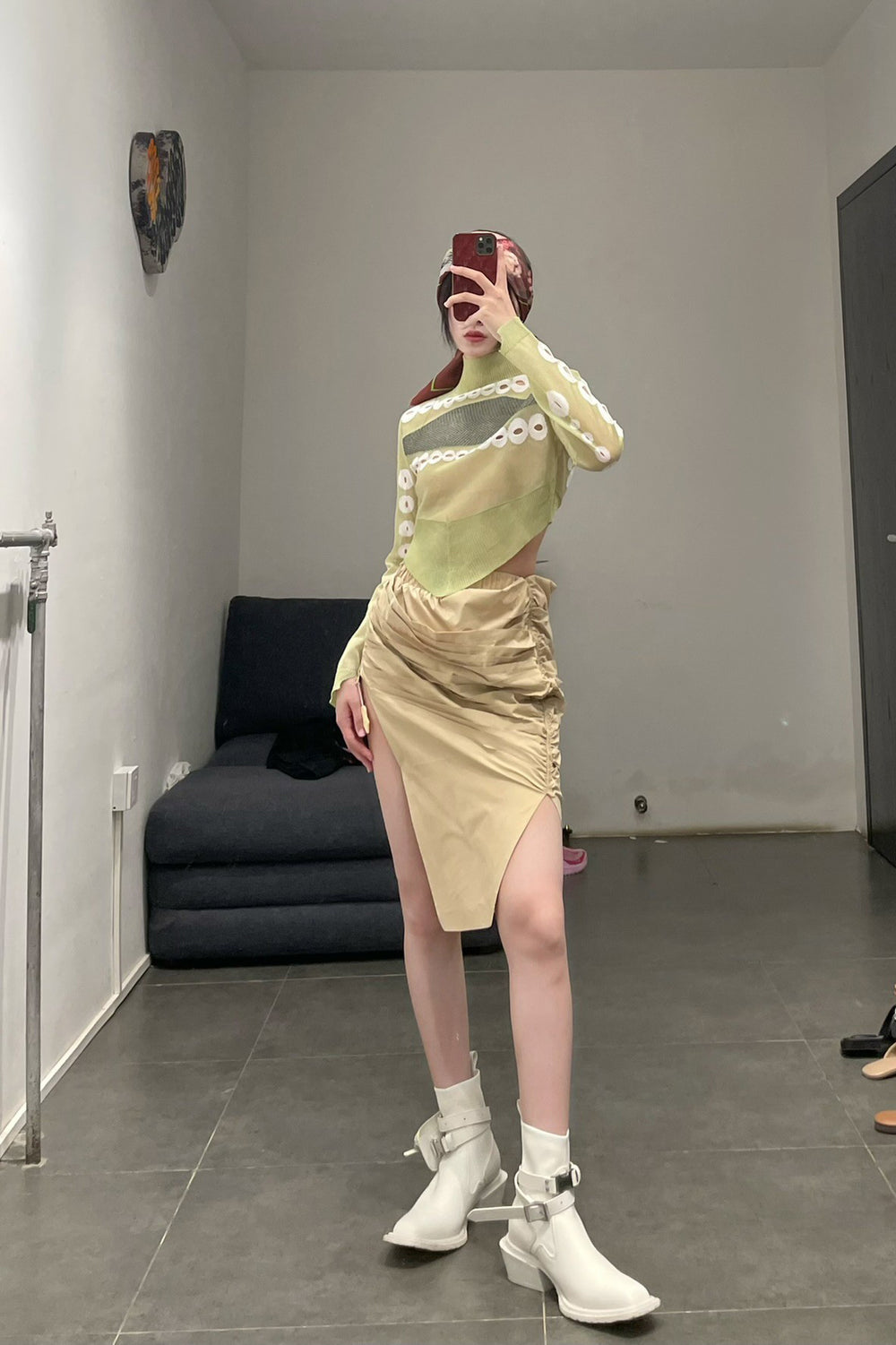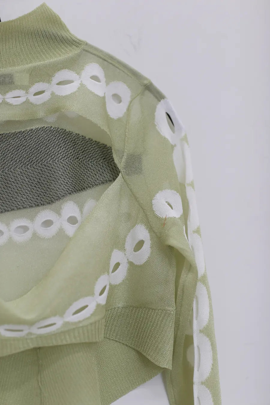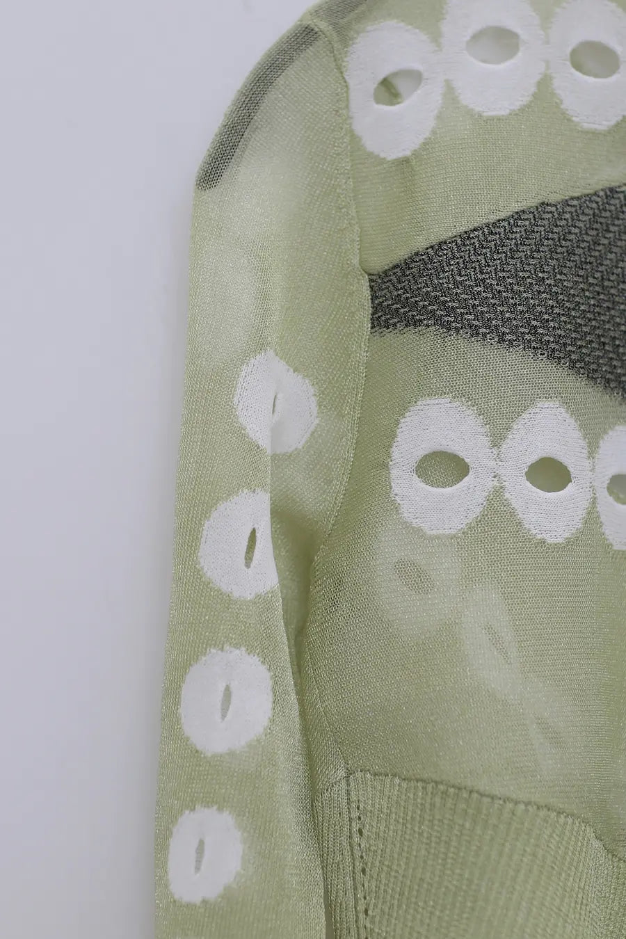 NAN KNITS Organza Hole Mecha Sweater 21021876 Yellow PNK1