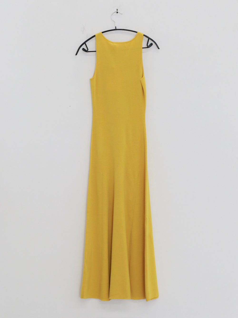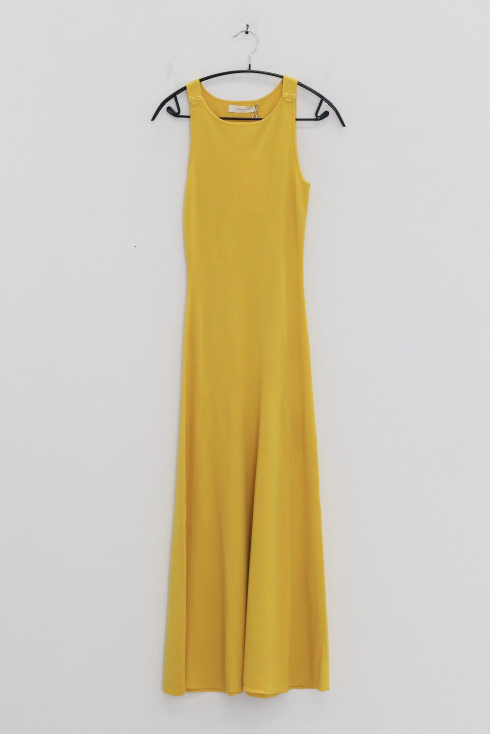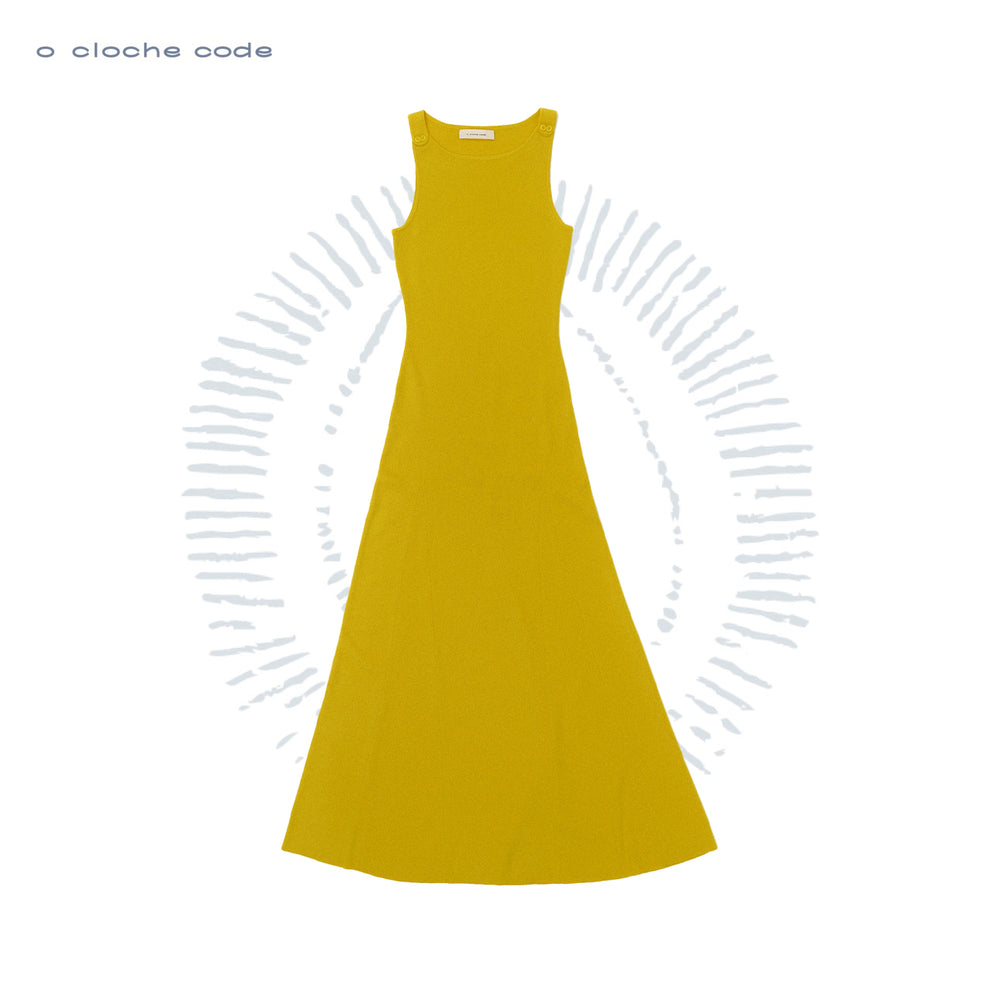 o cloche code 25 Fall/Winter, Button-down Long Dress in Merino Wool Knit OCC-OH01Q856-HPH, Corona Amber Yellow