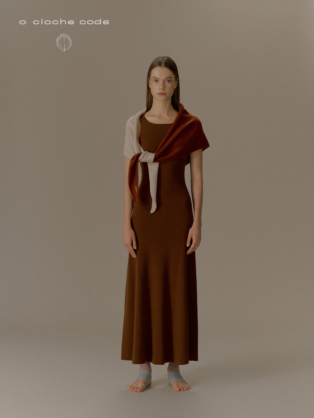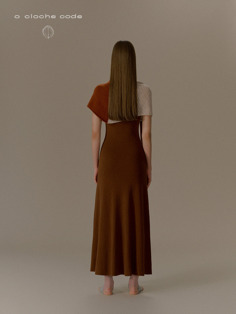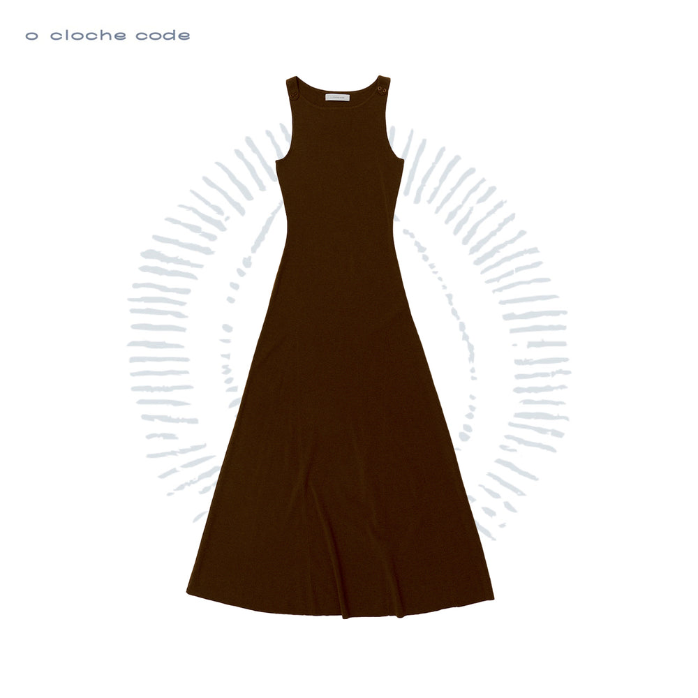 o cloche code 25 Fall/Winter, Button-down Long Dress in Merino Wool Knit OCC-OH01Q856-SXM, Dark Oak