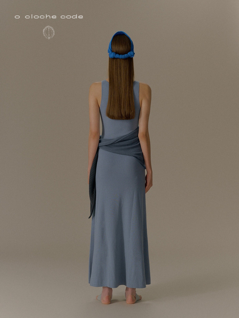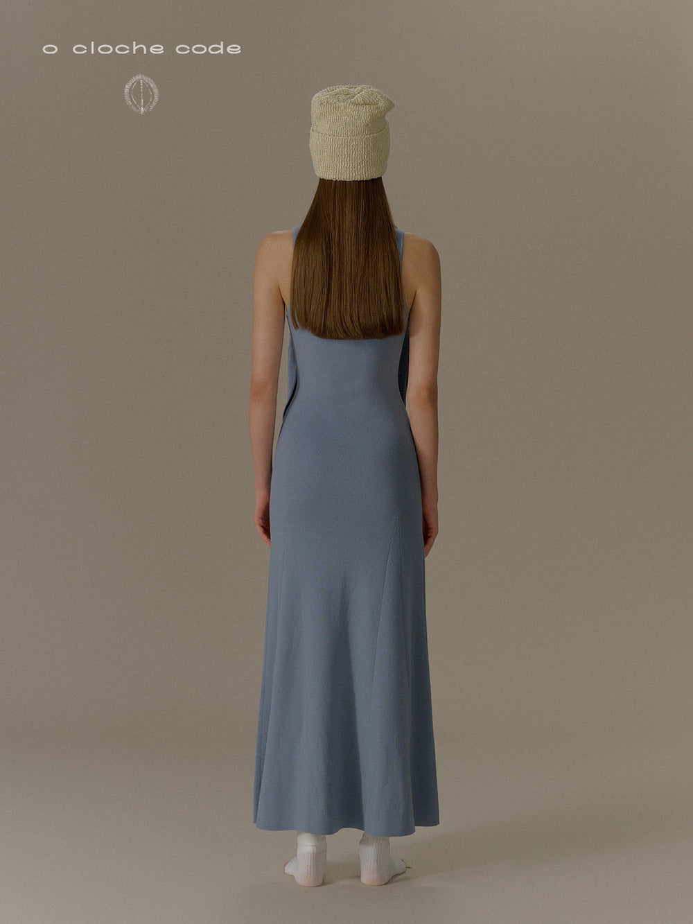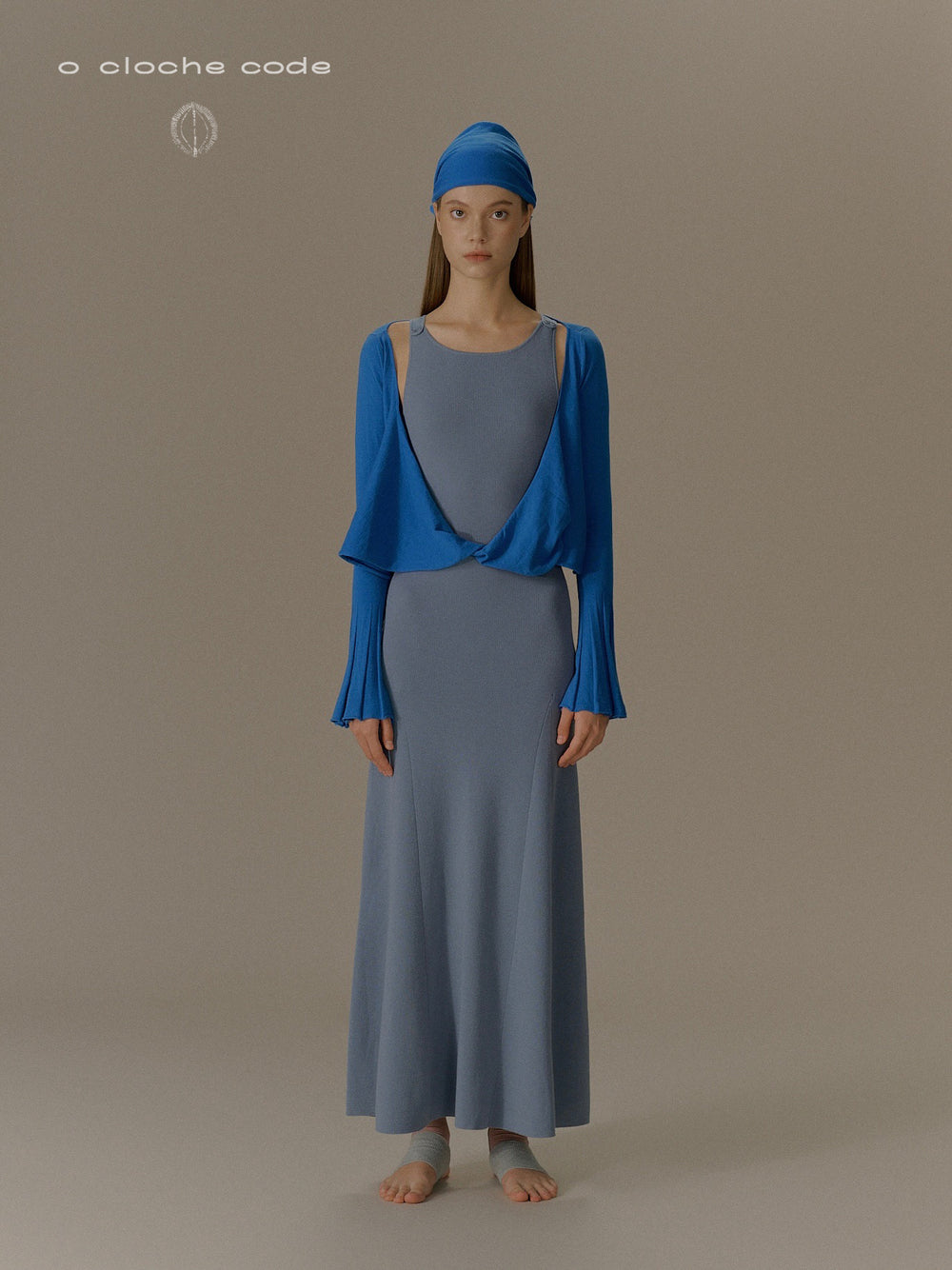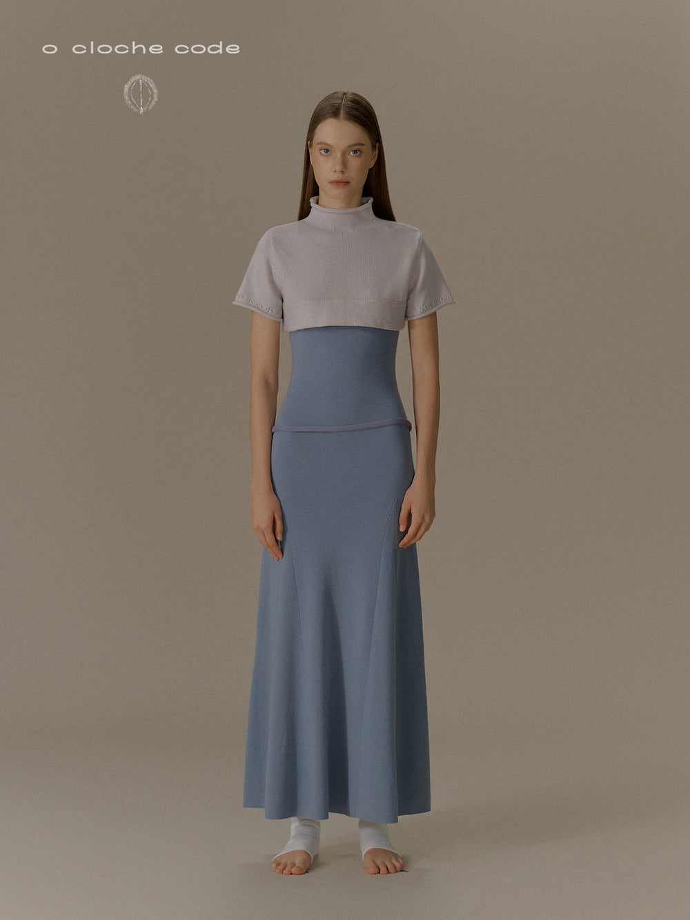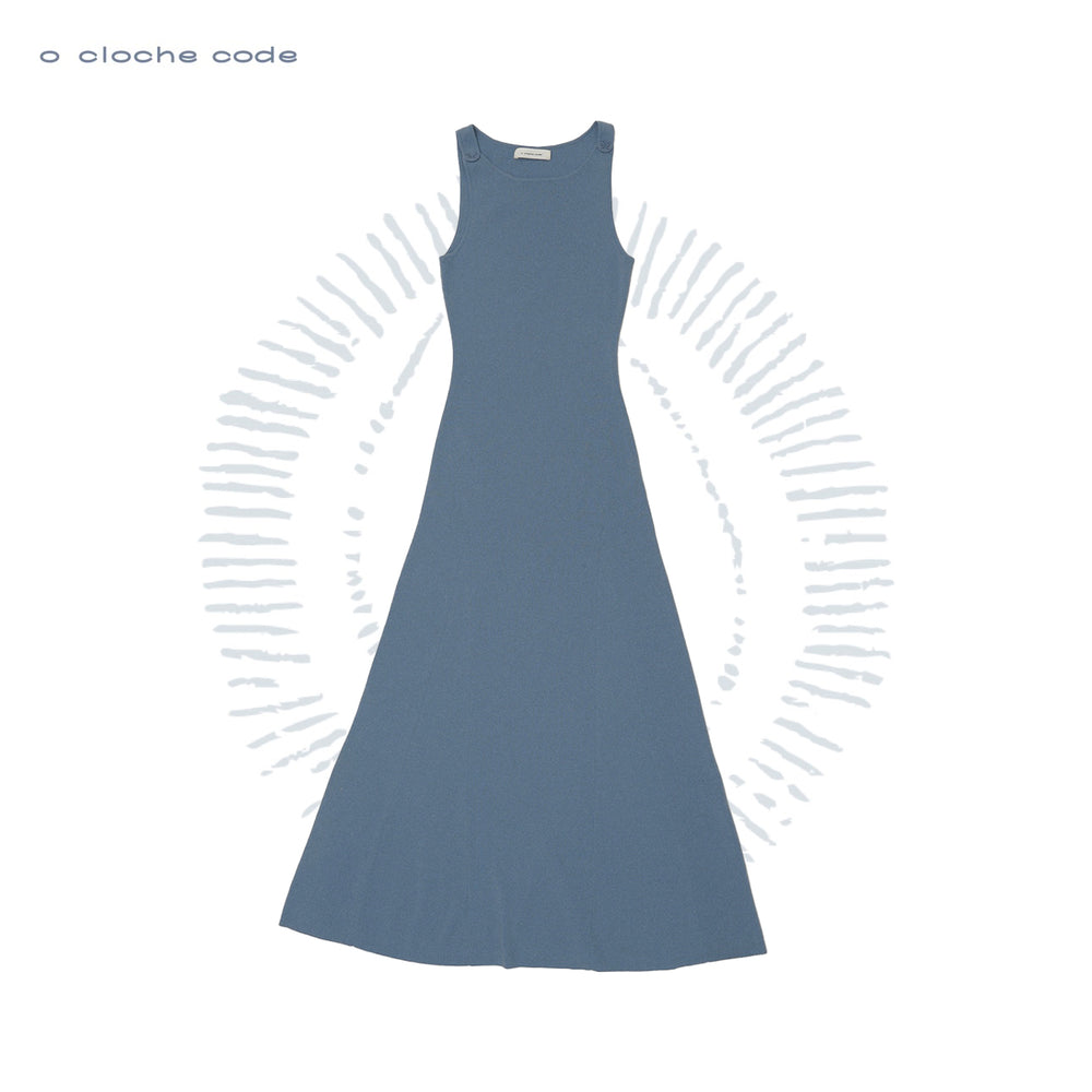 o cloche code 25 Fall/Winter, button-down maxi dress in merino wool knit OCC-OH01Q856-HL, pastel grey-blue