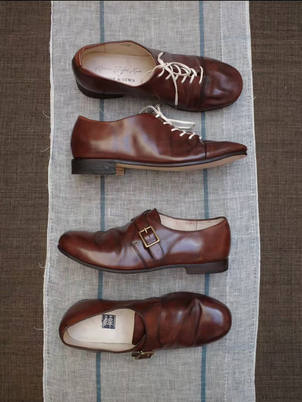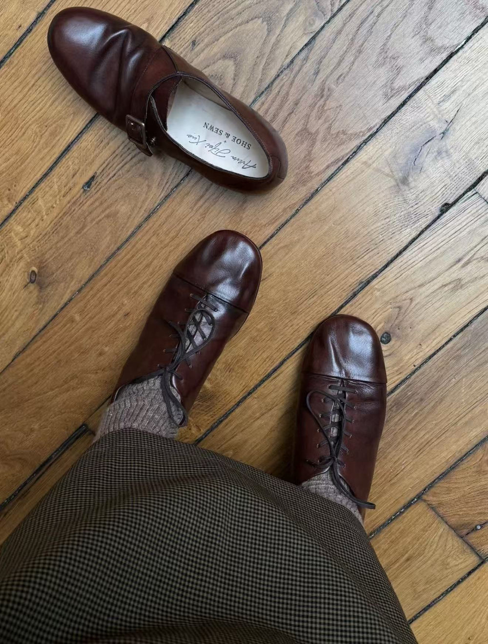 Aviva Jifei Xue x Shoe&Sewn Buffalo Leather Lace-up Shoes AJX-NICE-Antique Brown